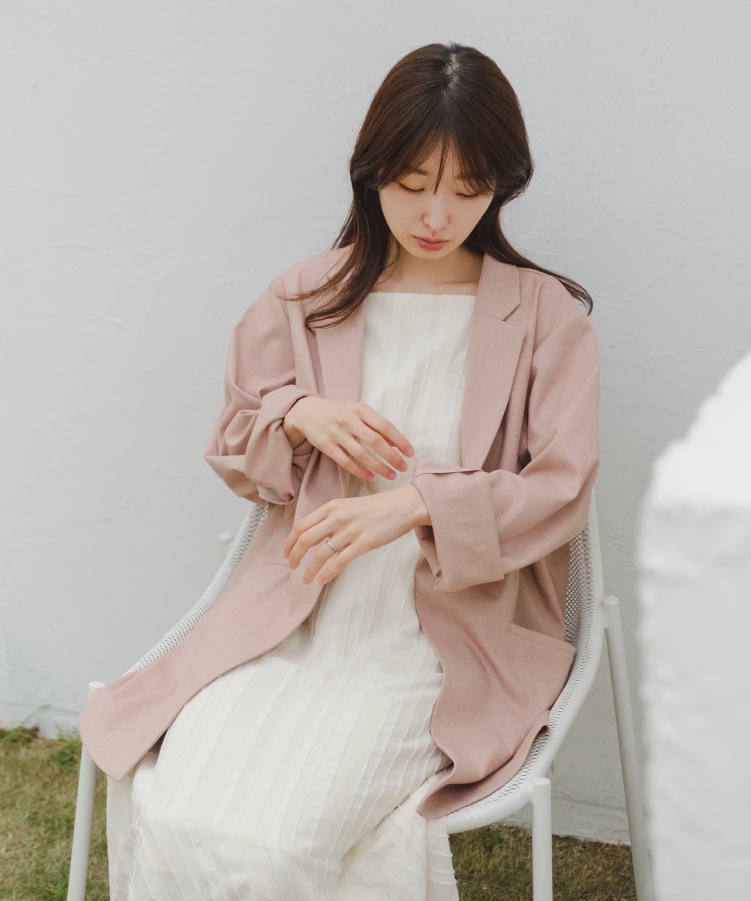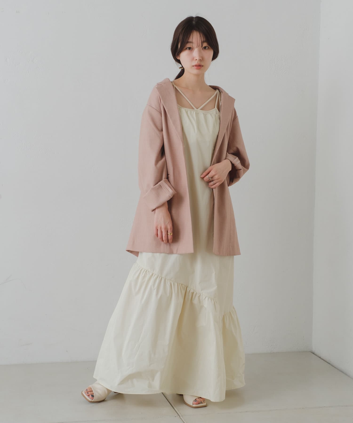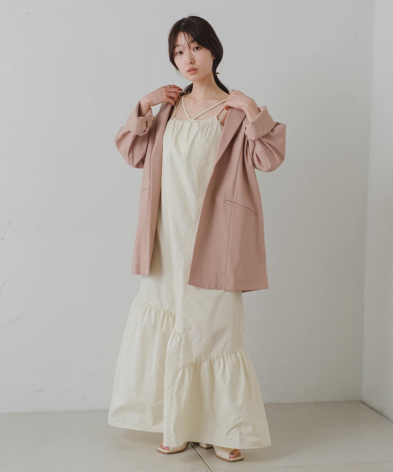 ワンピースと合わせてキレイめにも着用できる万能アイテム。
