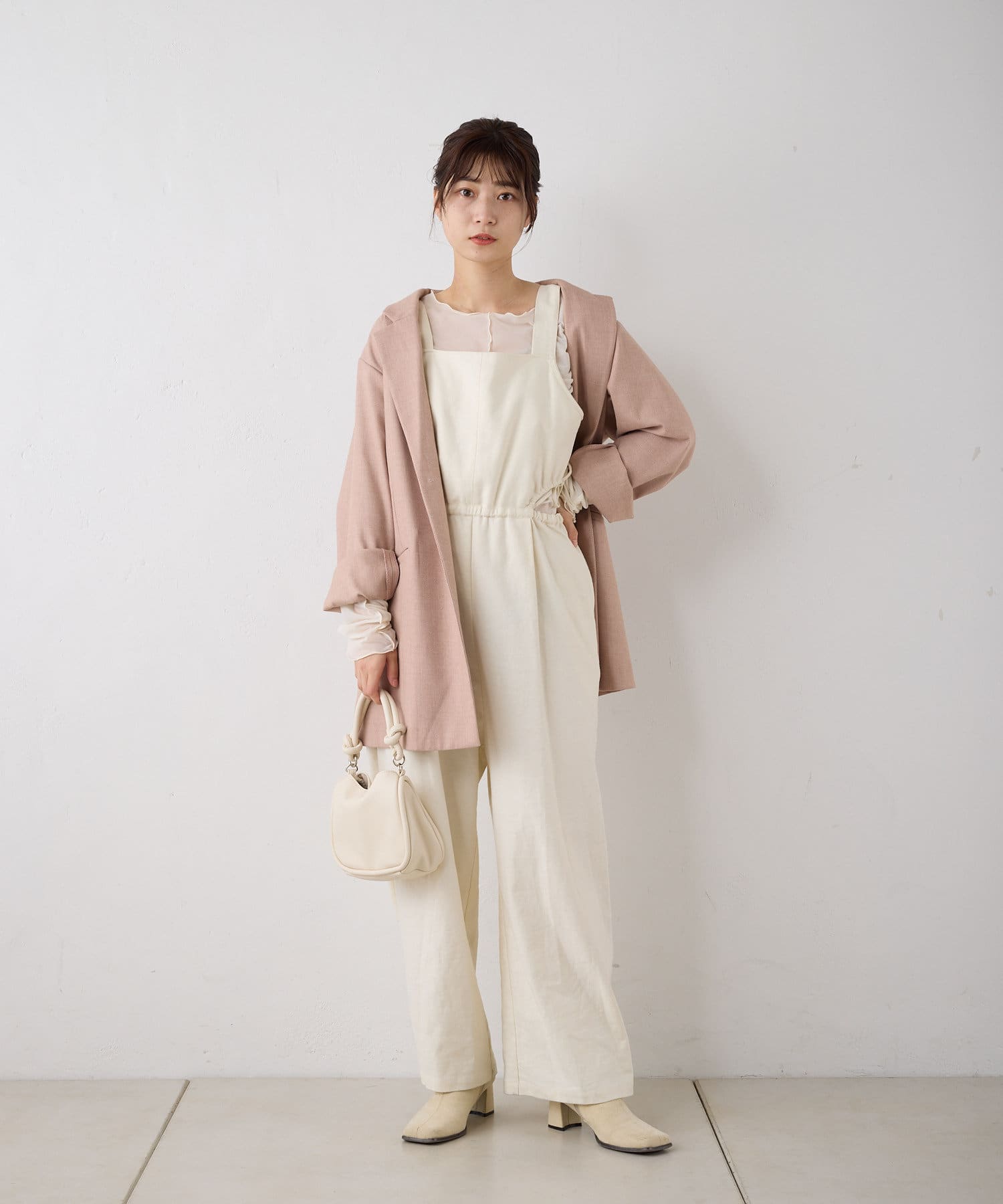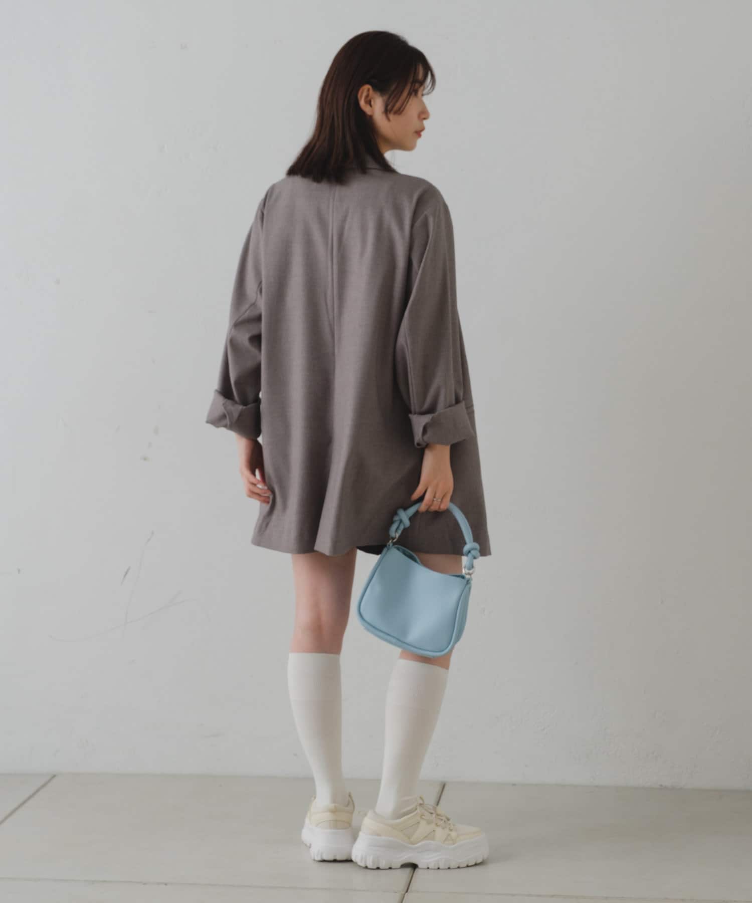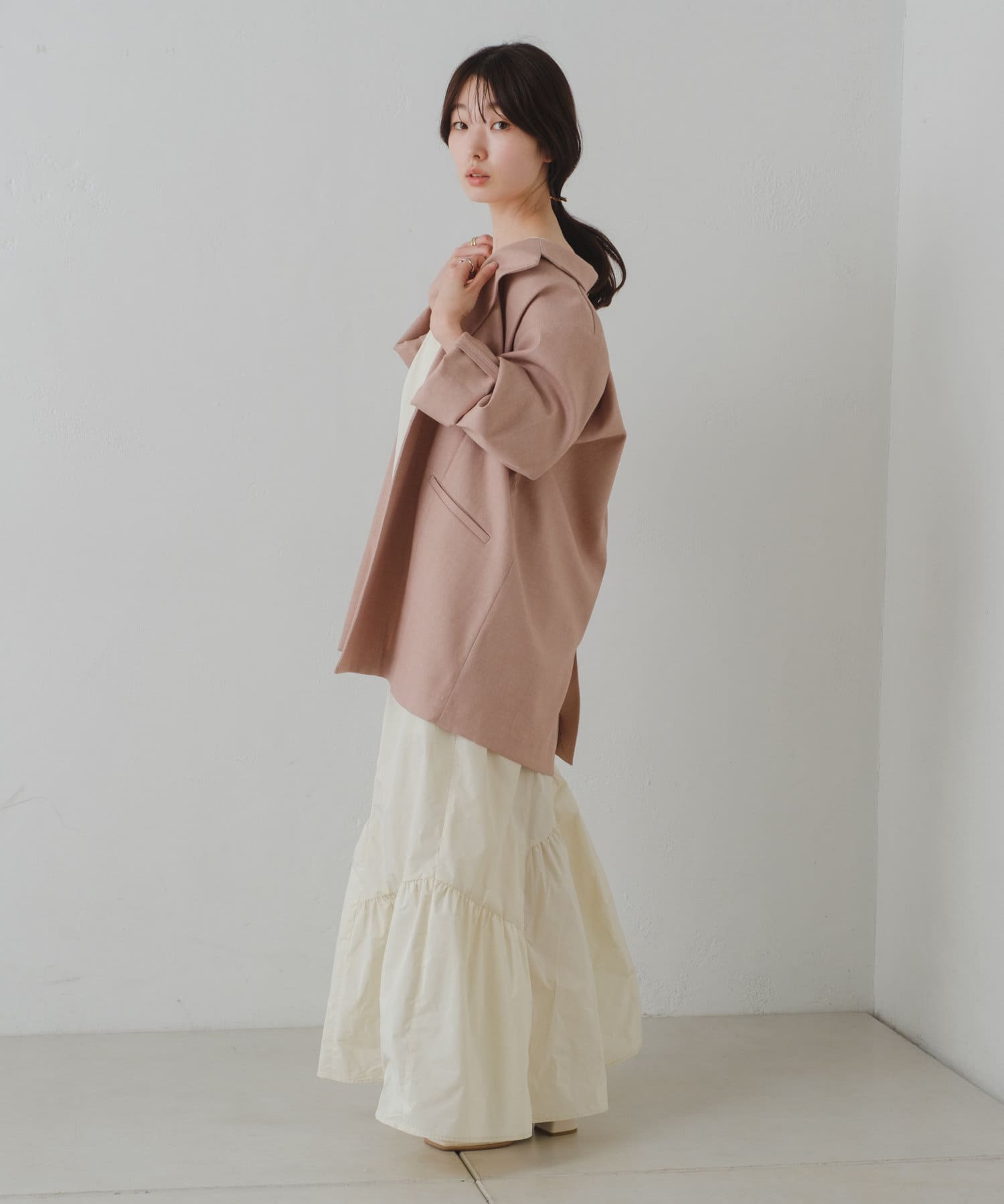大きめのサイズ感ですが、柔らかい生地なので着られてる感が出ず、華奢に見せてくれます。