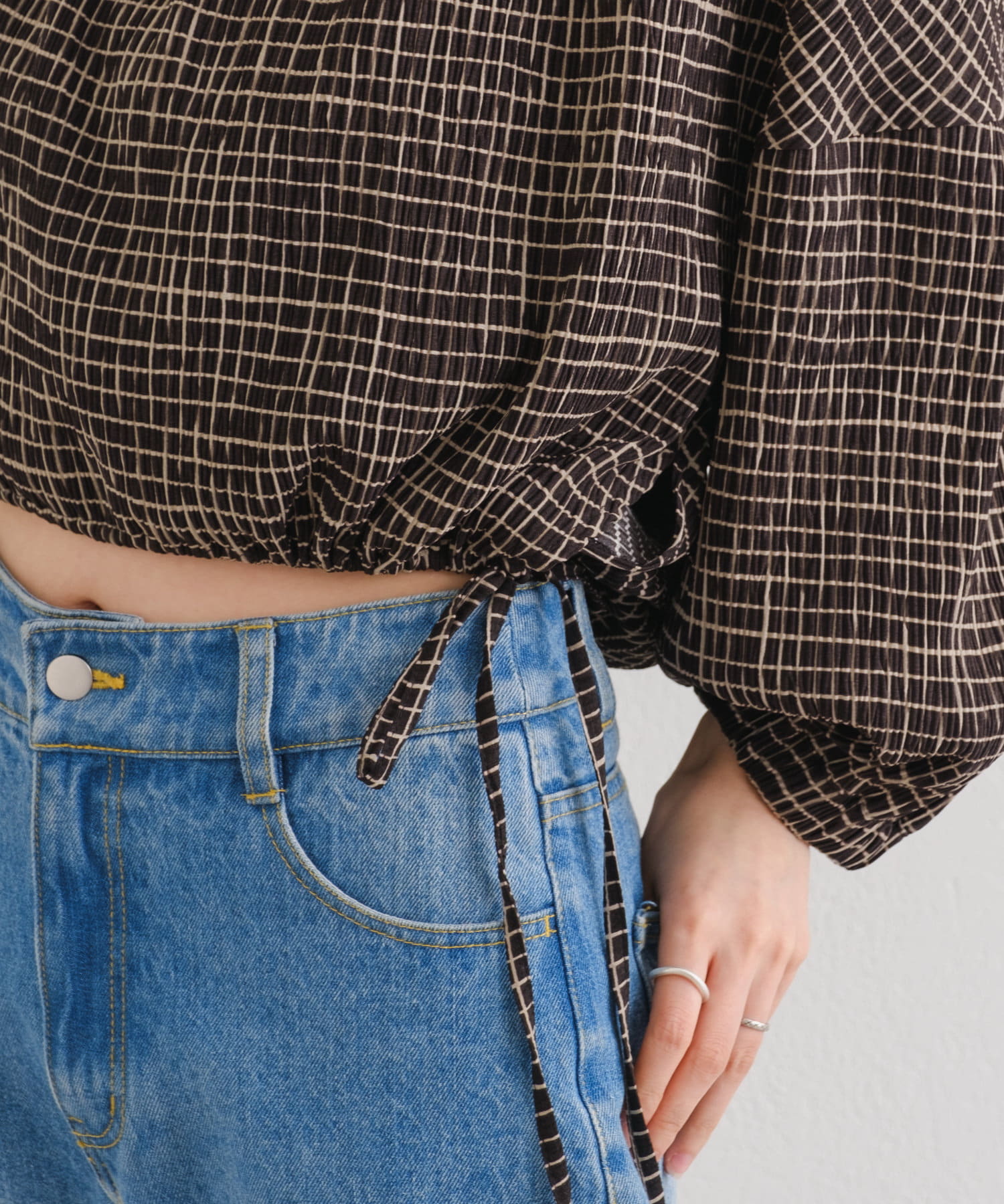 トレンドのショート丈で、裾に付いた紐でシルエットの変化もお楽しみいただけます。