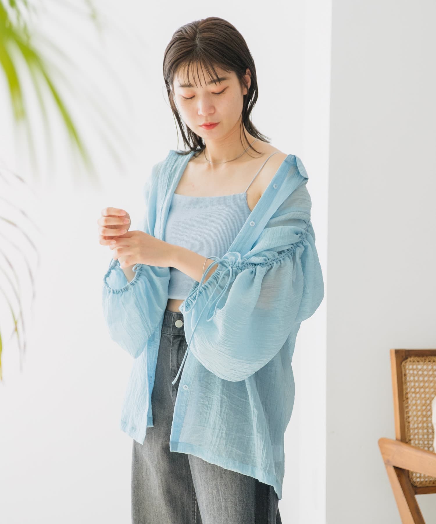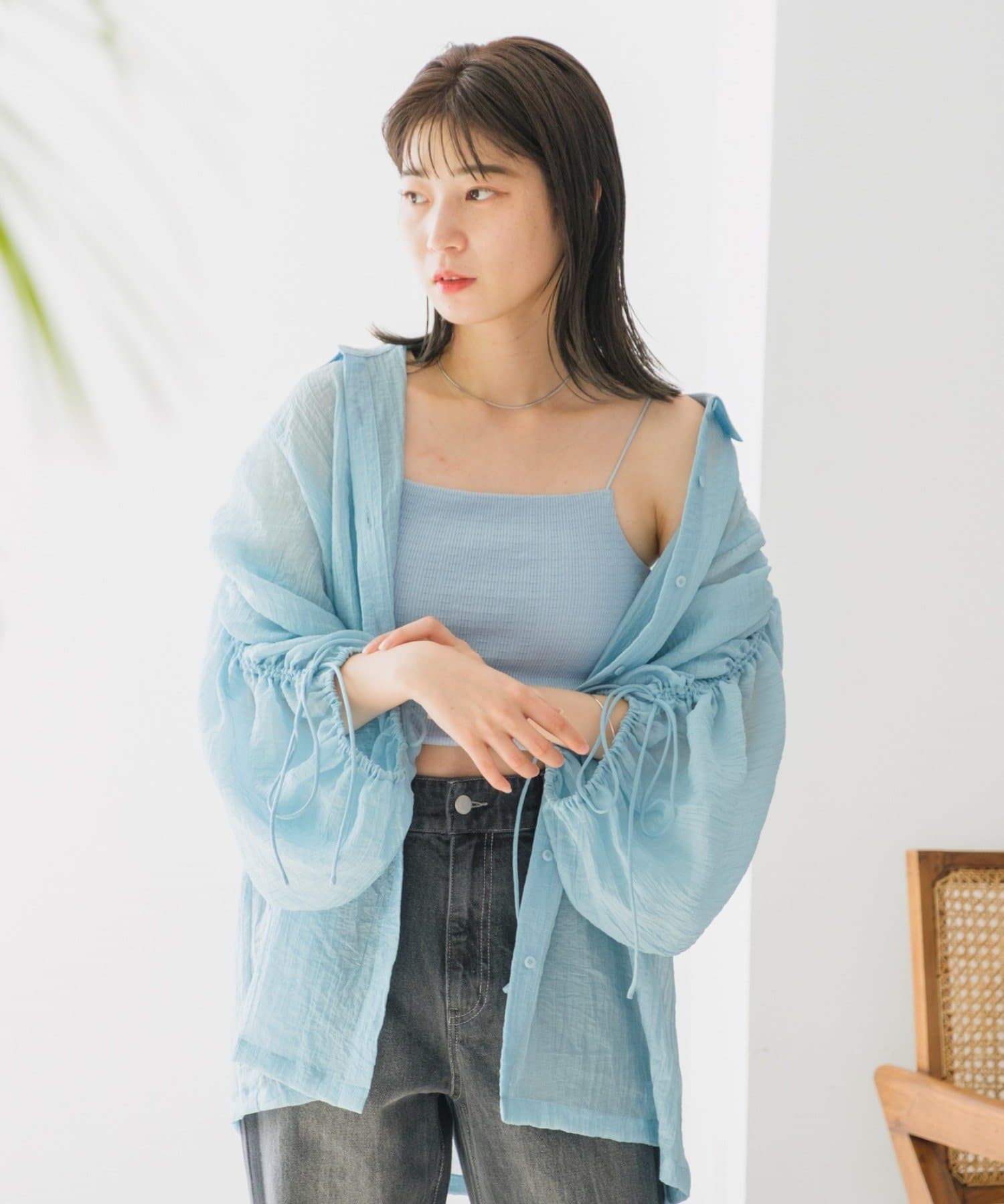 デザイン性があるのでシンプルにシアーやメッシュ系アイテムと合わせても◎