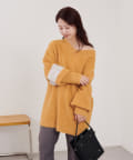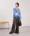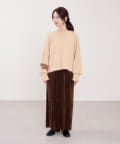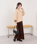 ワイドパンツやベロアのボトムスと合わせると、季節感のあるスタイリングが楽しめます。