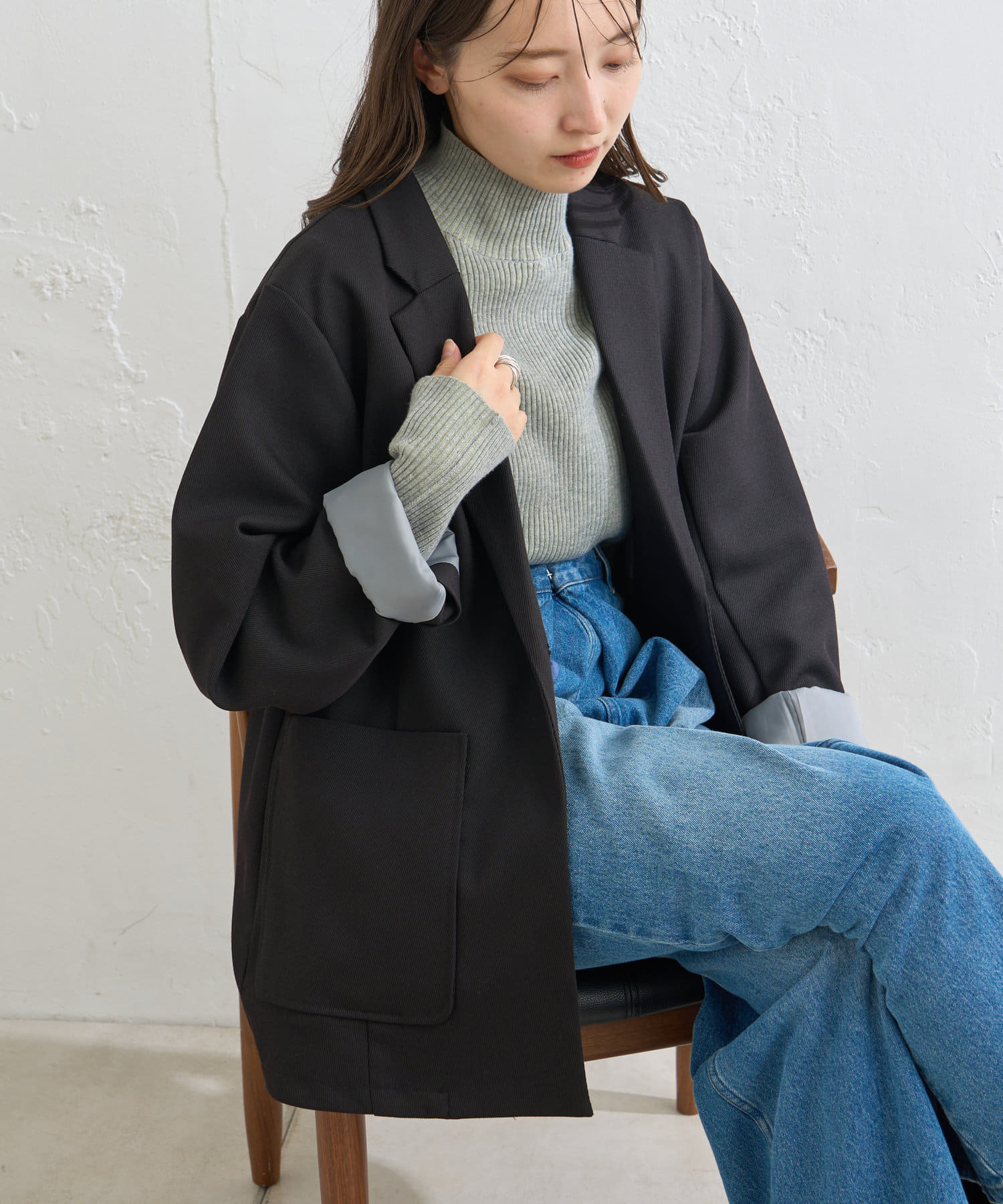 裏地付きで着脱がしやすく、ライナー仕様なので季節の変わり目やレイヤードスタイルにも最適です◎