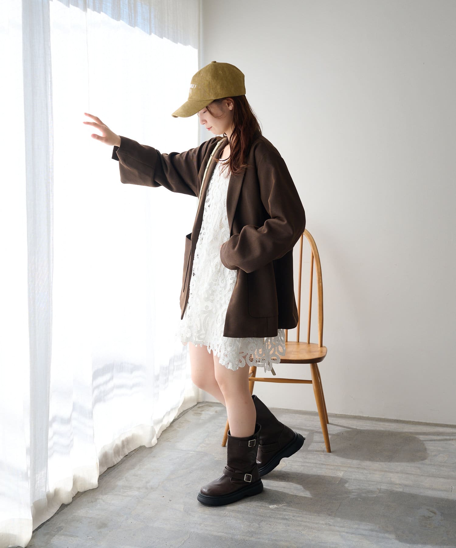 インナーを可愛くしてもこのアウターで引き締まるので綺麗に着こなせました!