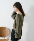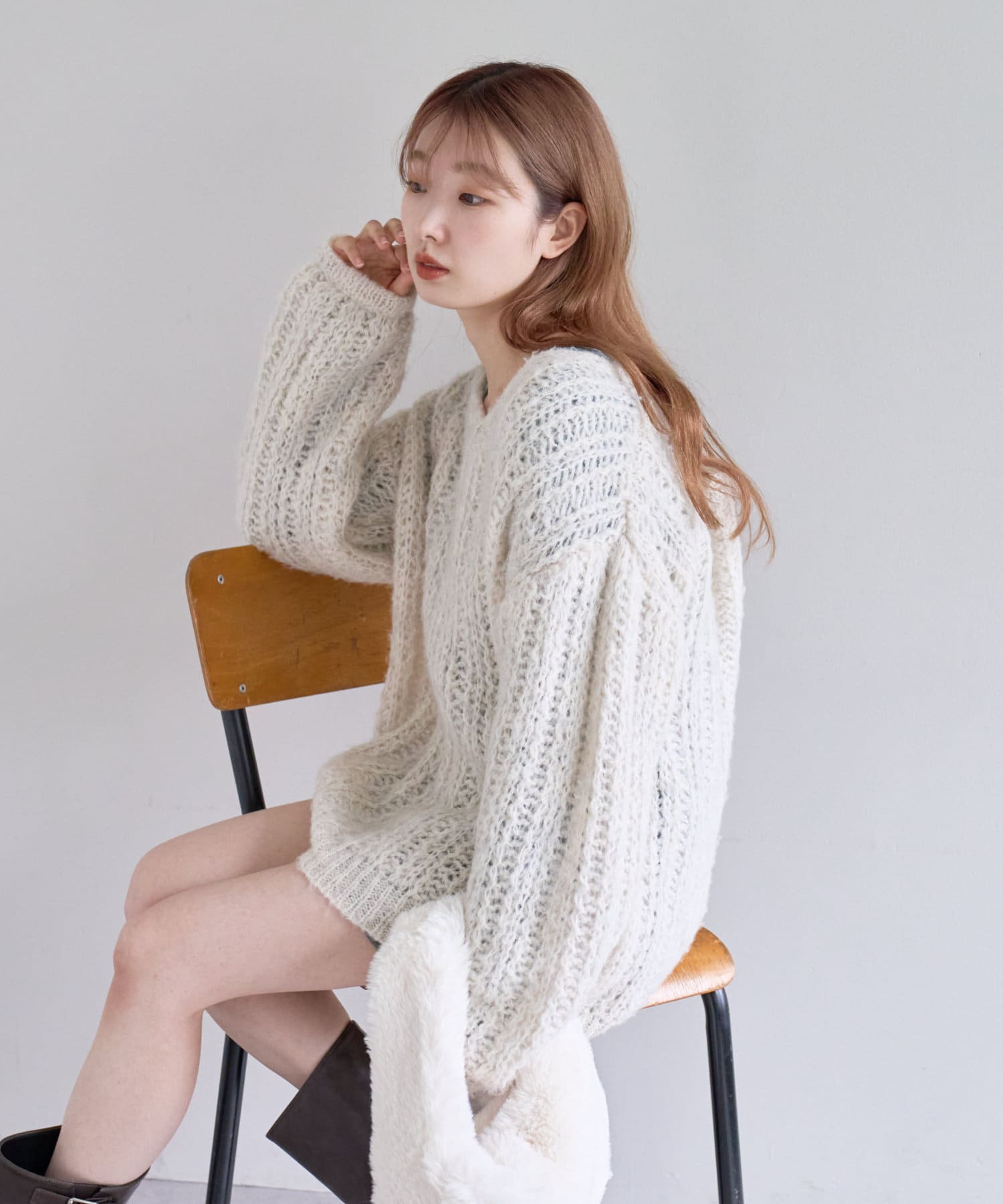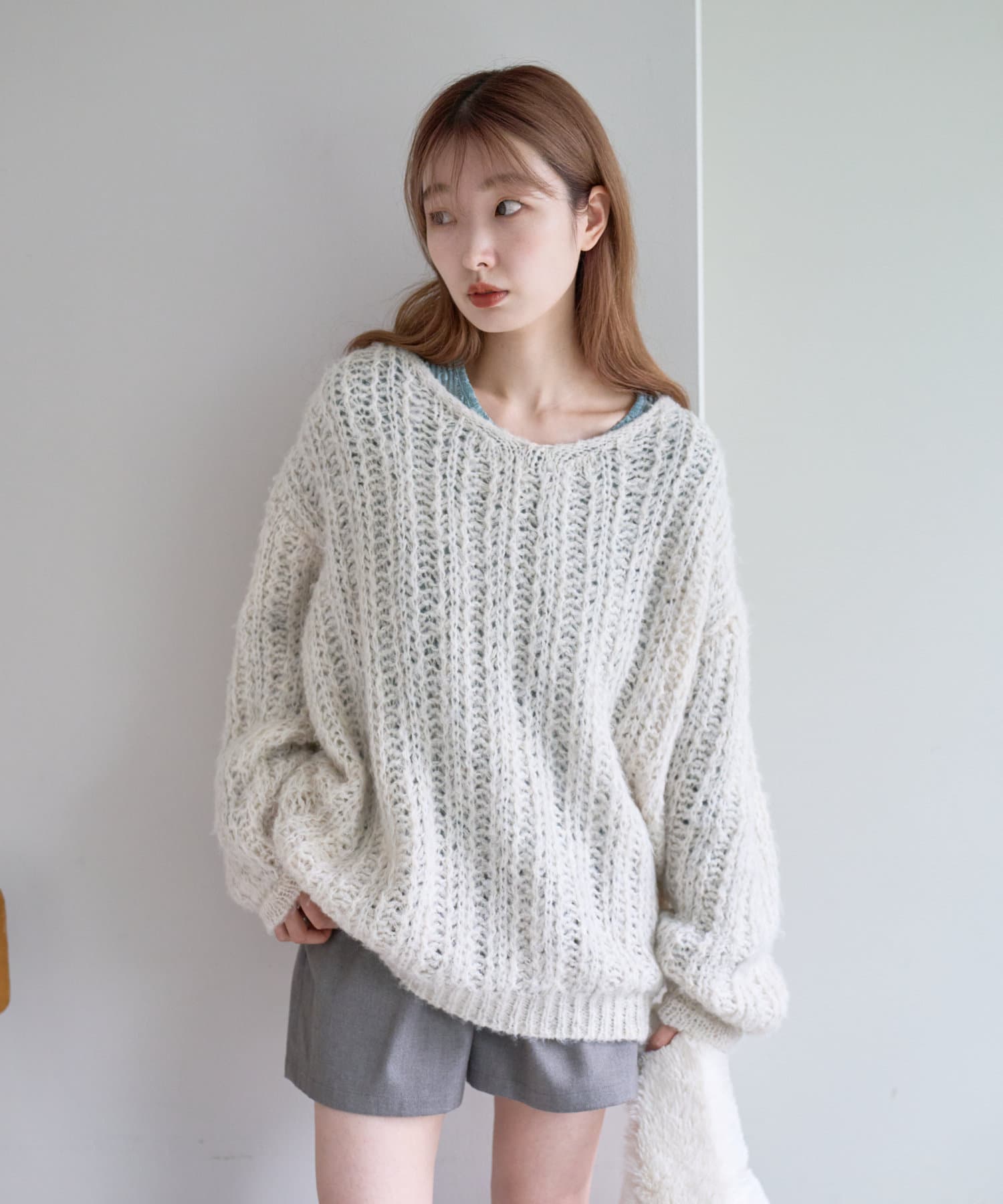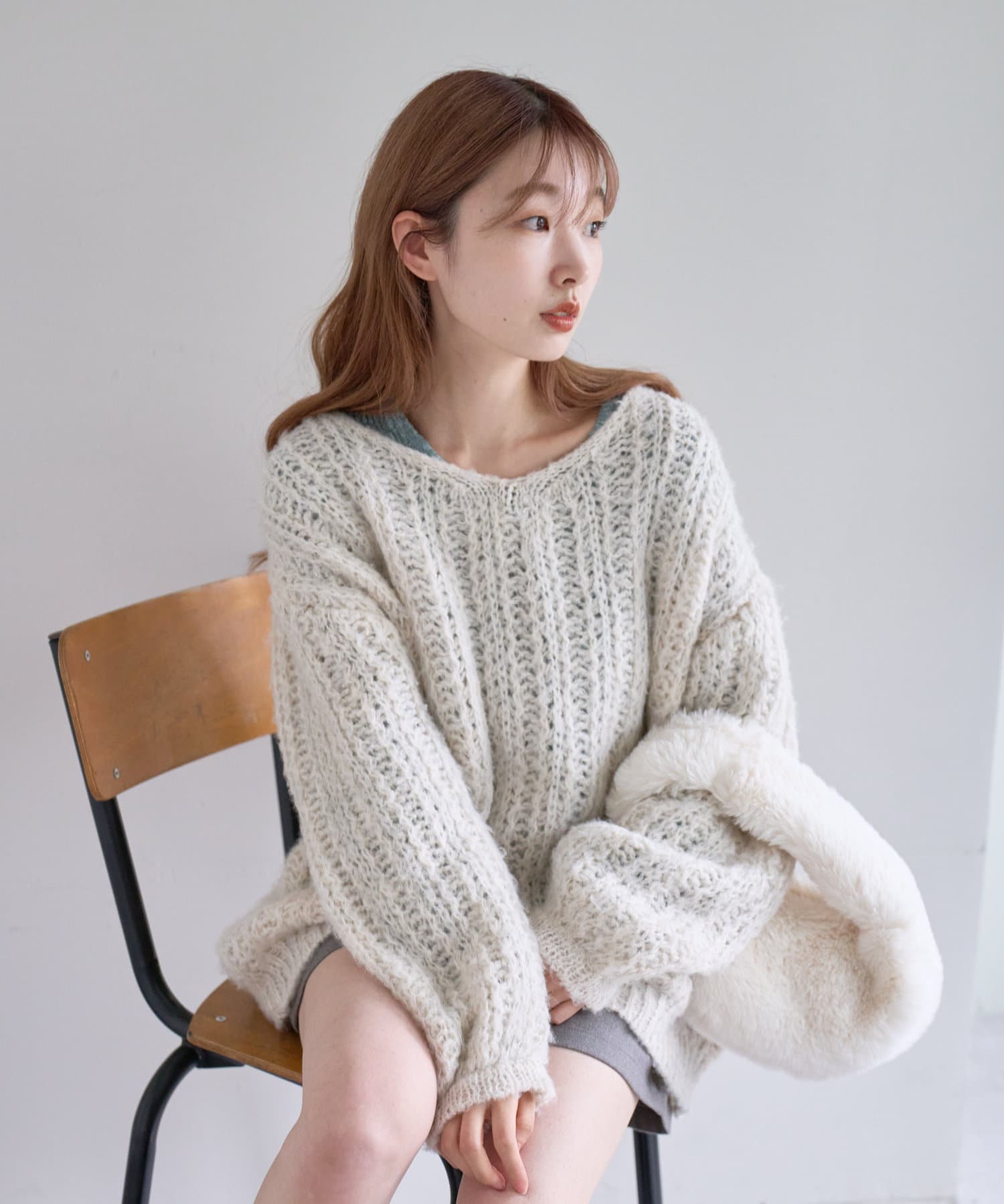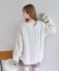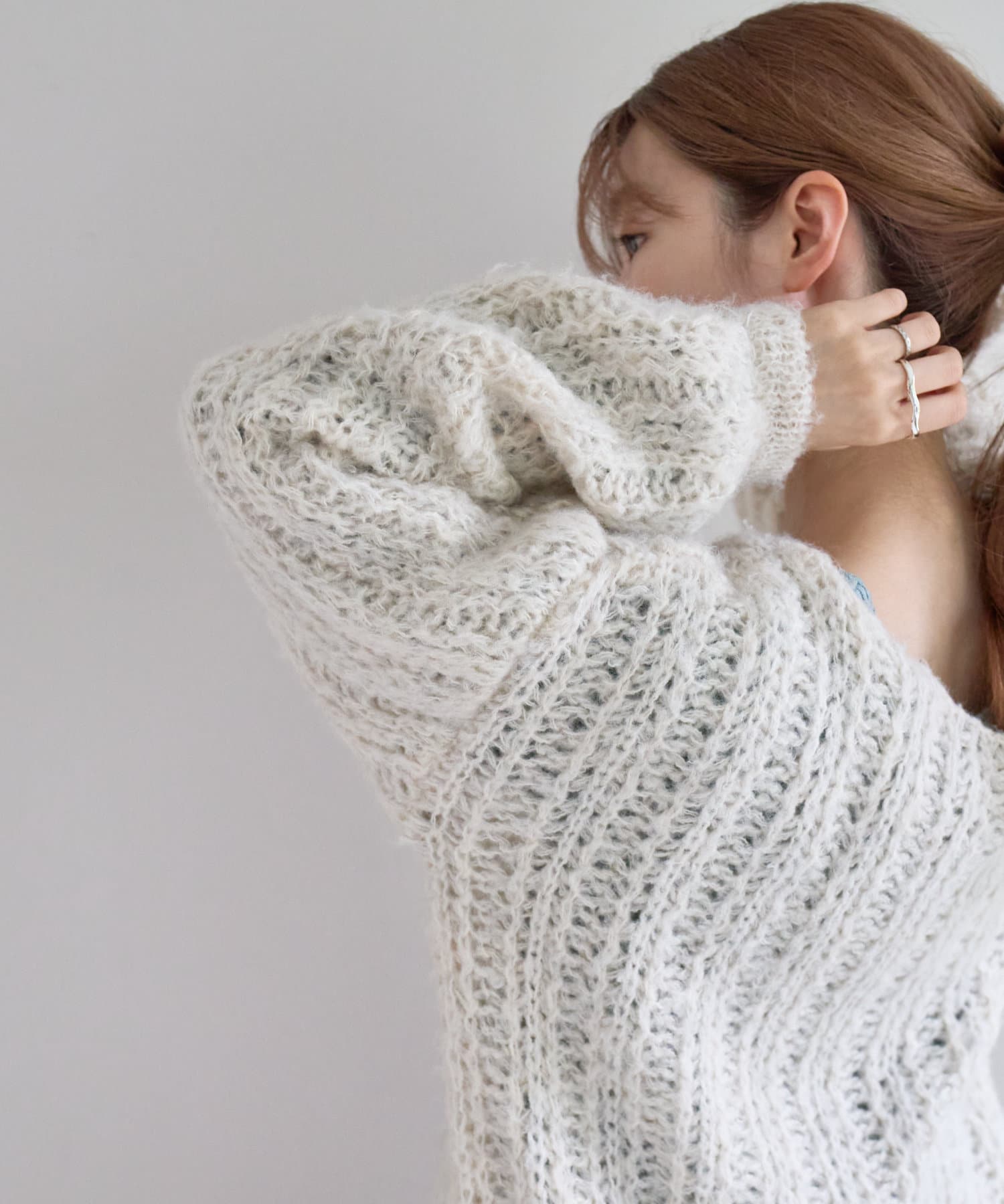 柔らかな印象を与える透かし編みニット