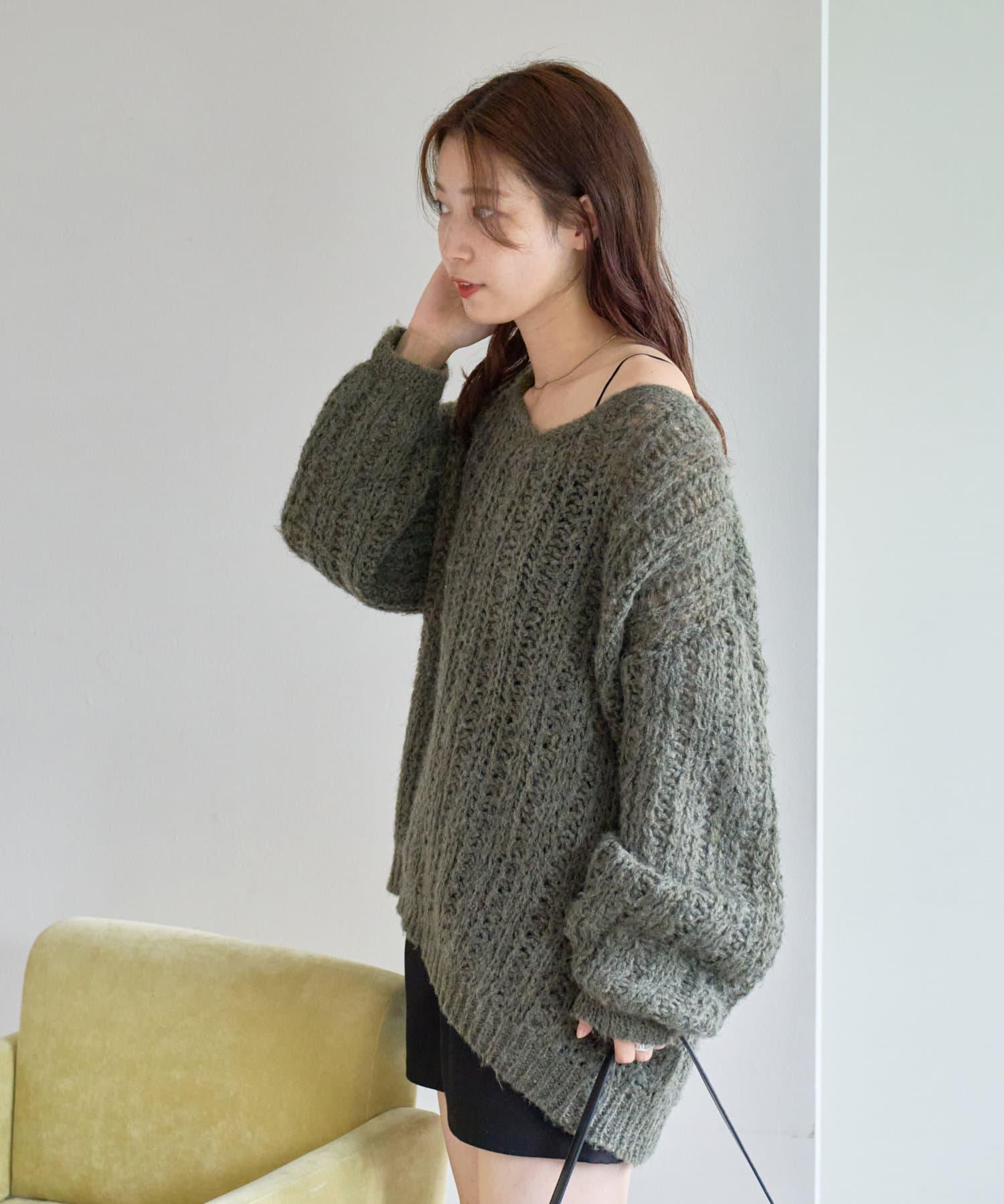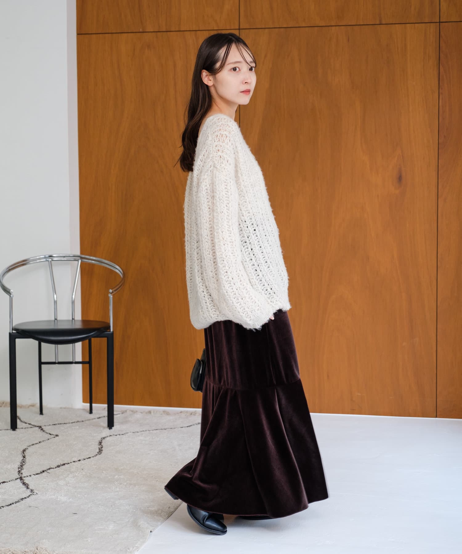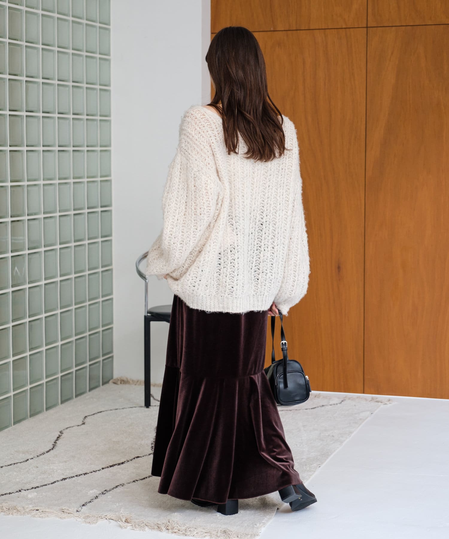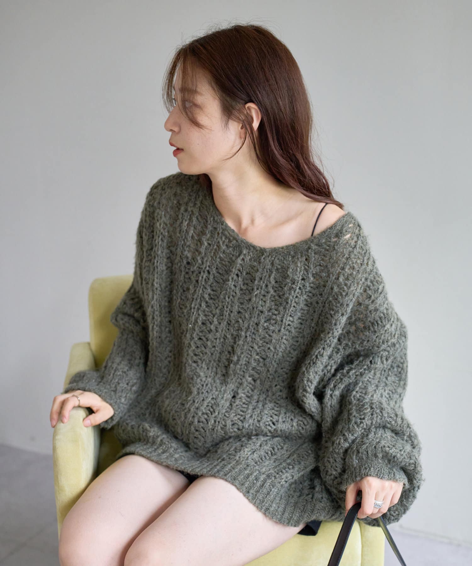 透かし編みのディテールがさりげなく華やかさをプラス。