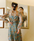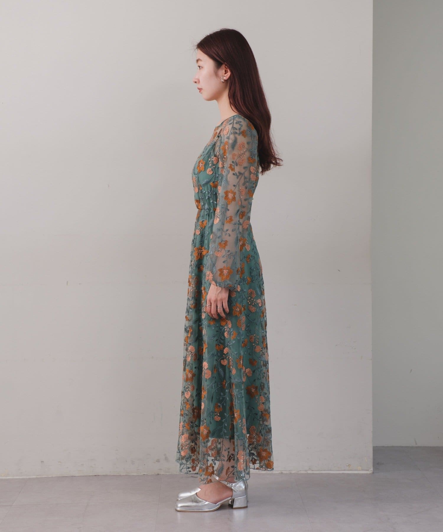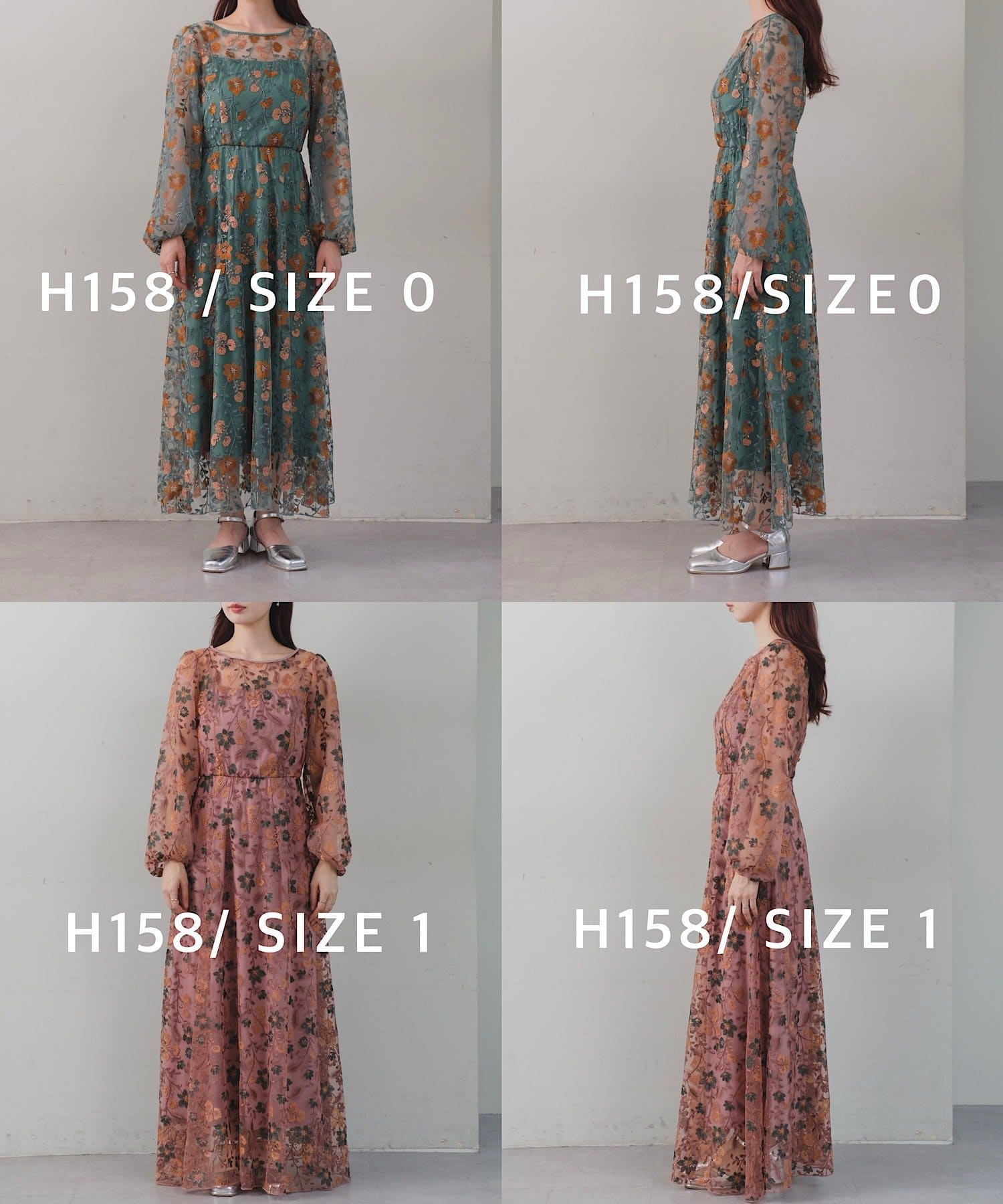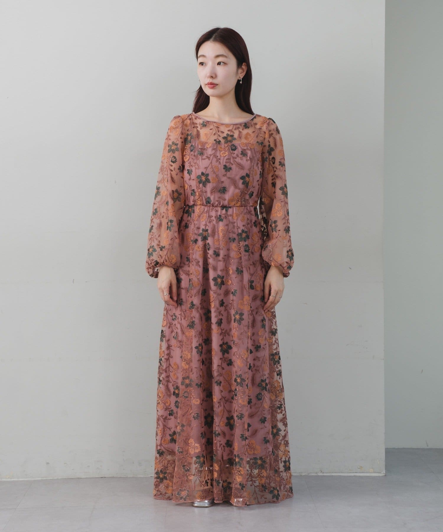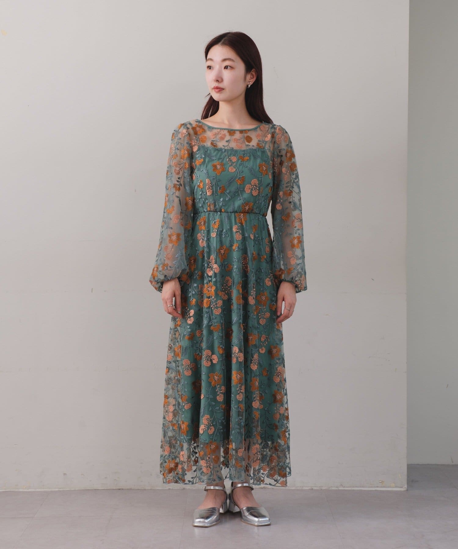 【WEB限定/2サイズ展開/裏地付き】シアーと花柄デザインが魅力のオーガンジードレス
