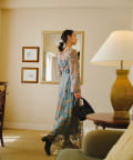 華やかなドレスなので、アクセサリーや小物はシンプルに。
