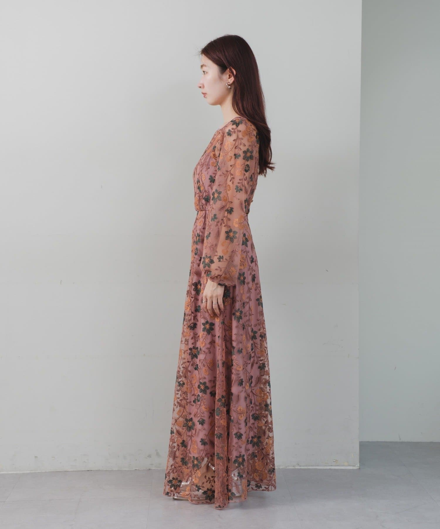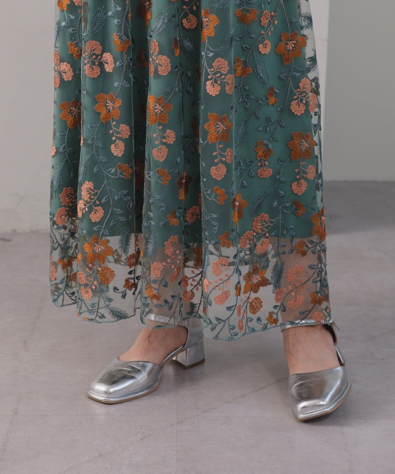 上品な透け感で女性らしさが引き立ち、他にはない華やかな刺繍の配色が目を惹きます。