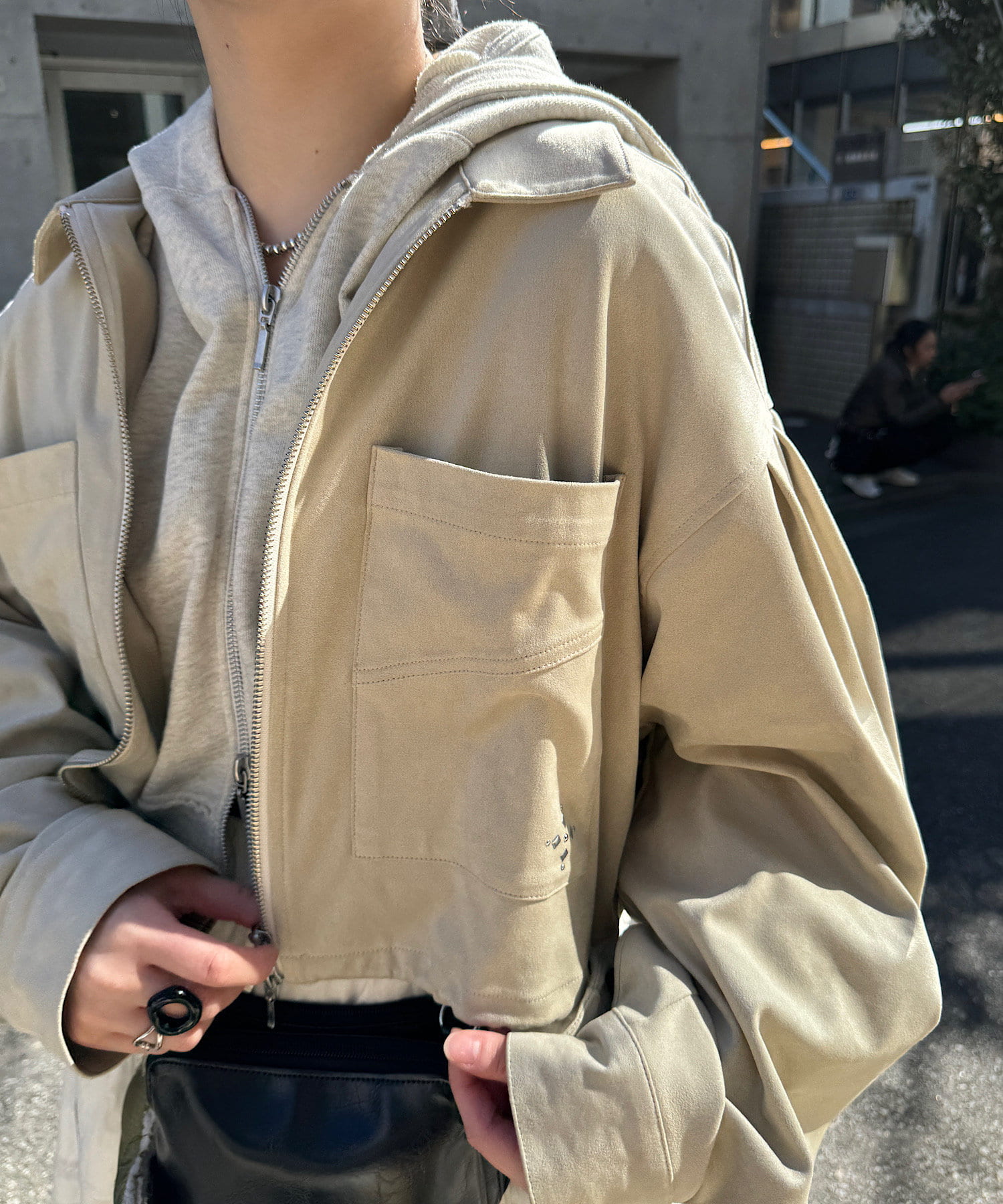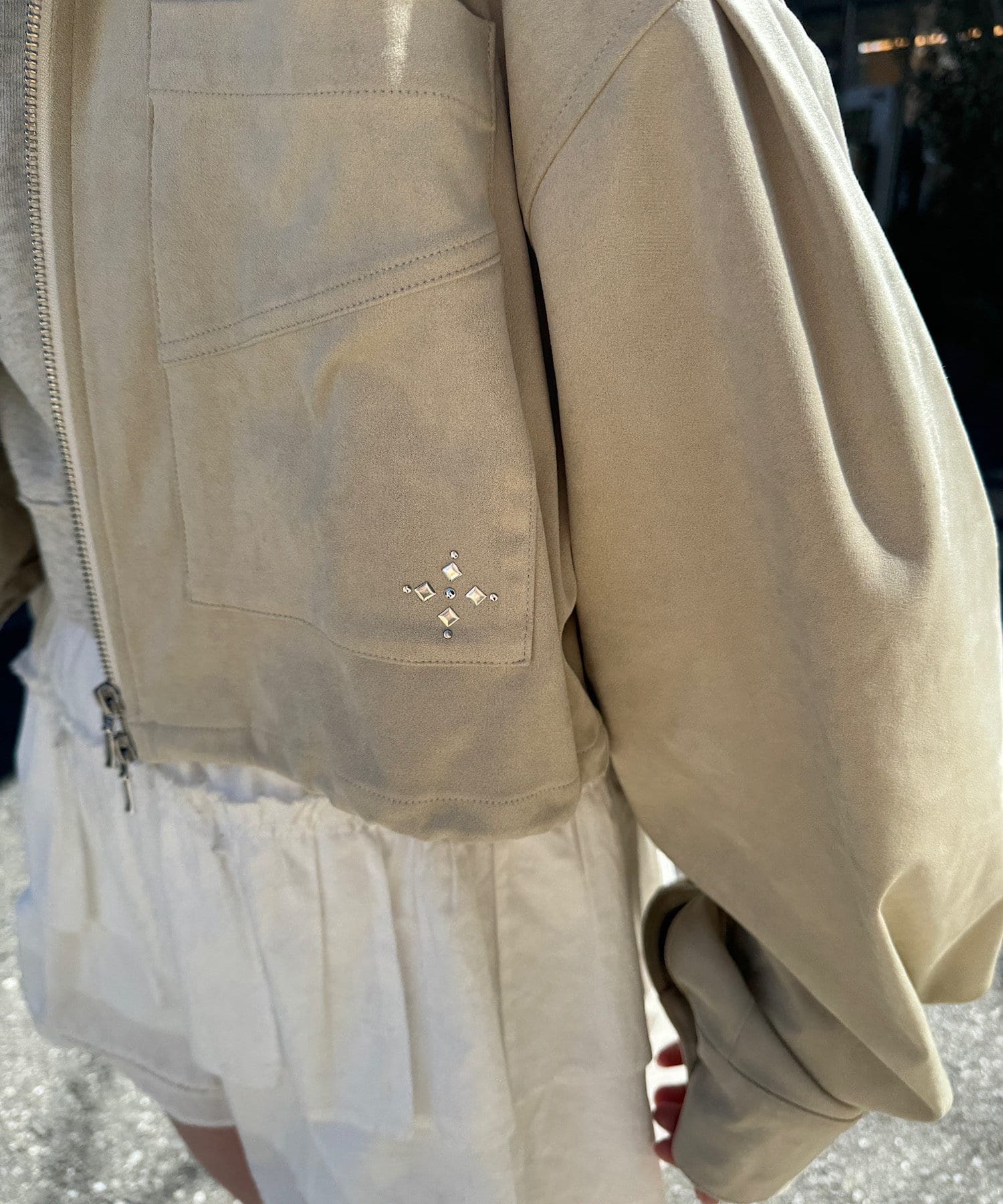 フロントの大きめなポケットとスタッズが目を惹くジャケット。