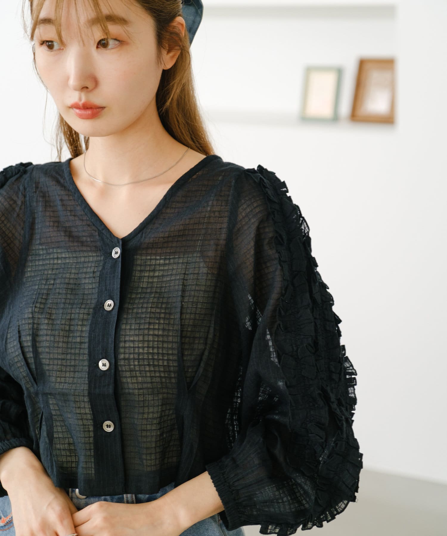 • OUTLET(アウトレット) 【Kastane】インド綿フリルブラウス