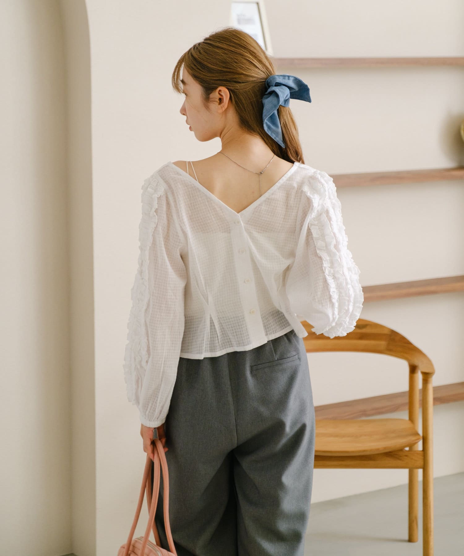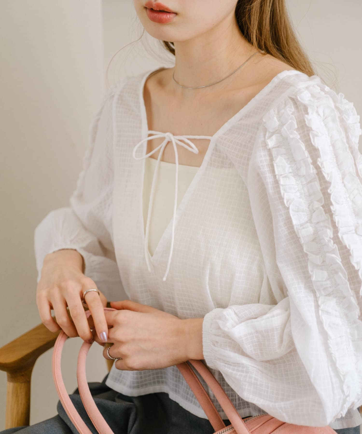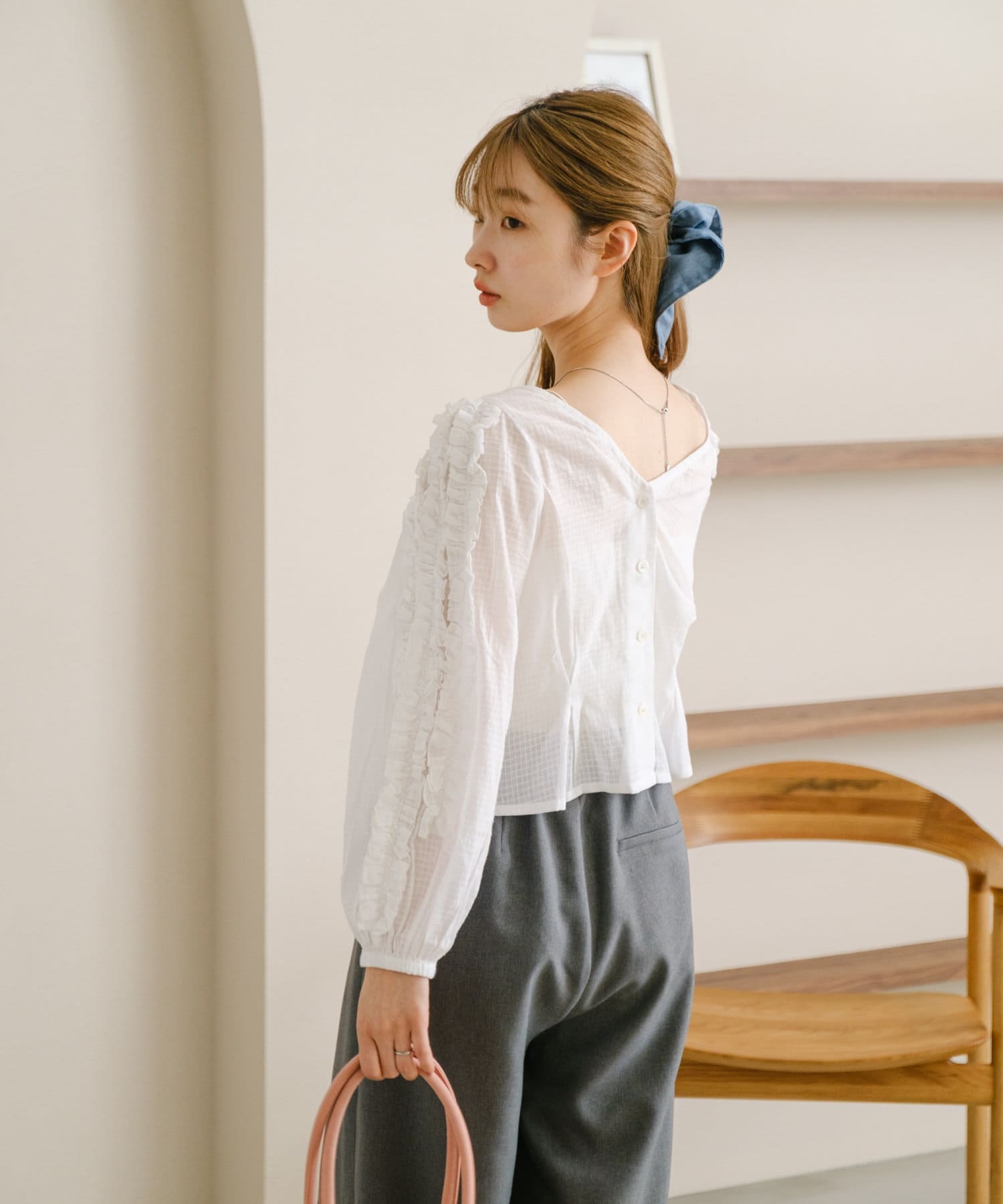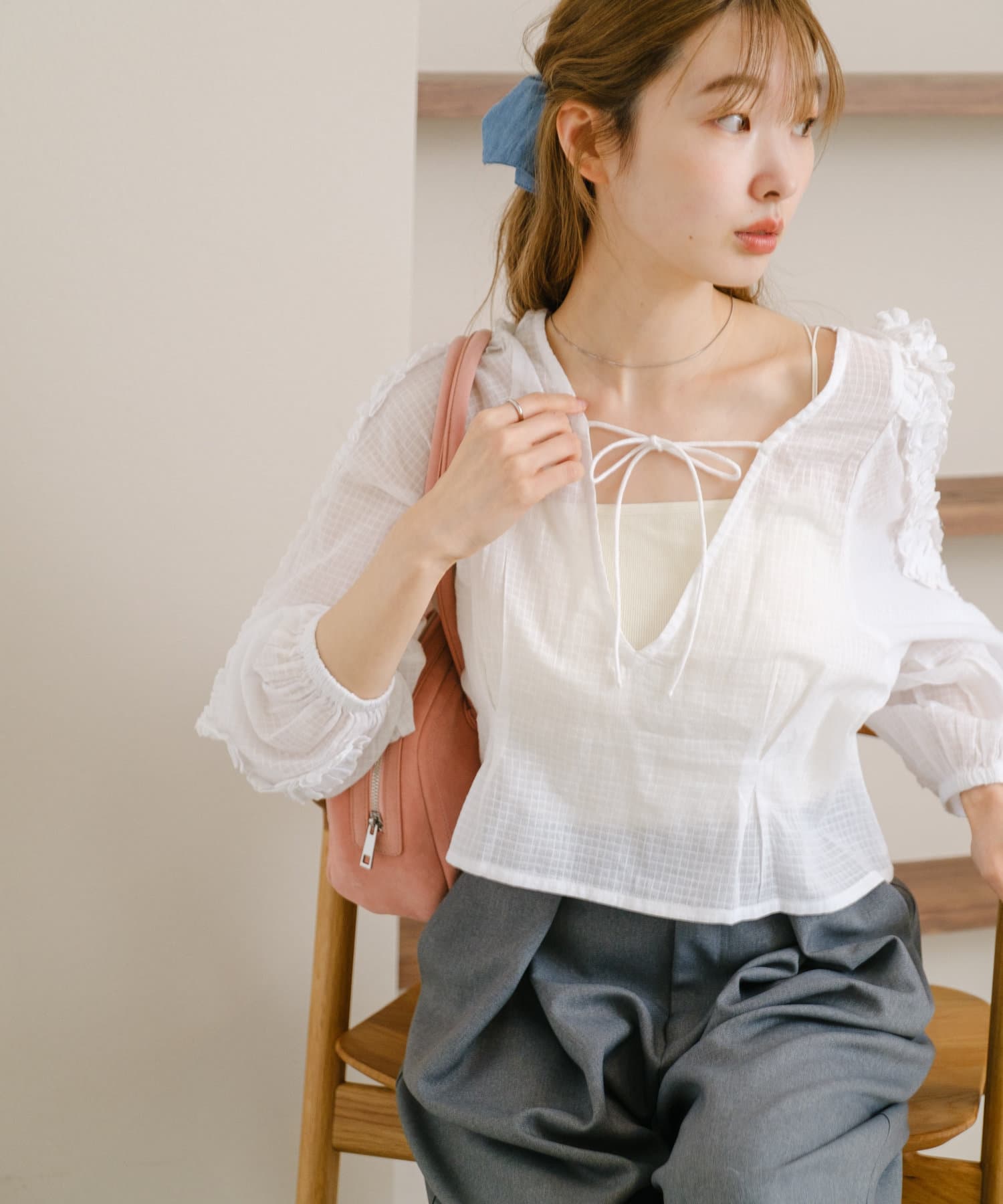 TOP > OUTLET > レディース > トップス > シャツ/ブラウス(ボタン) > 【Kastane】インド綿フリルブラウス