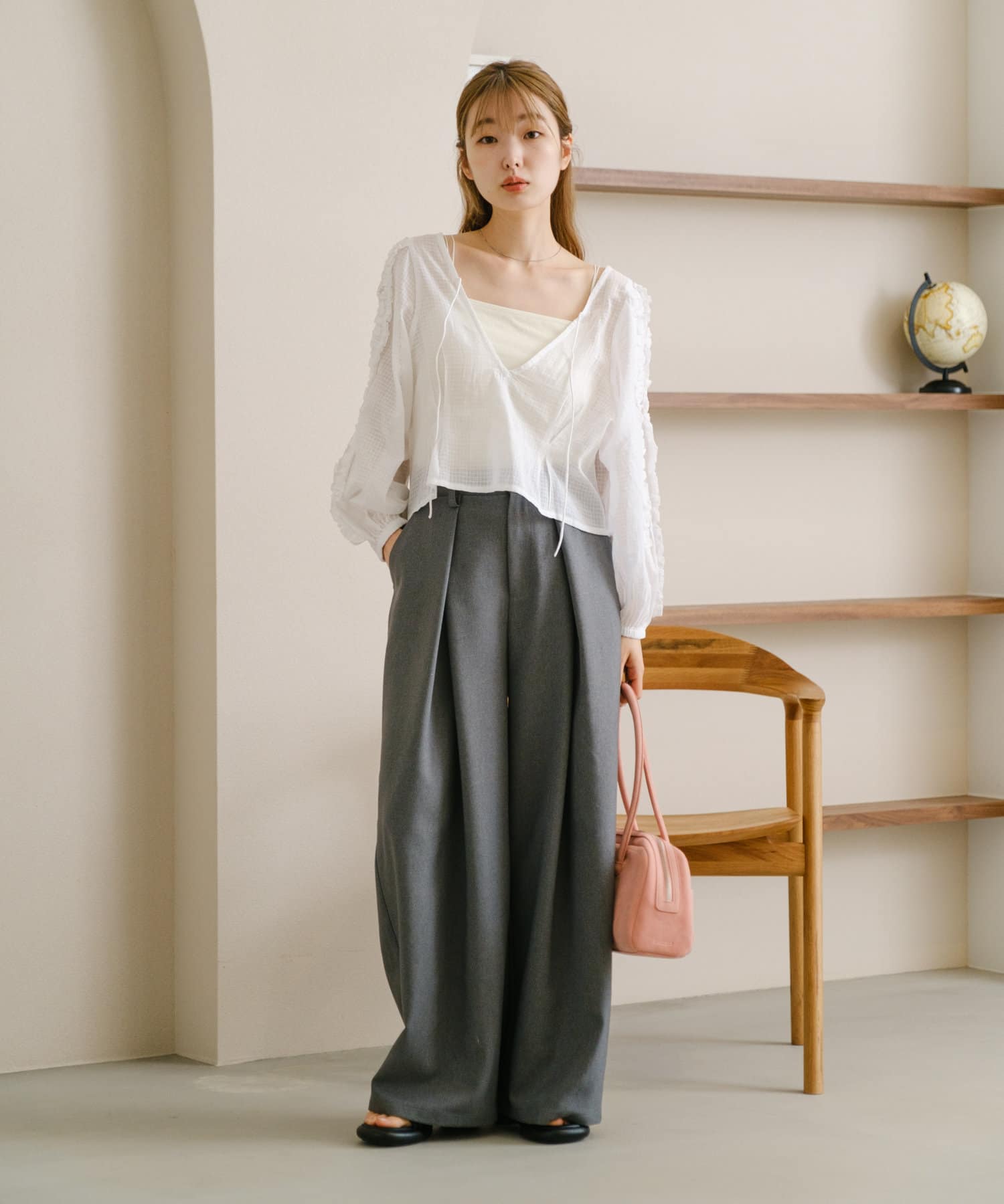 ウエストの部分にタックが入っているので、スタイルアップも◎