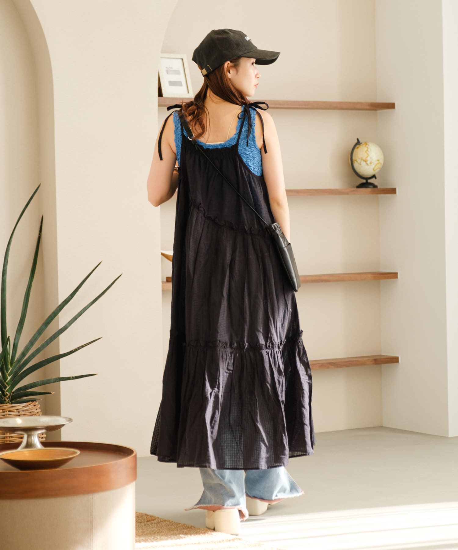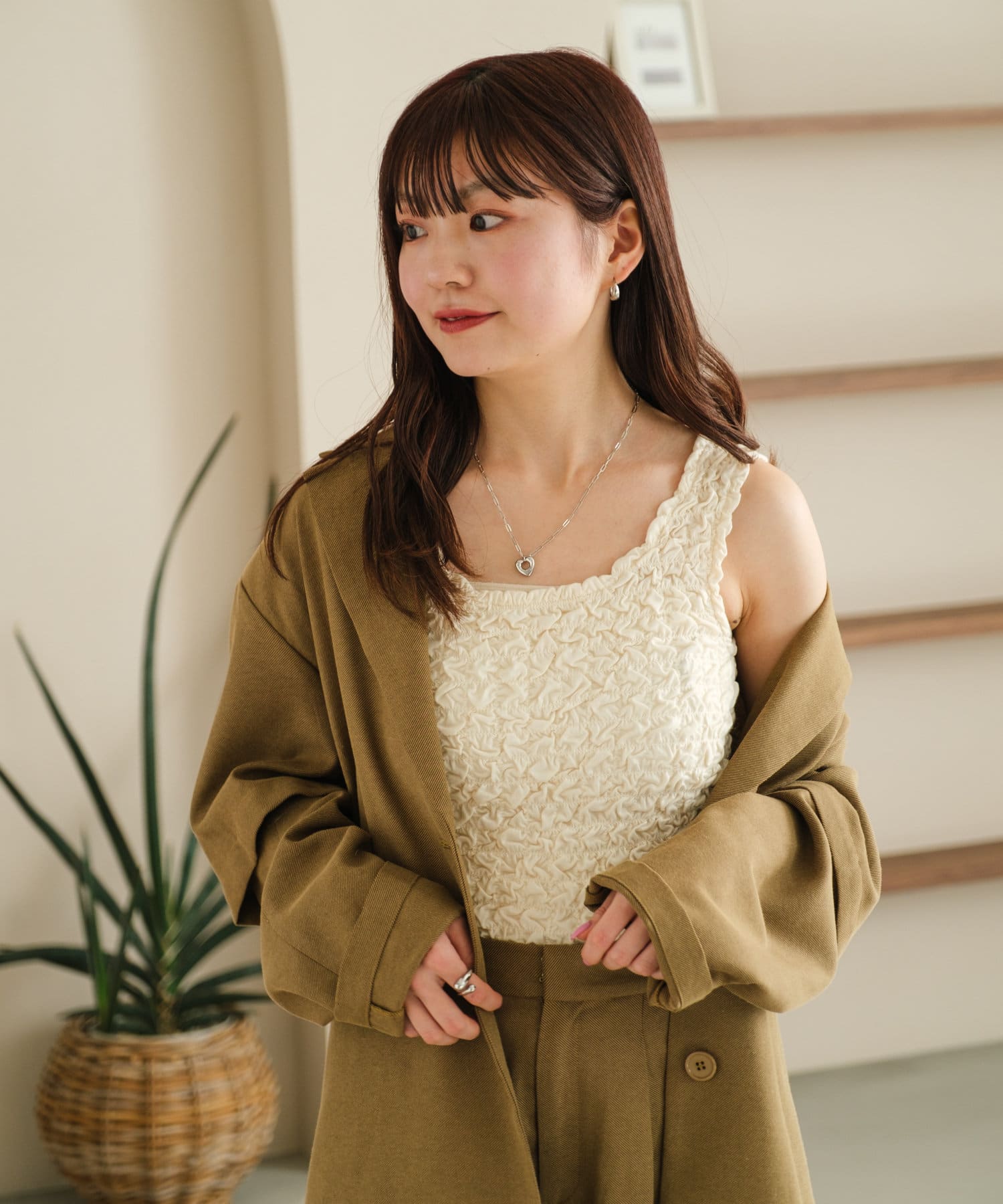 シンプルながらデザイン性があるので、真夏には一枚でも着ていただけます。