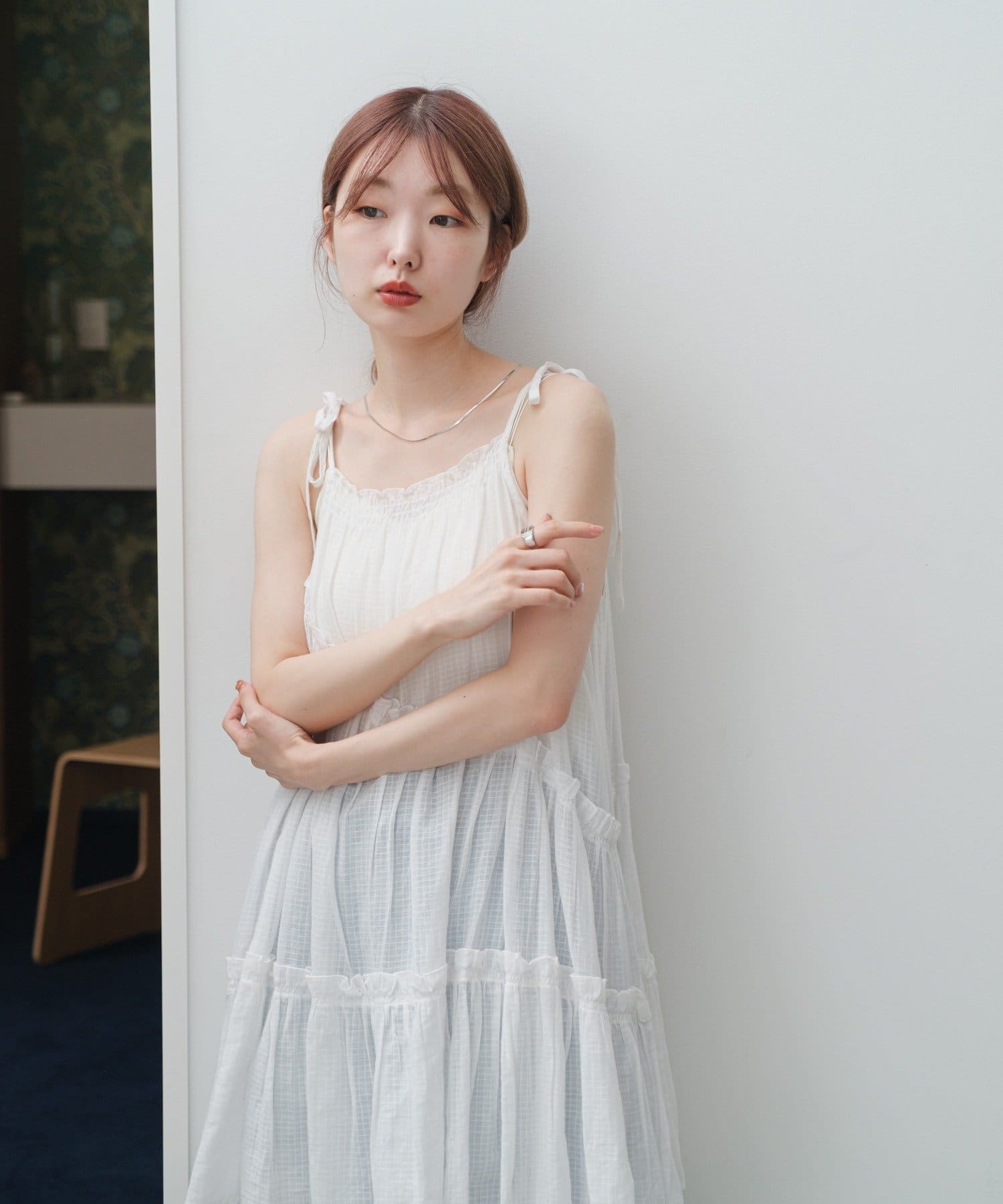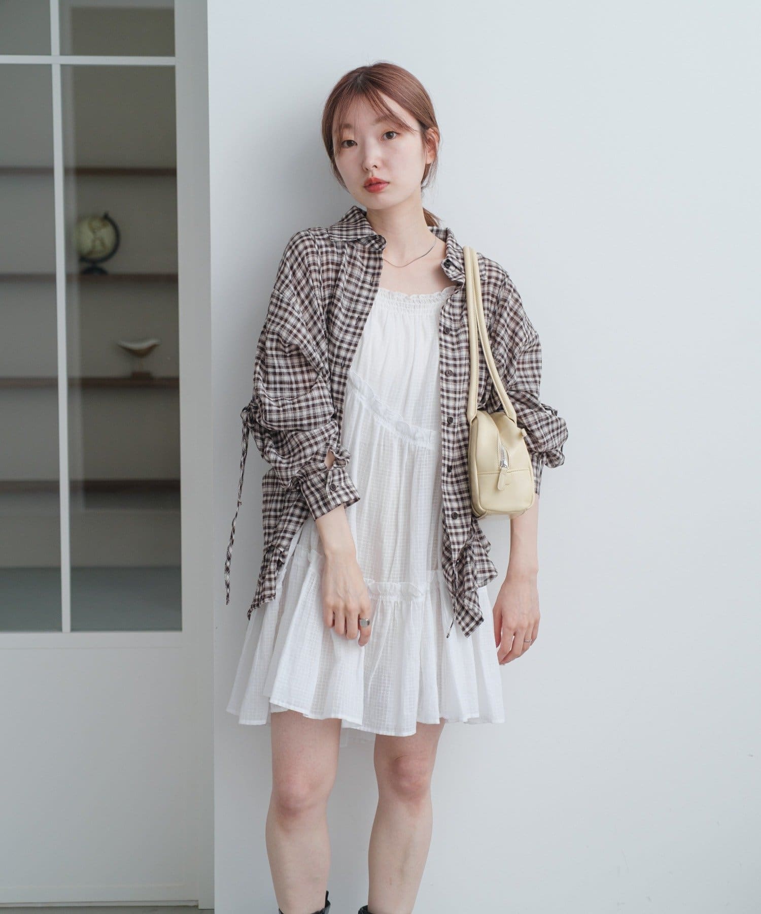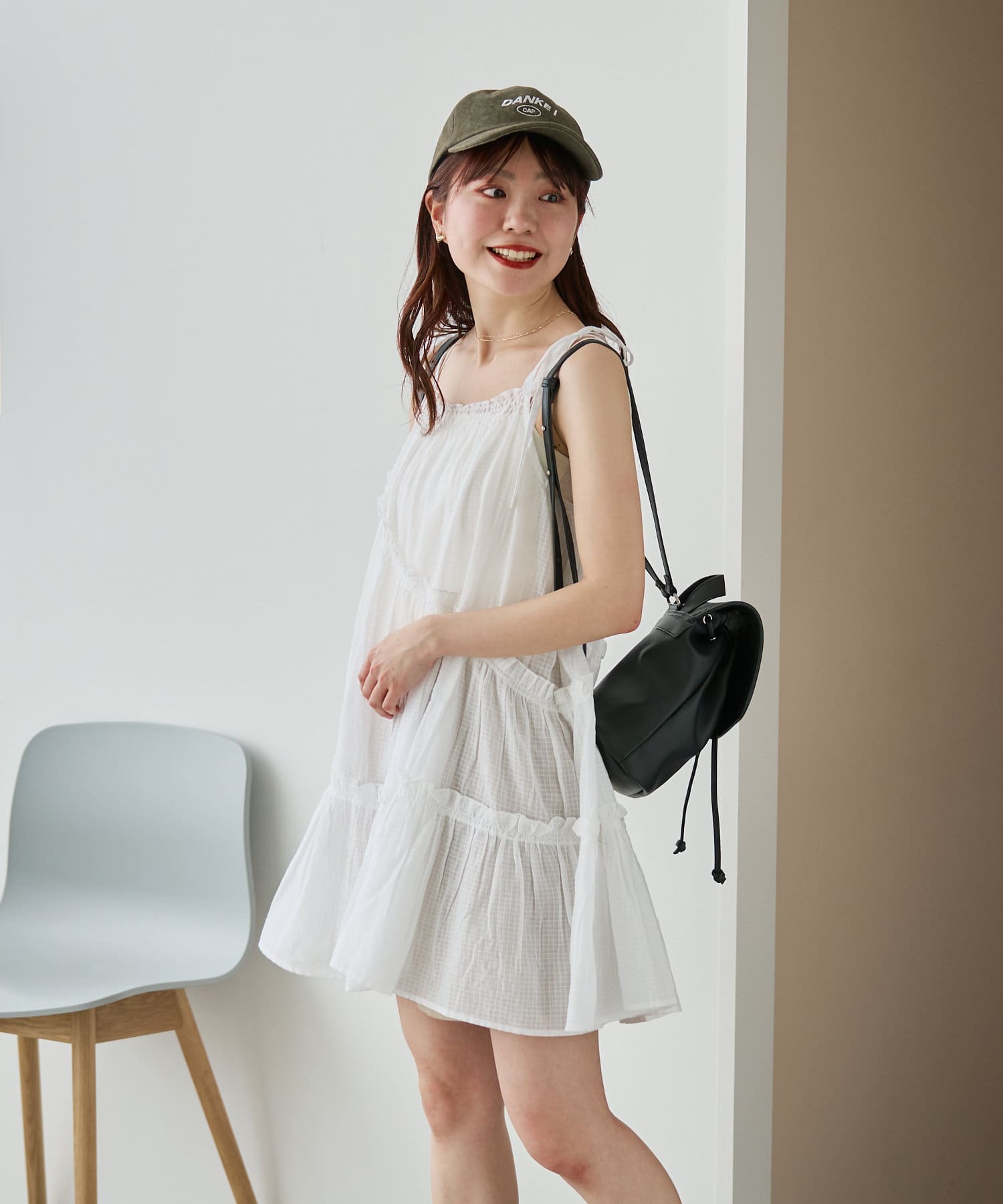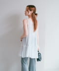 ティアードのデザインに胸元はギャザー仕様でアクセント。