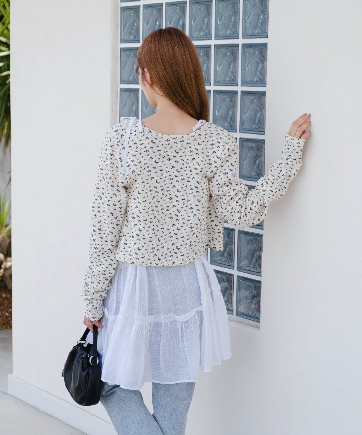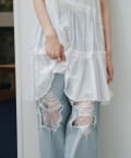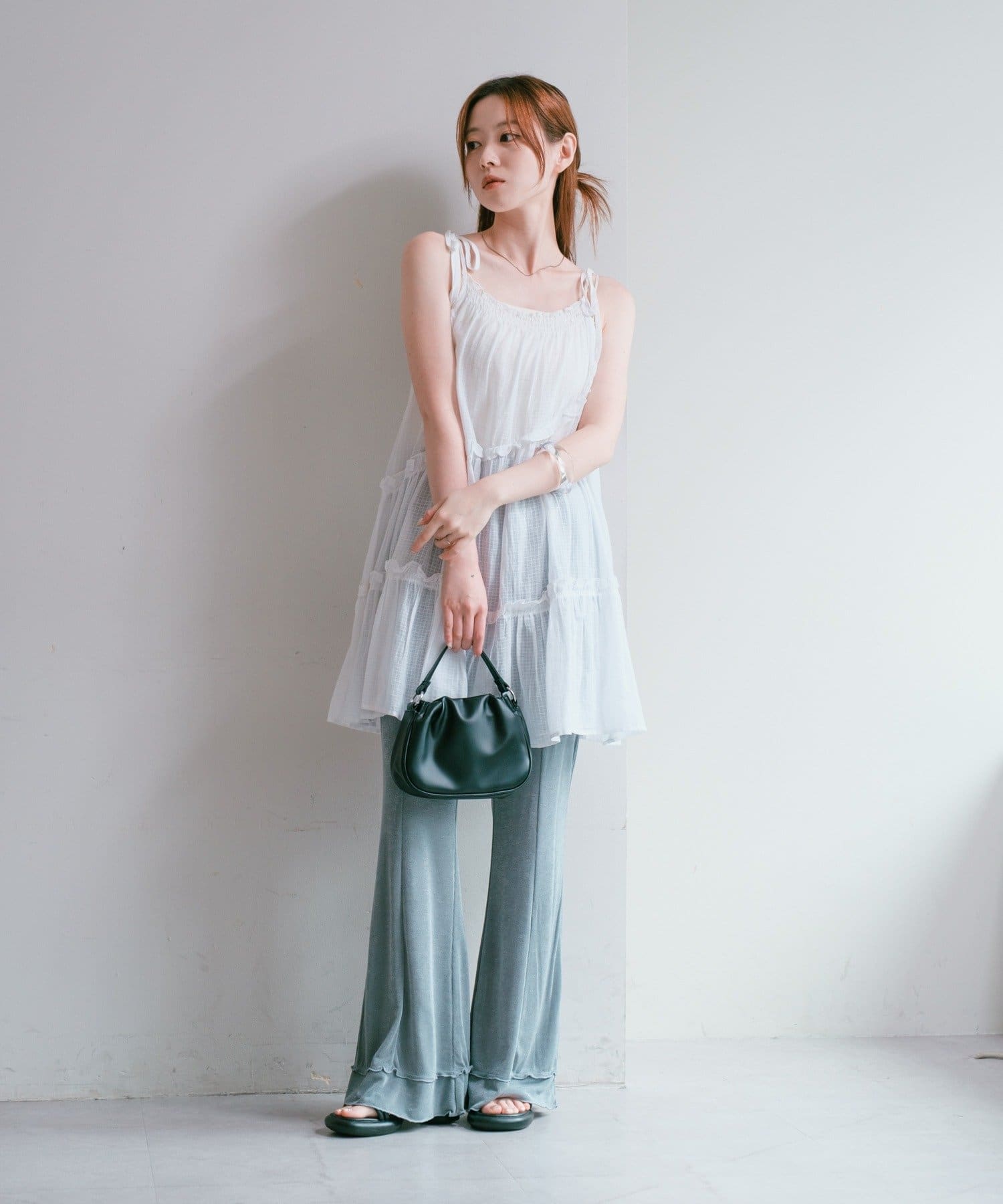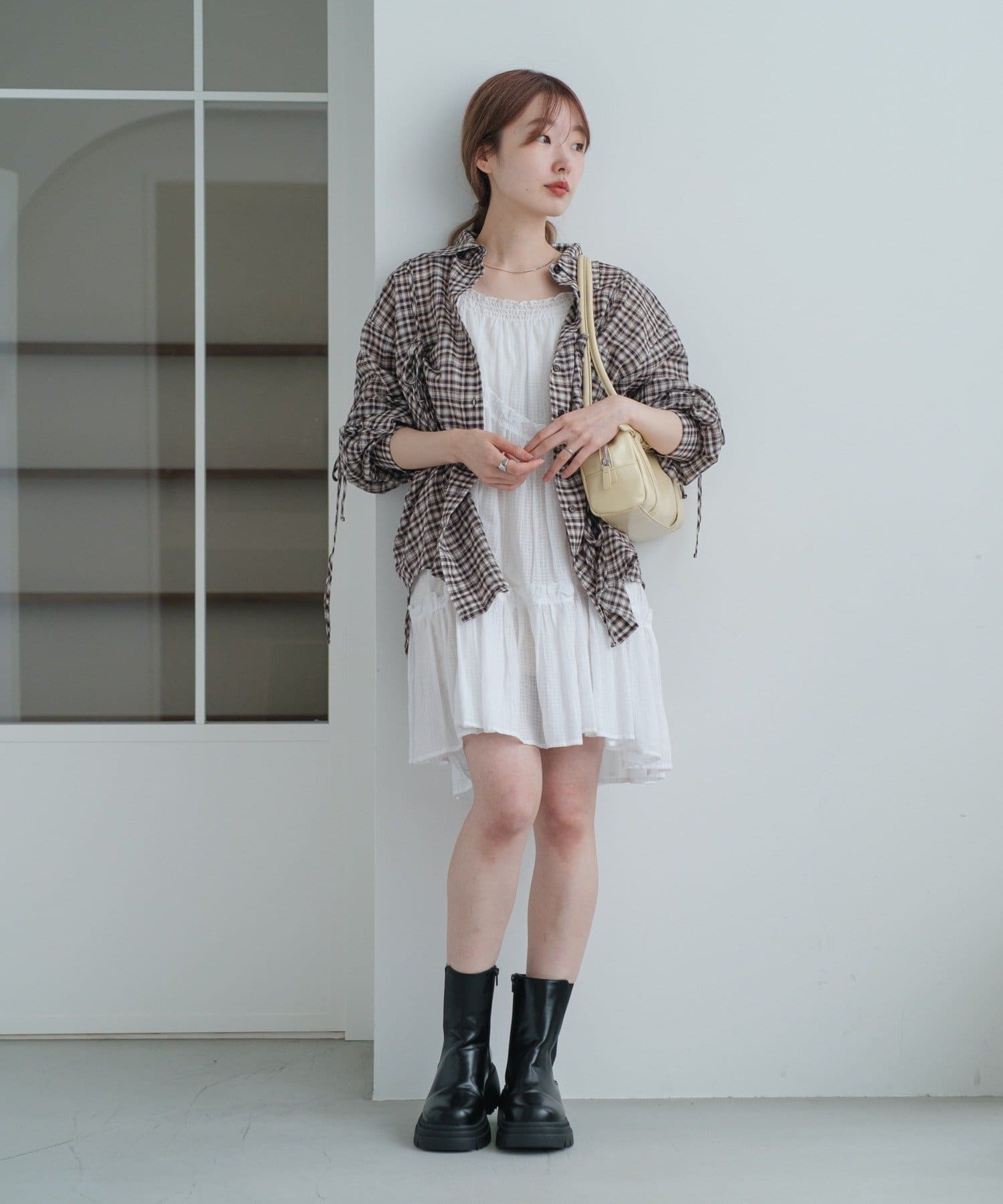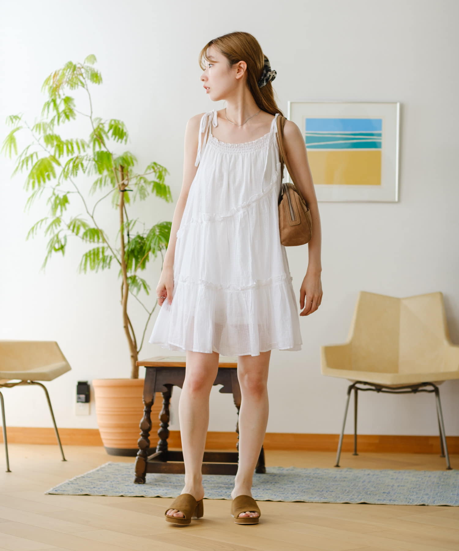 ティアードのデザインに胸元はギャザー仕様でアクセント。