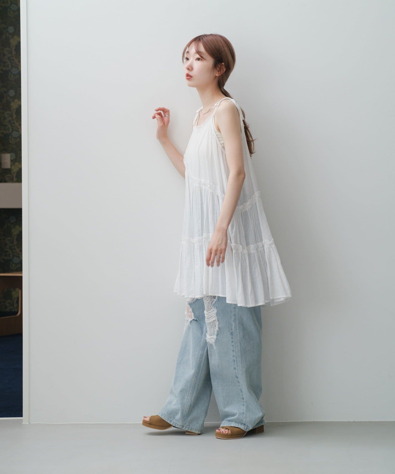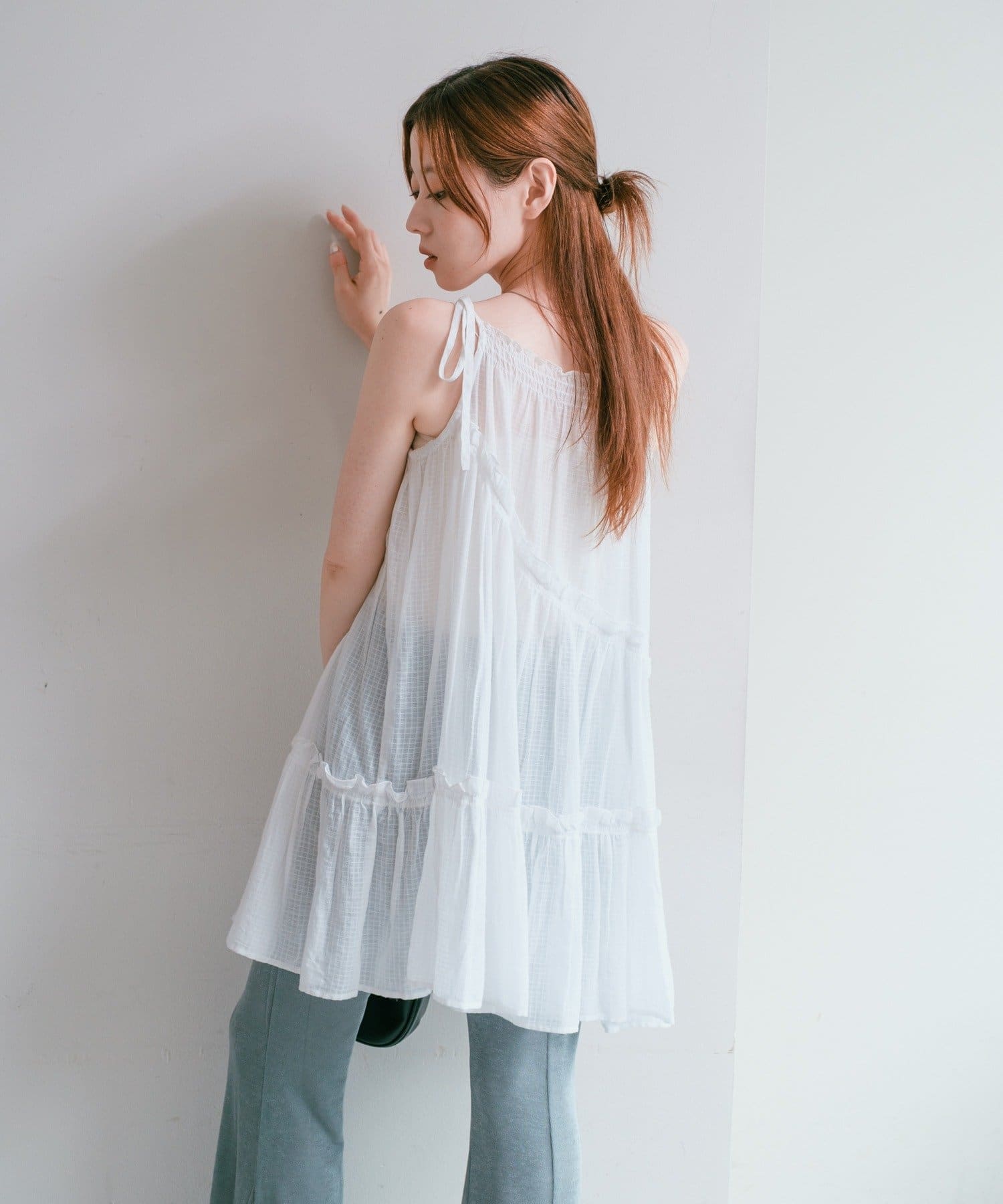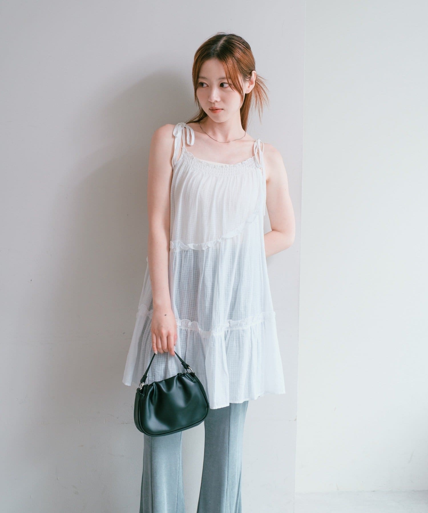 購入場所:店舗透け感◎!まさに探し求めていたチュニックでした!肩紐で長さの調節ができるのもとってもいいなと思っています。合わせるアイテム次第でガーリーにもカジュアルにもなるのが個人的なお気に入りポイントです♡