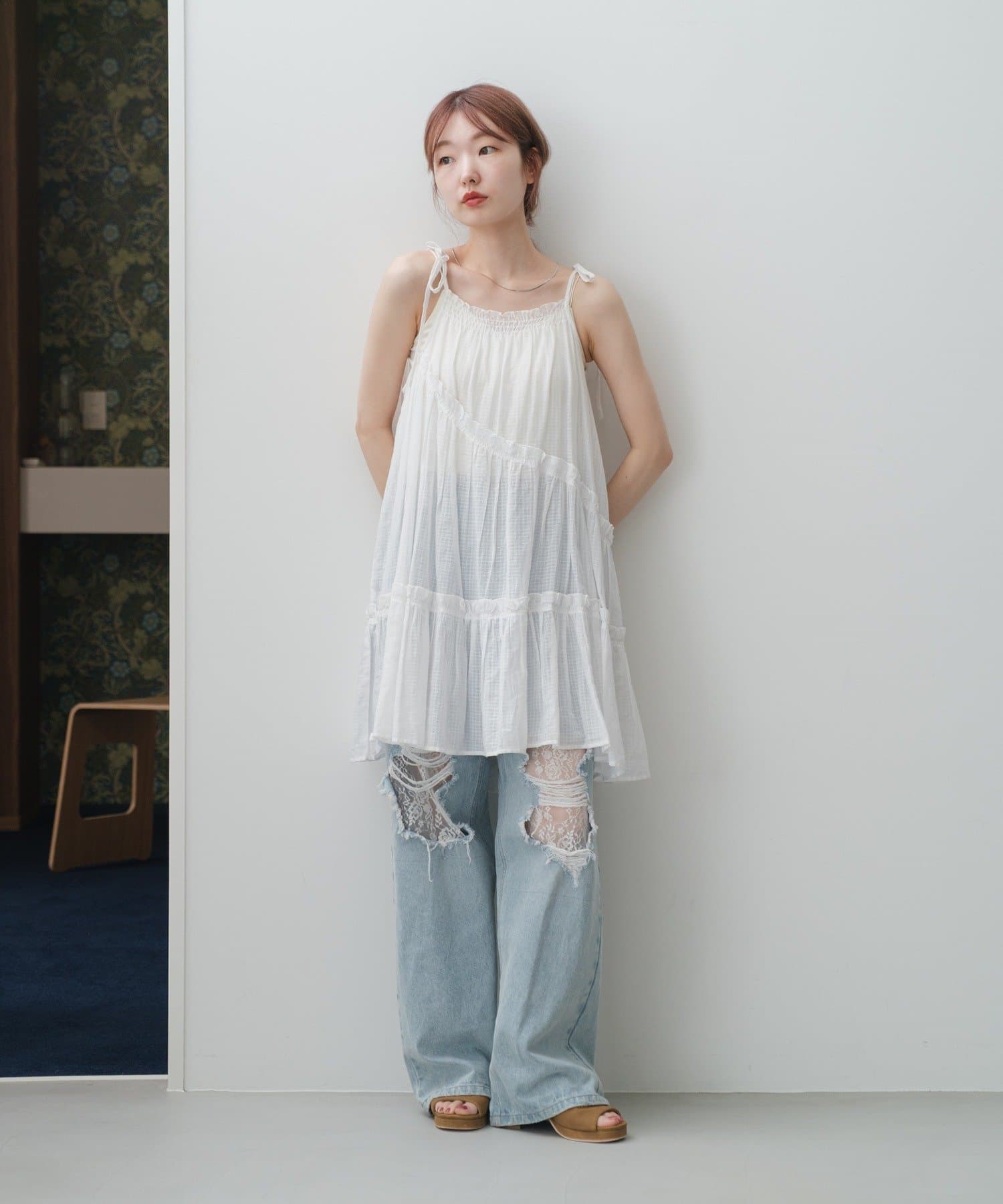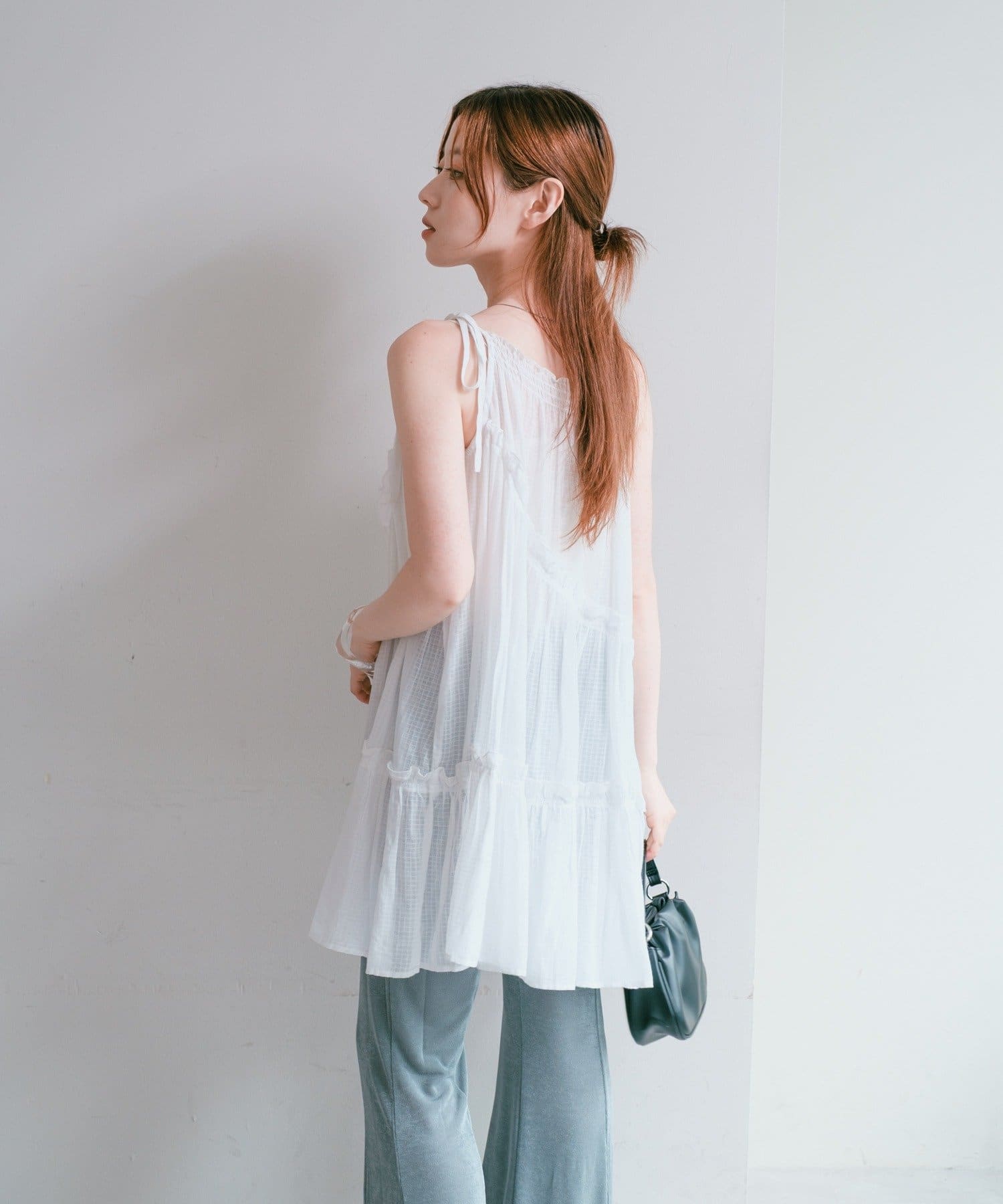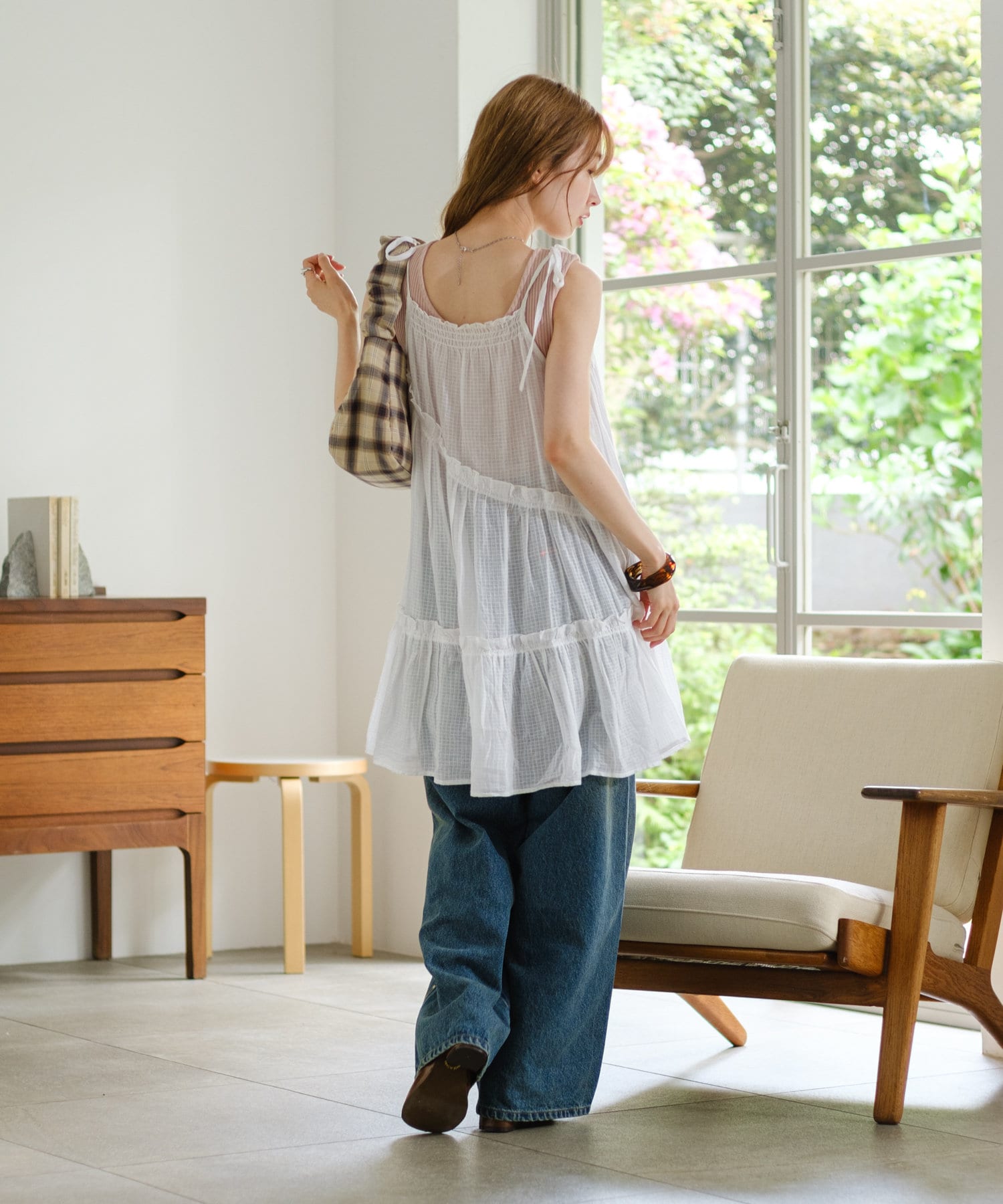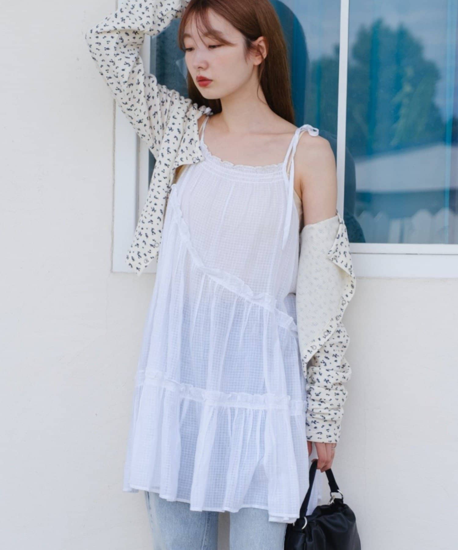 購入場所:店舗透け感◎!まさに探し求めていたチュニックでした!肩紐で長さの調節ができるのもとってもいいなと思っています。合わせるアイテム次第でガーリーにもカジュアルにもなるのが個人的なお気に入りポイントです♡