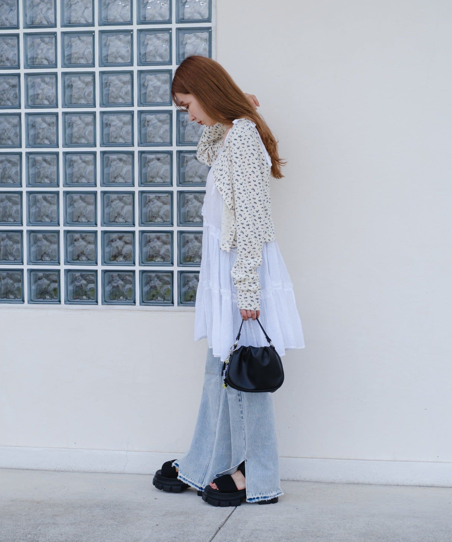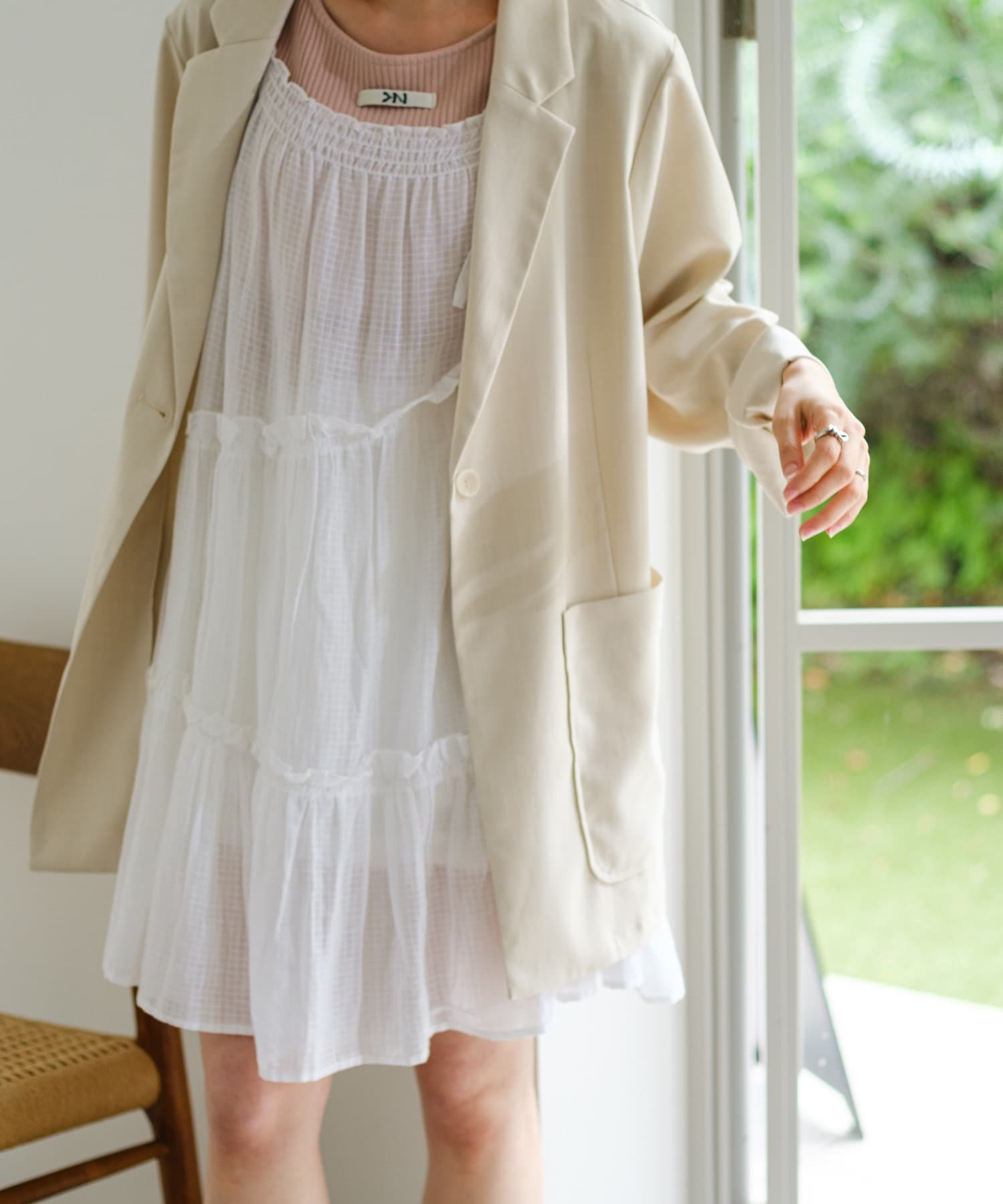 ふわふわのフリフリ、中は長袖からタンクトップまで何にでも合うこと間違いなし。
