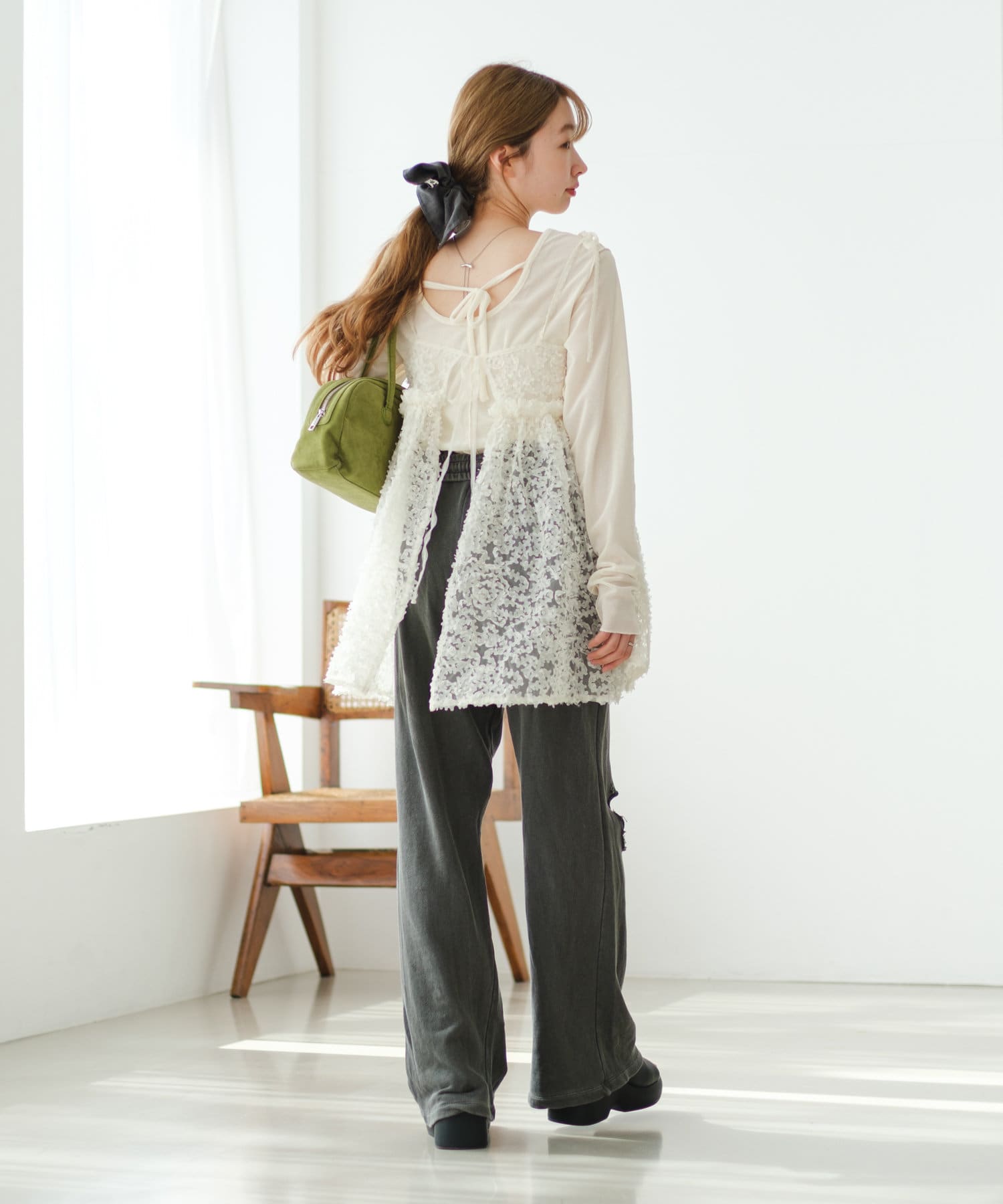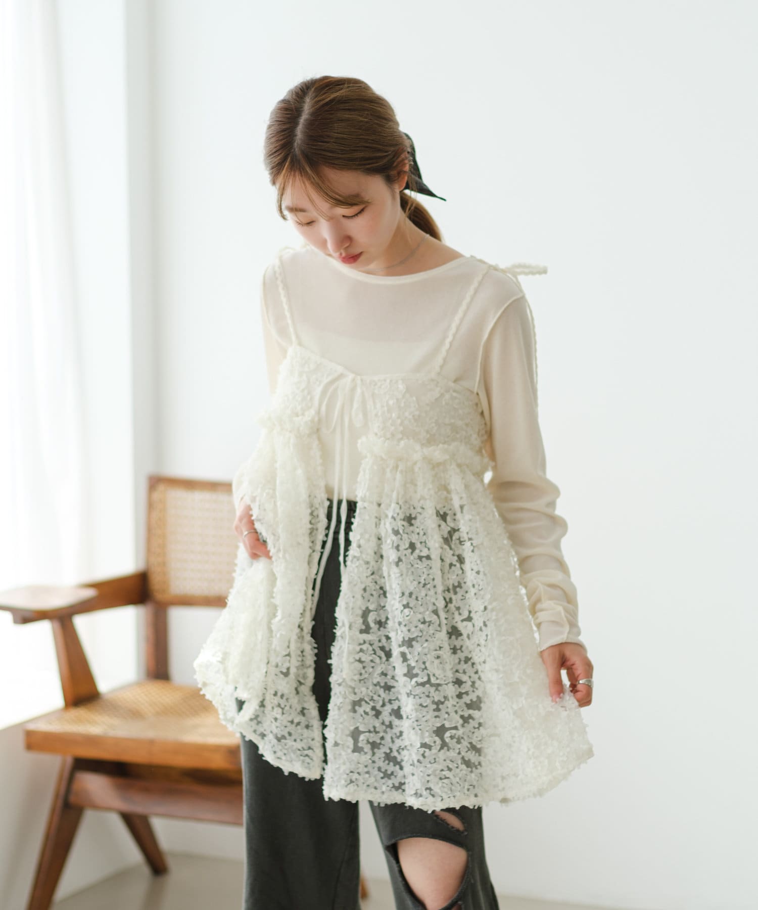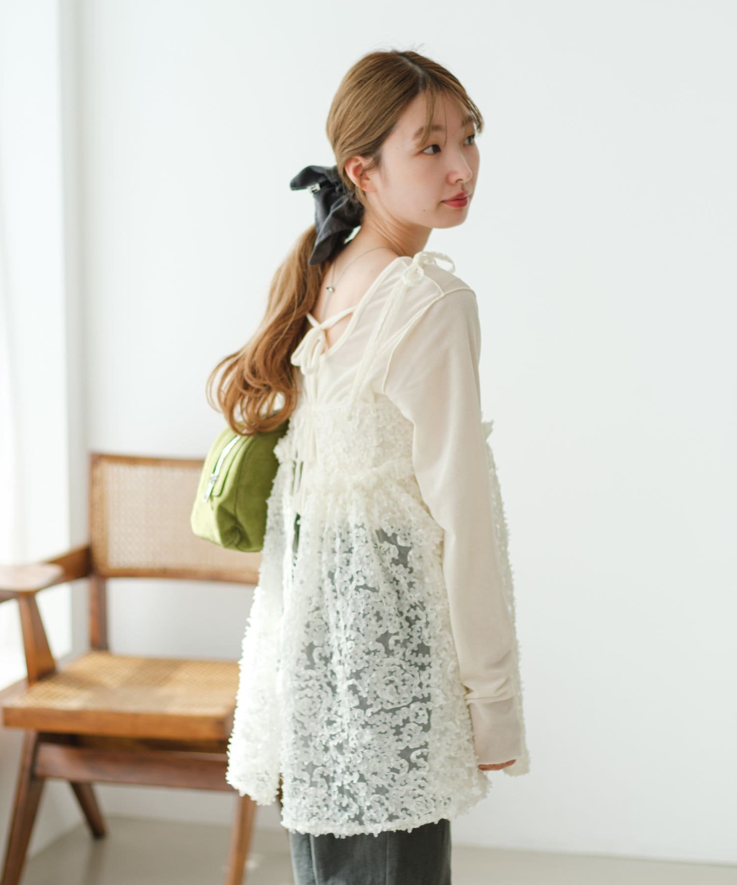 【前後2WAY】ウェーブ刺繍チュールチュニック