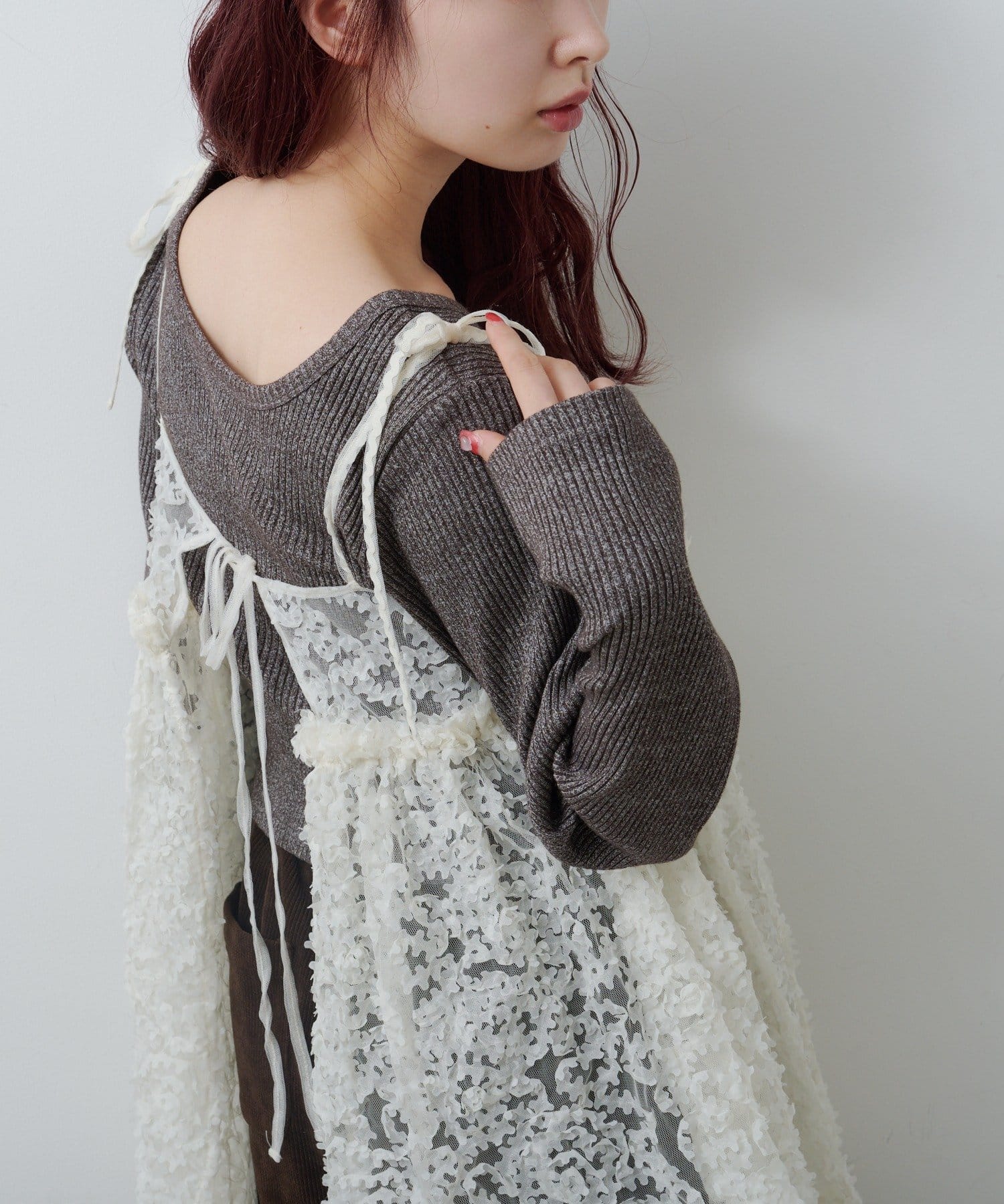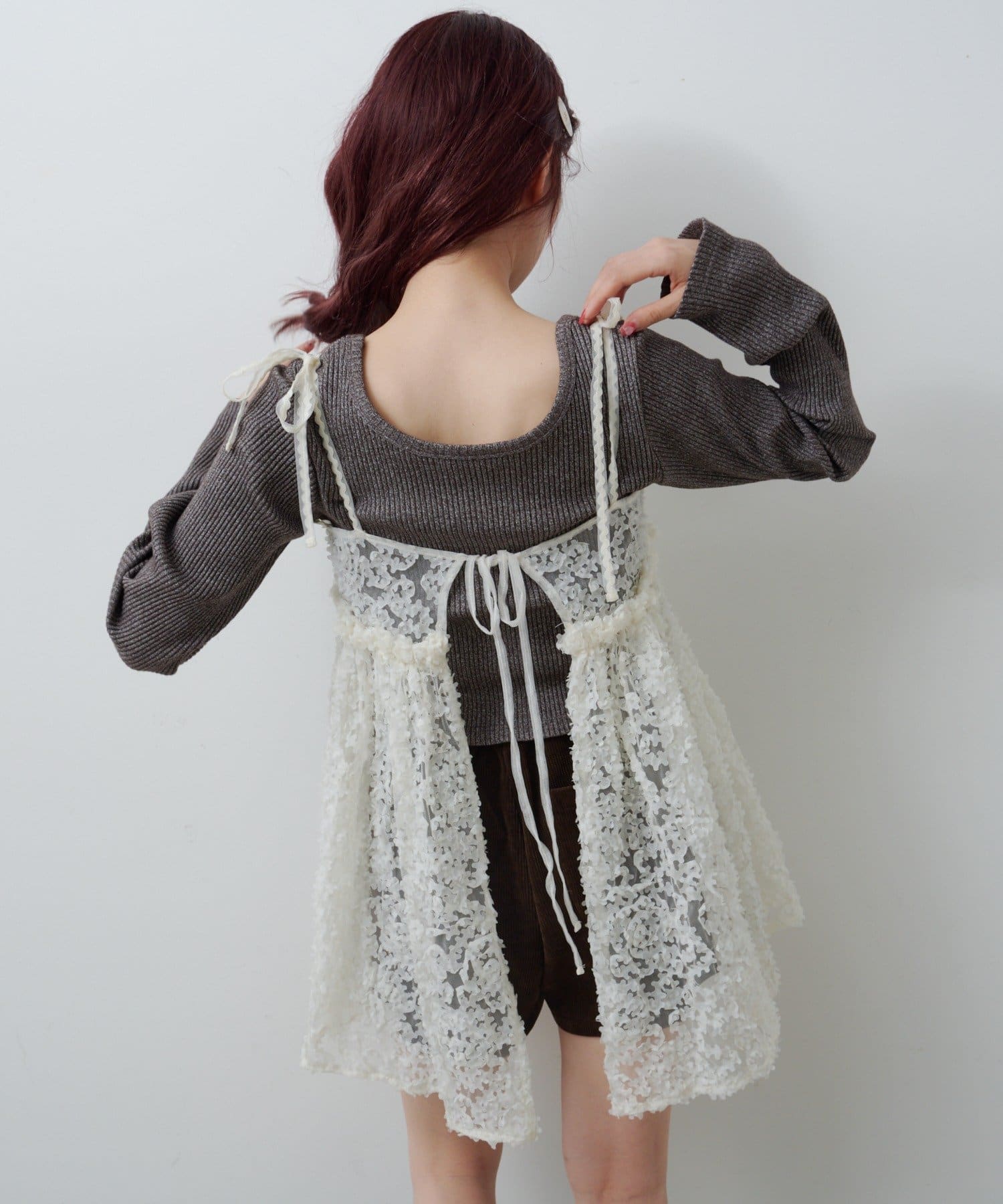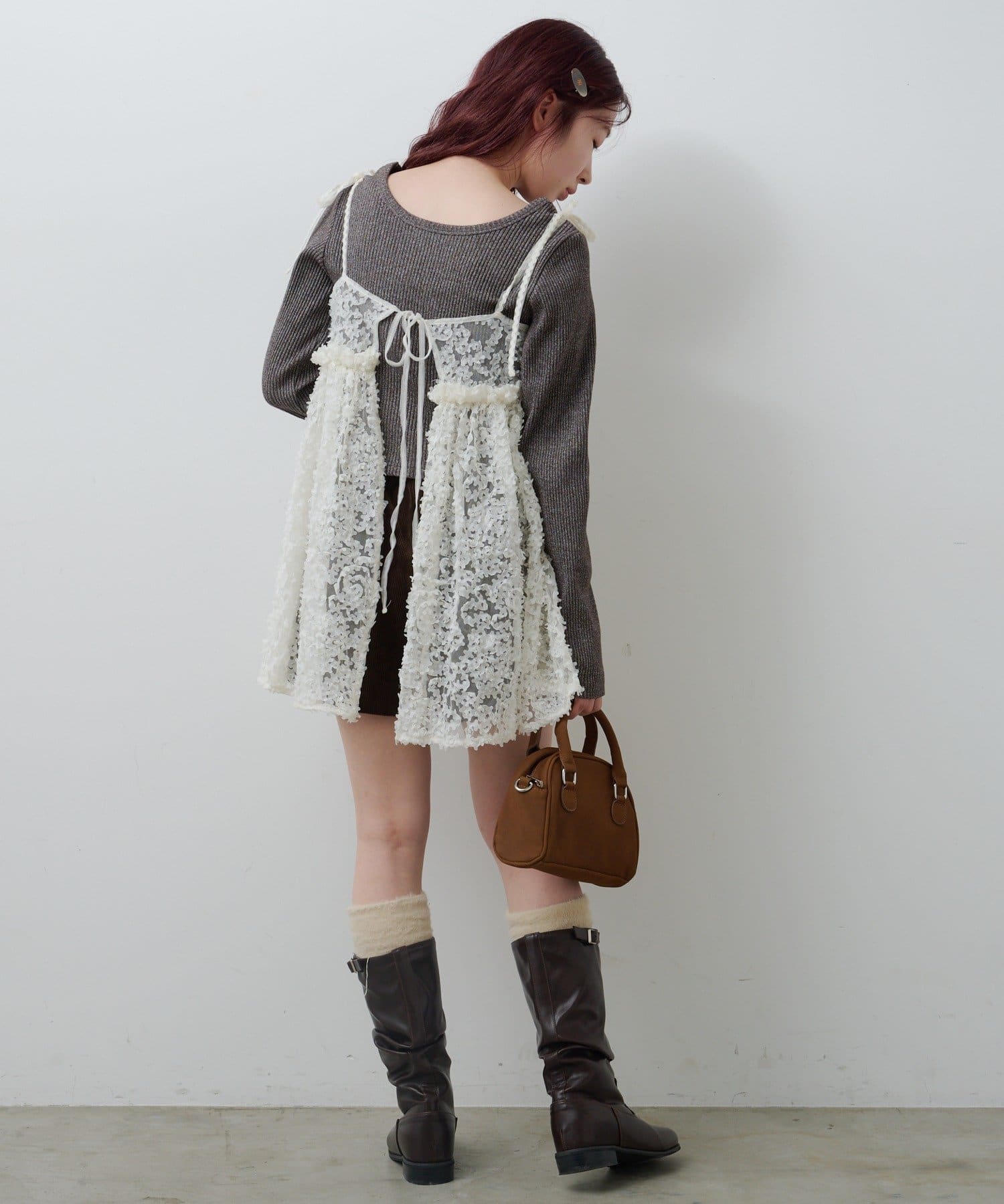 【前後2WAY】ウェーブ刺繍チュールチュニック