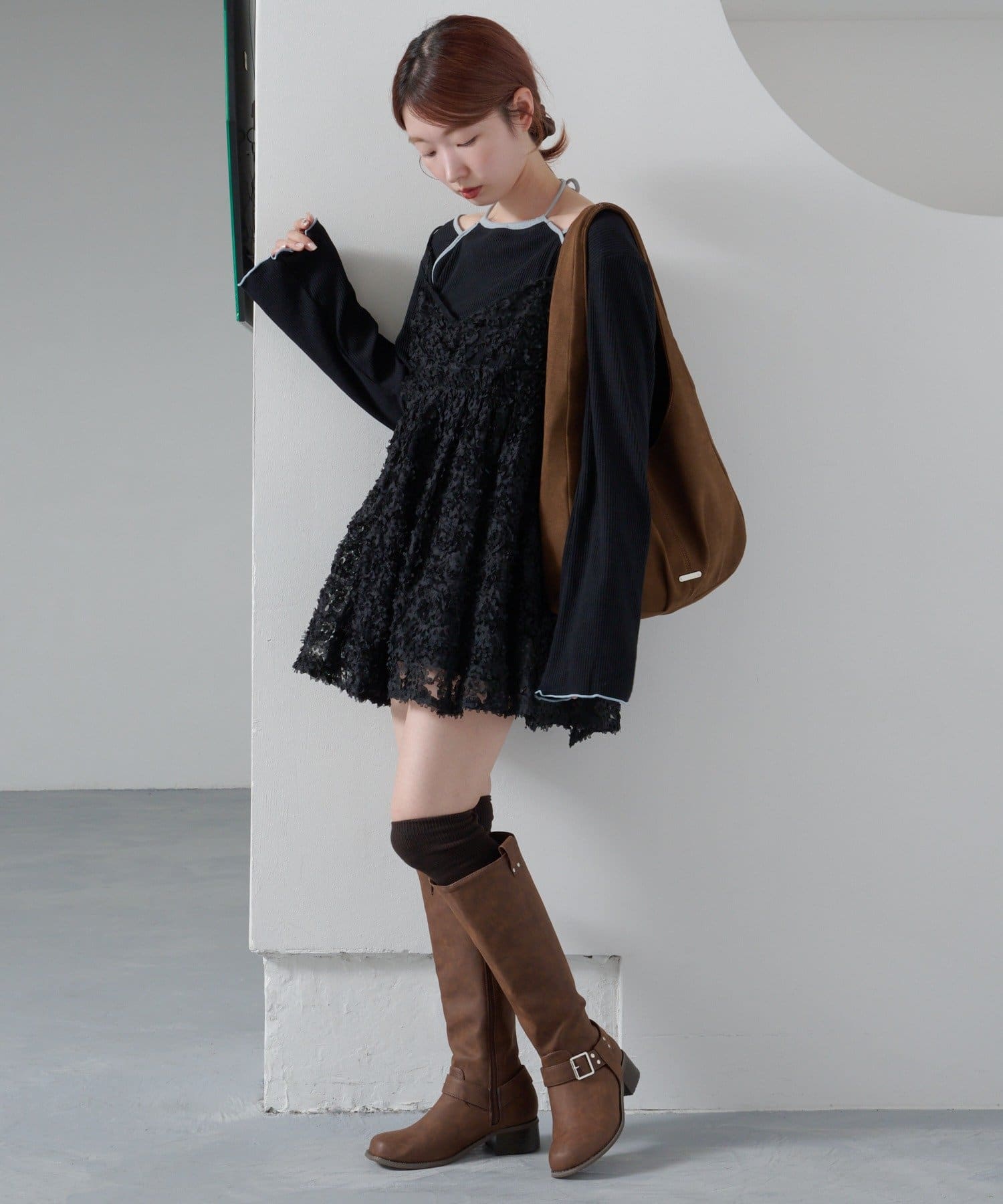インナーは、コンパクトなトップスや短丈カーディガンを合わせていただくと、今年らしいスタイリングに。