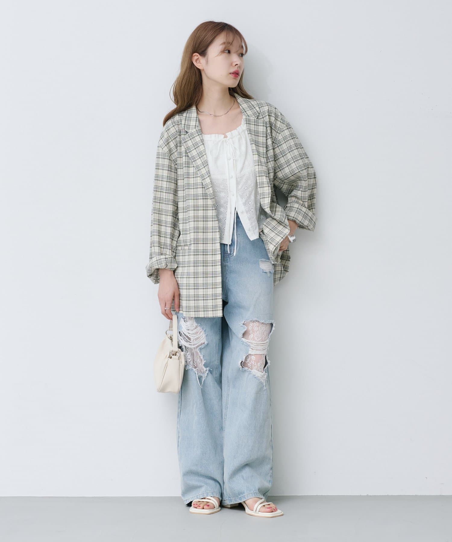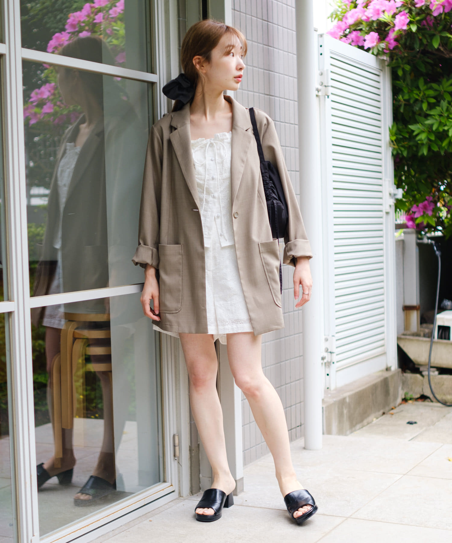 同生地のパンツと合わせてセットアップで着るのはもちろん、