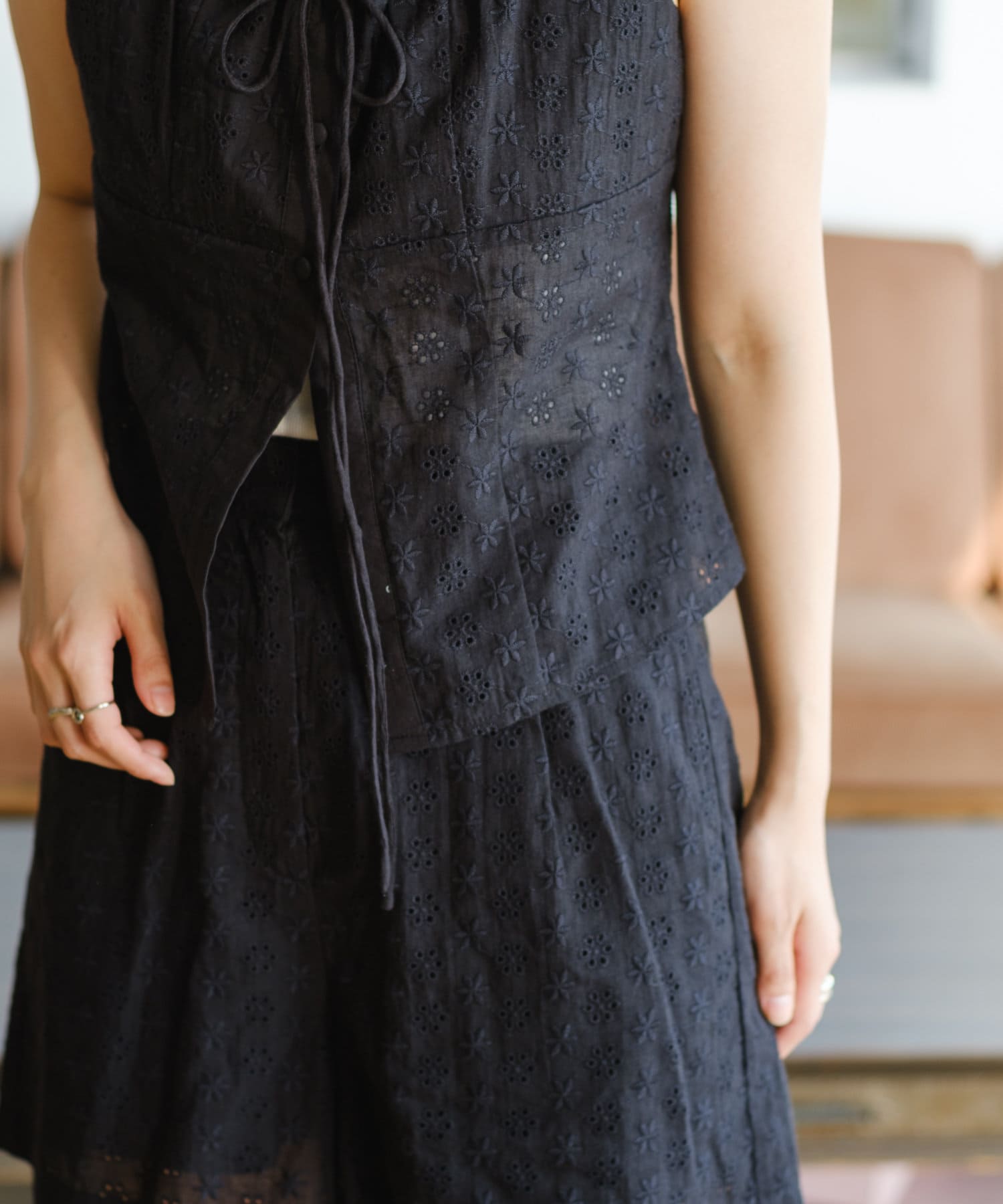 重ね着でも一枚着でも楽しめるコットンレースビスチェ