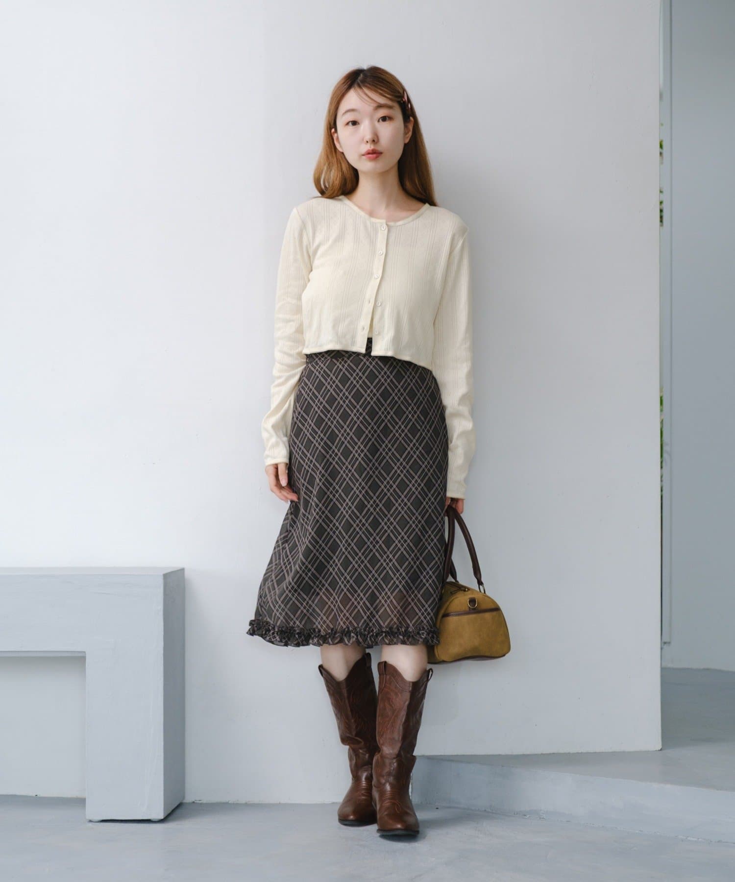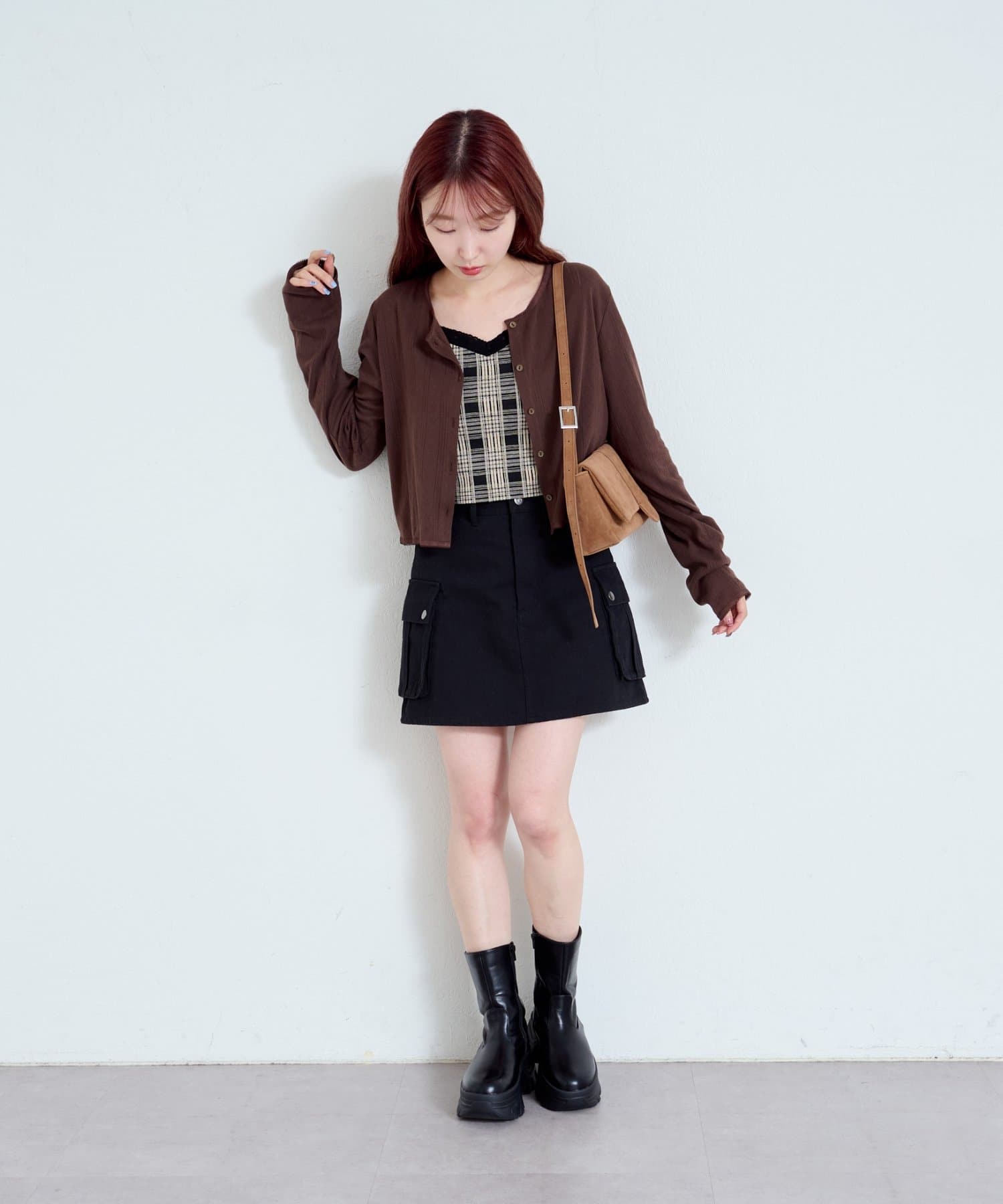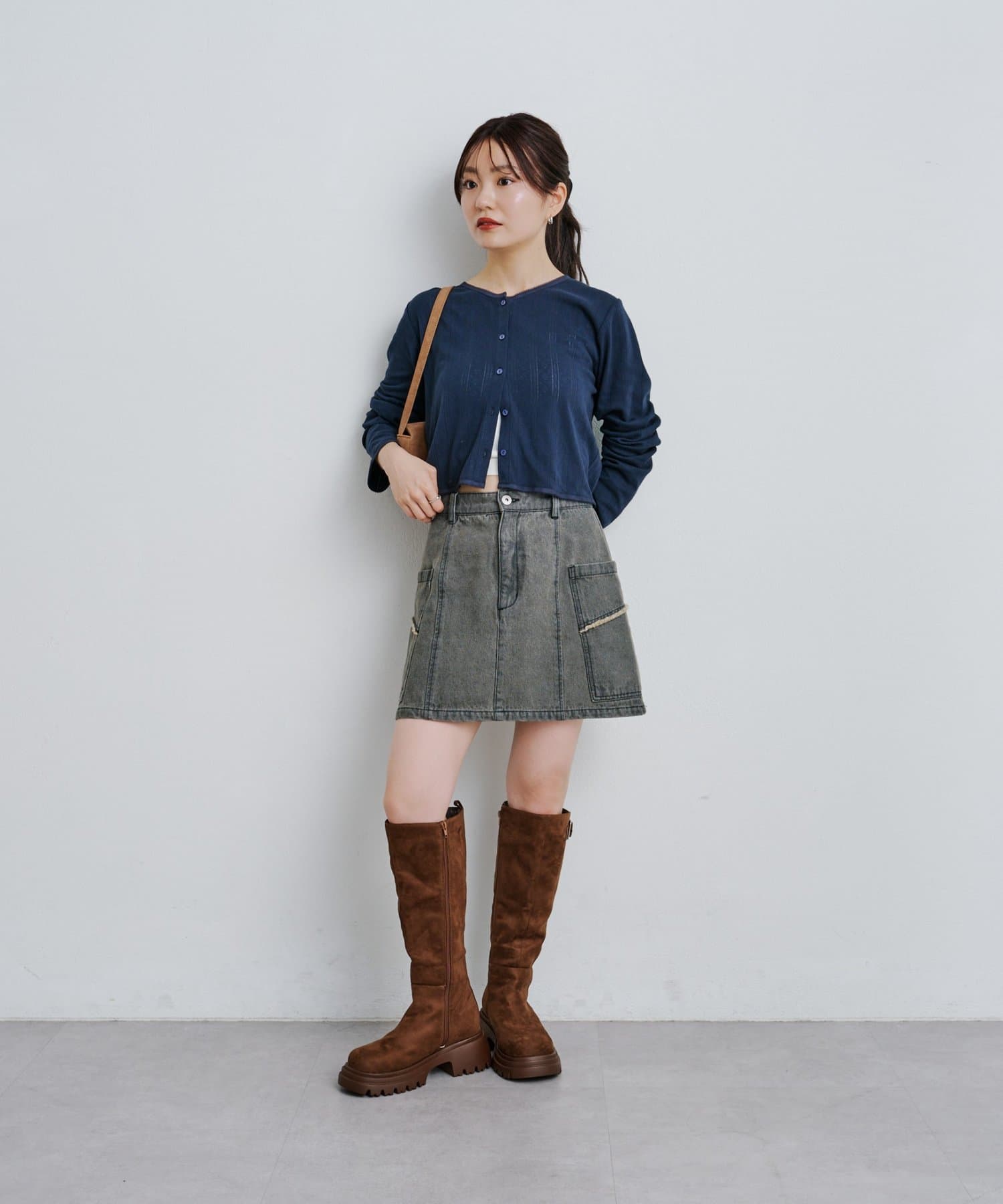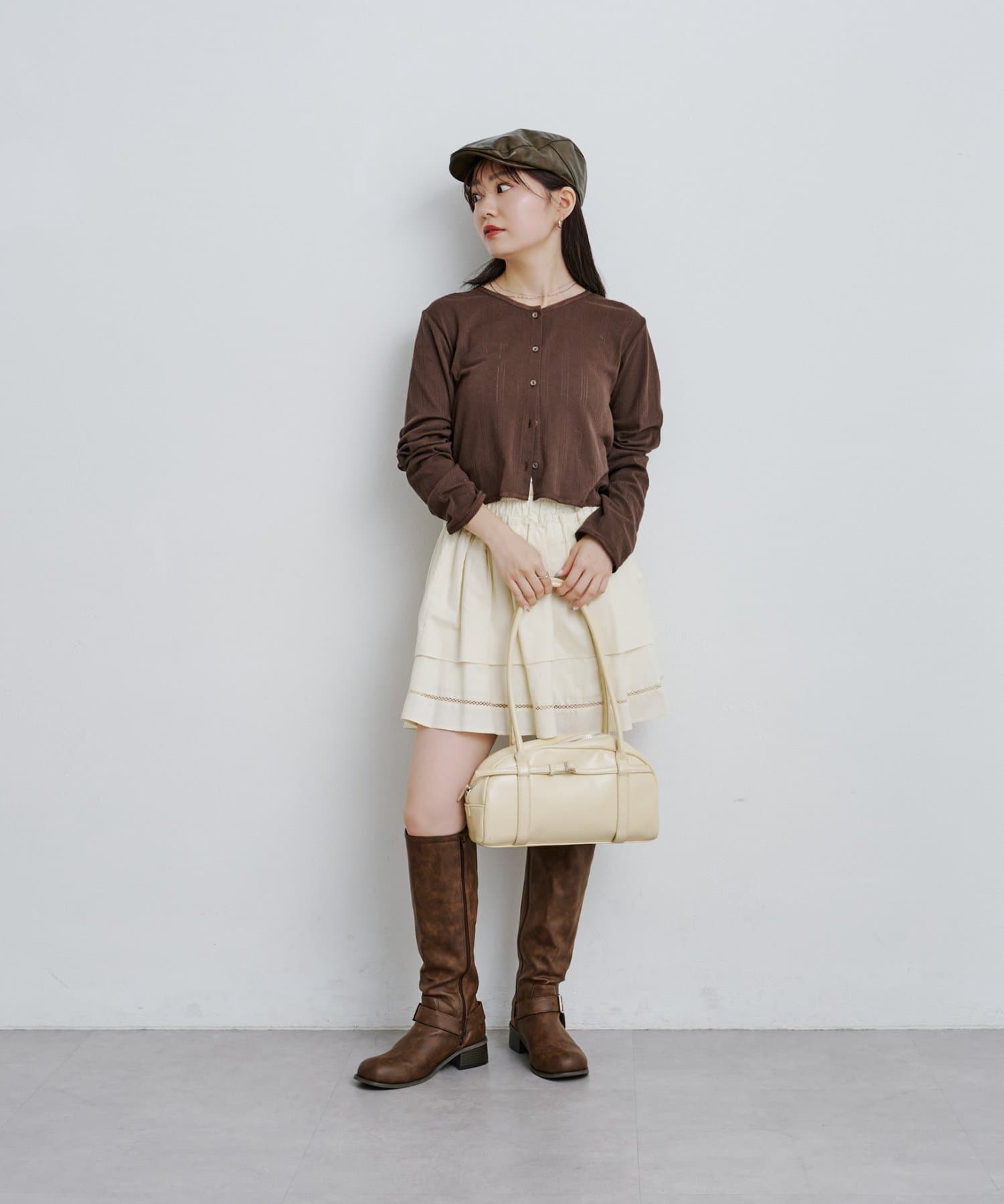 短丈デザインは、ハイウエストボトムとの相性が良く、チュニックに羽織っていただくと今年らしいスタイリングが完成します。