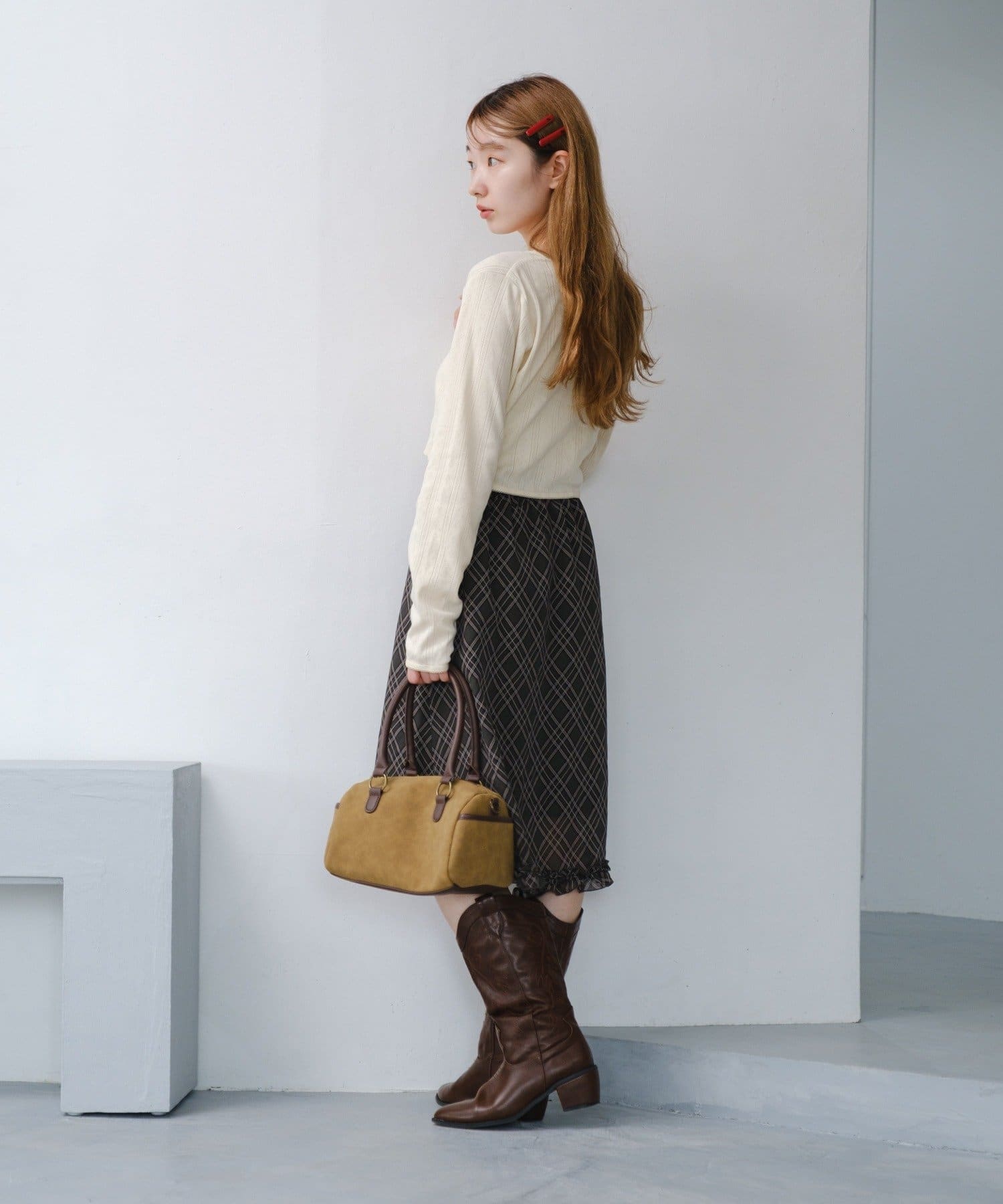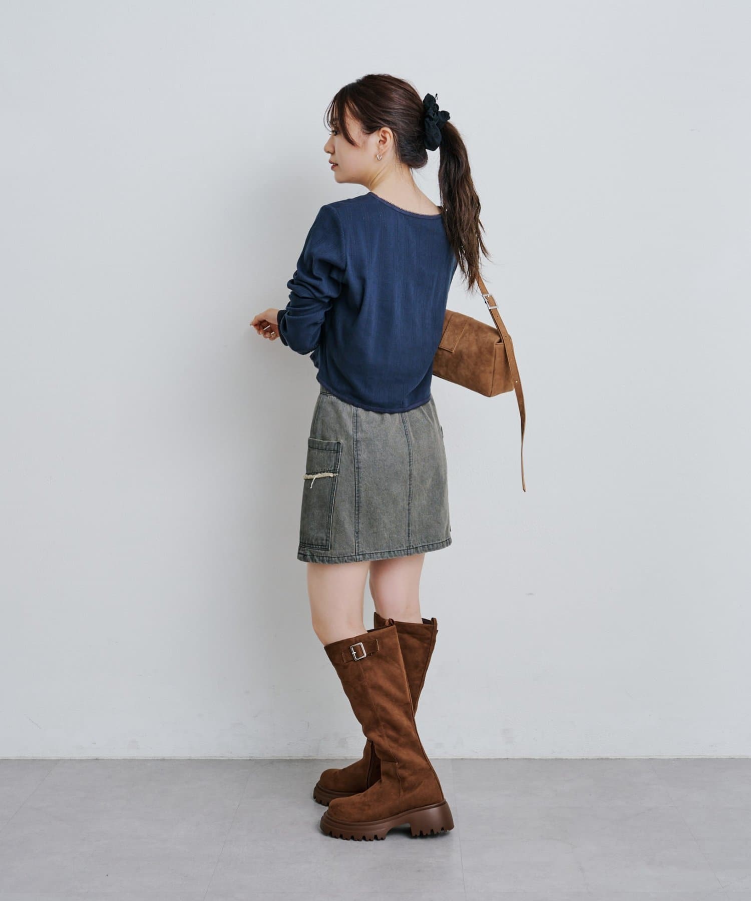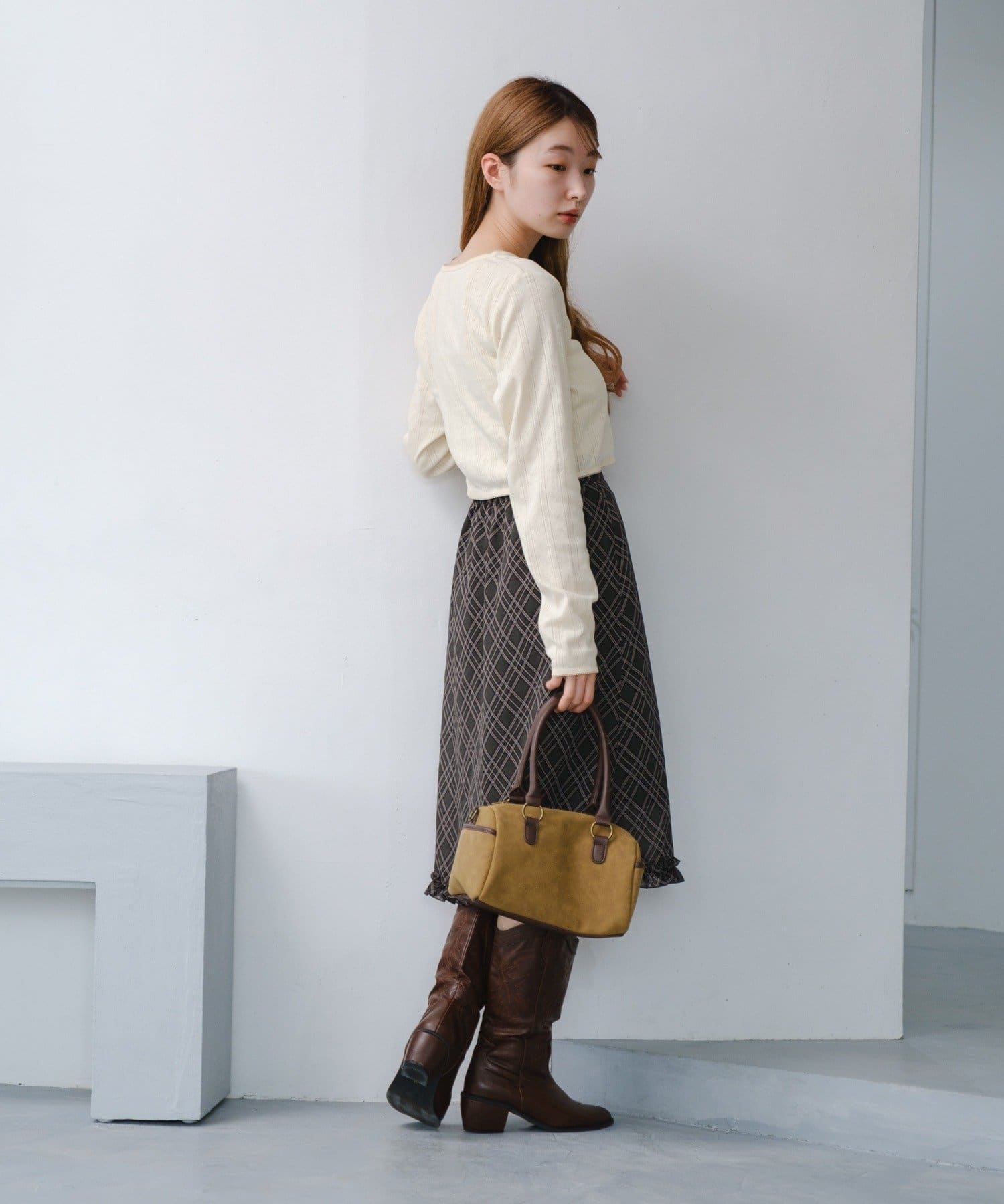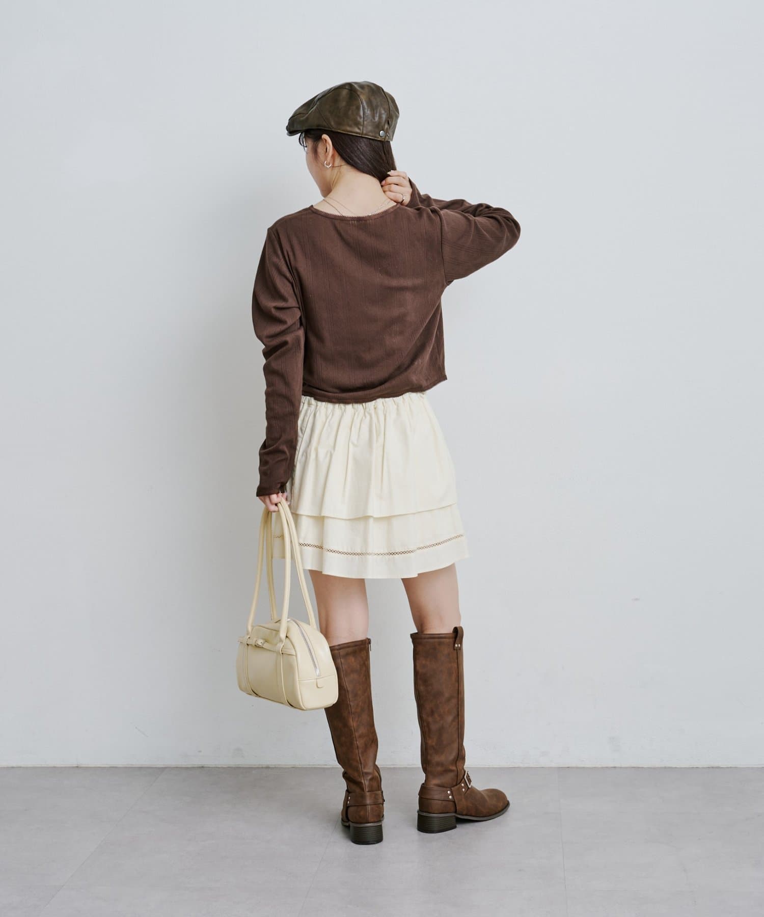 短丈デザインは、ハイウエストボトムとの相性が良く、チュニックに羽織っていただくと今年らしいスタイリングが完成します。