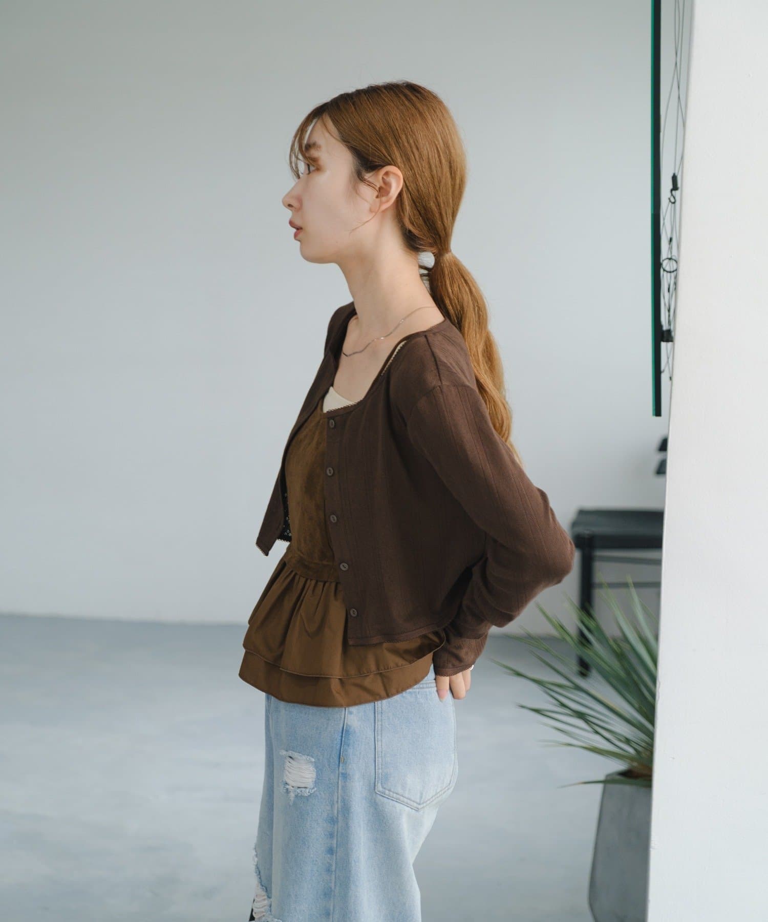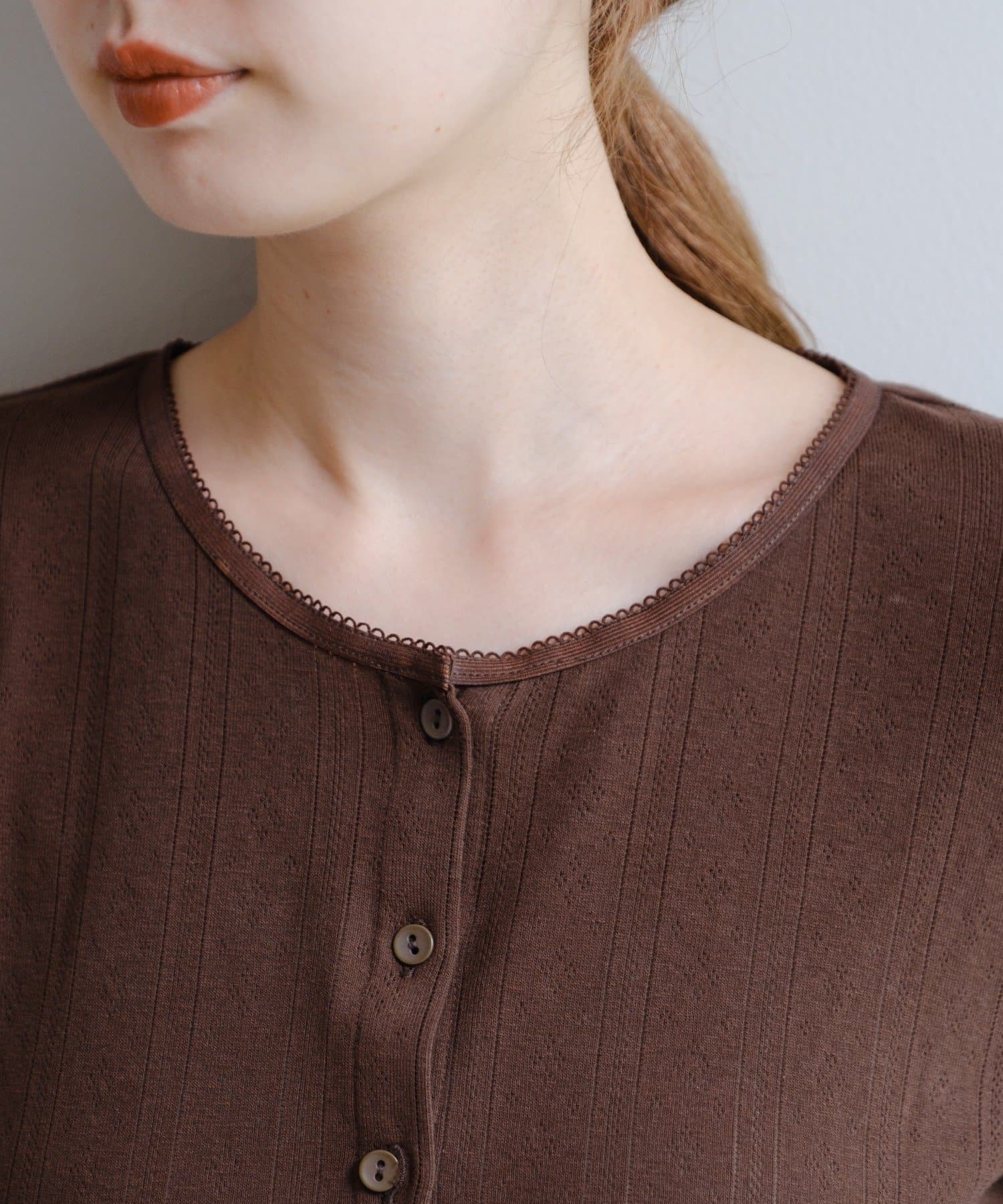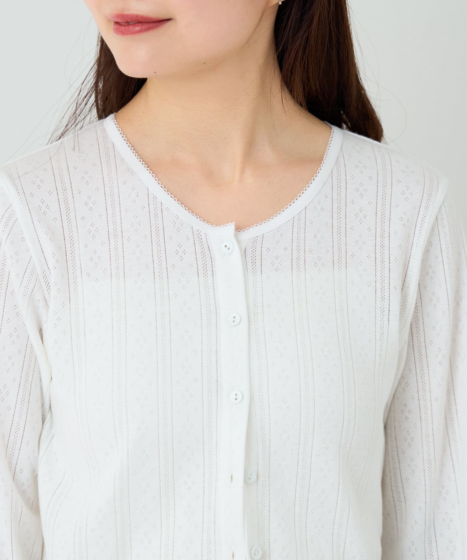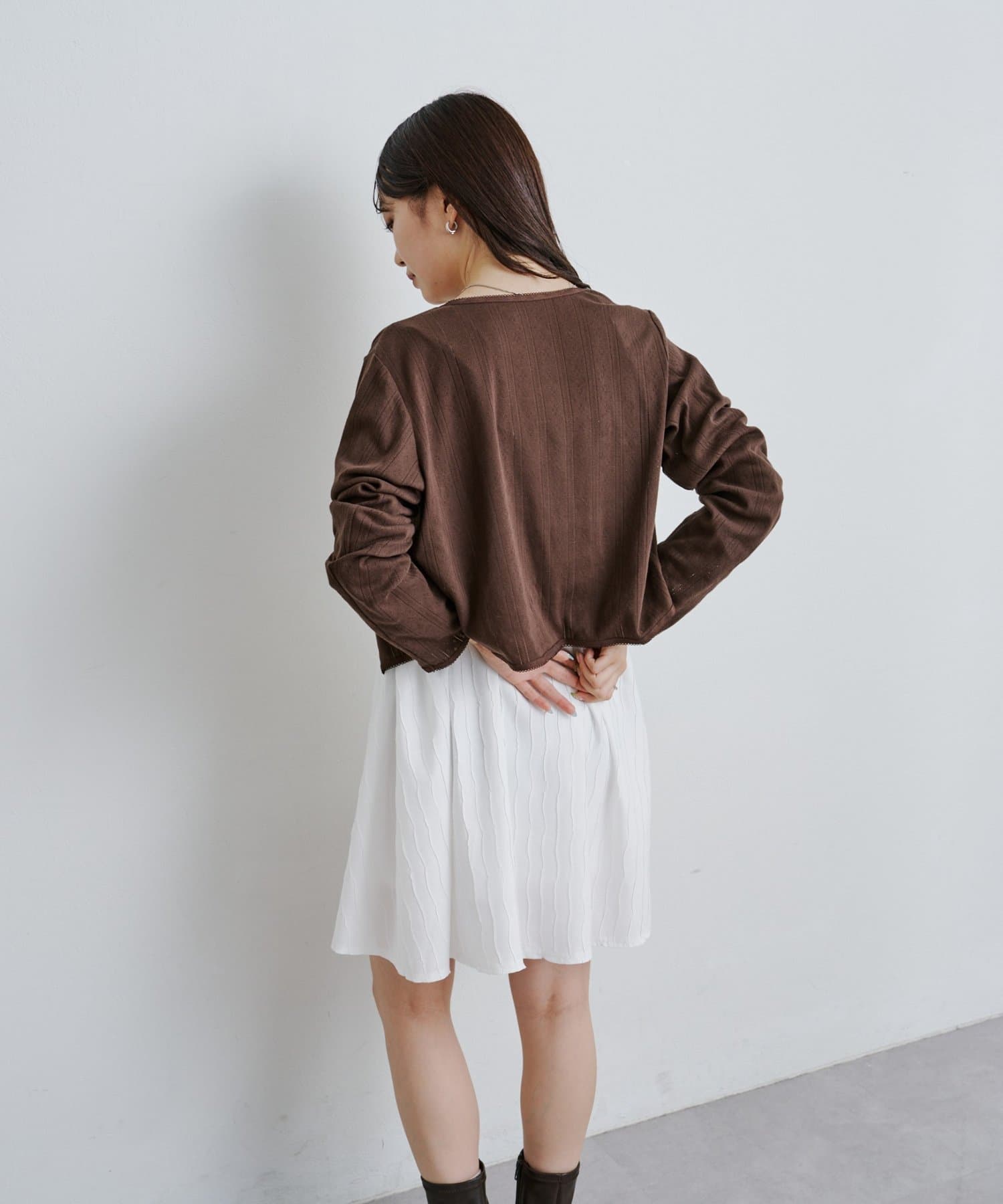 ボタンを開けて前開きのカーディガンとしても、ボタンを閉じて一枚着トップス風にもお使いいただけます。