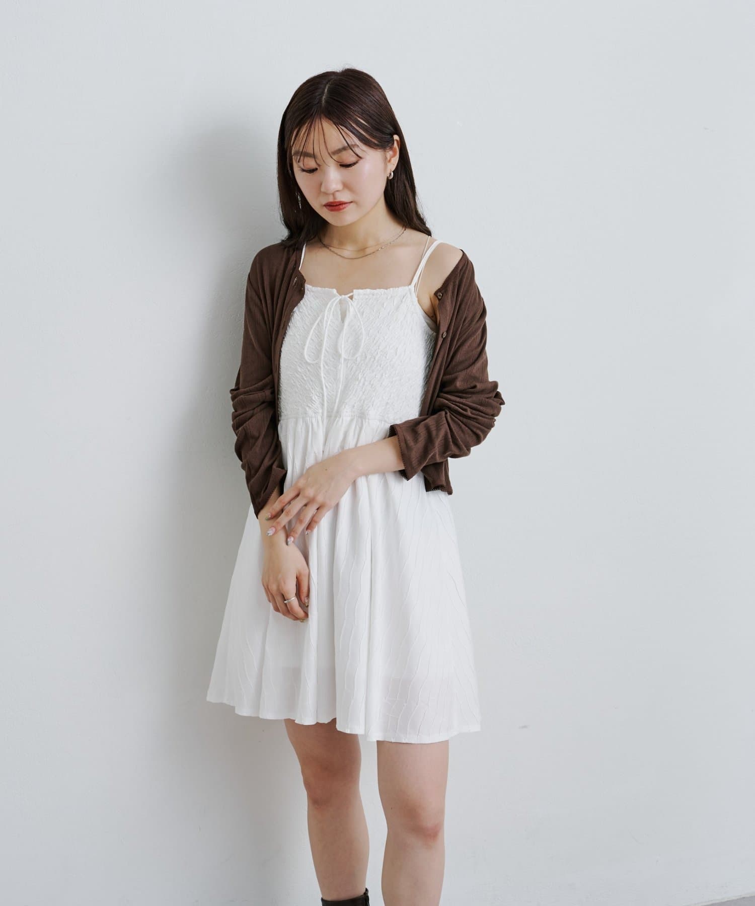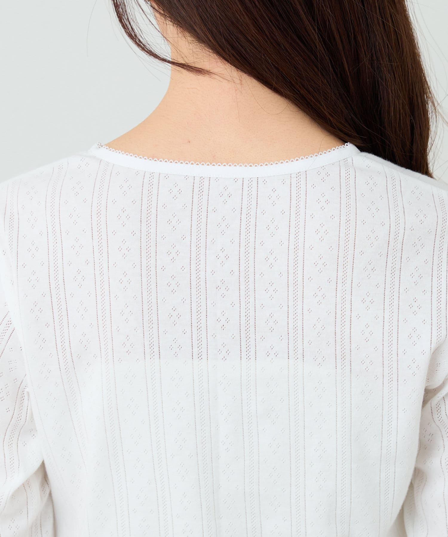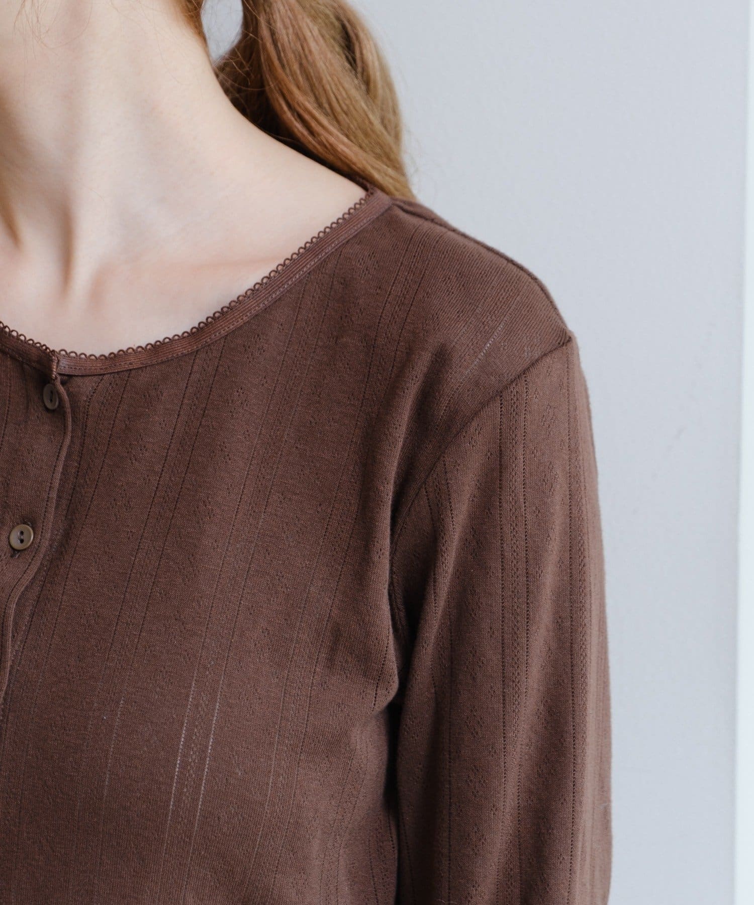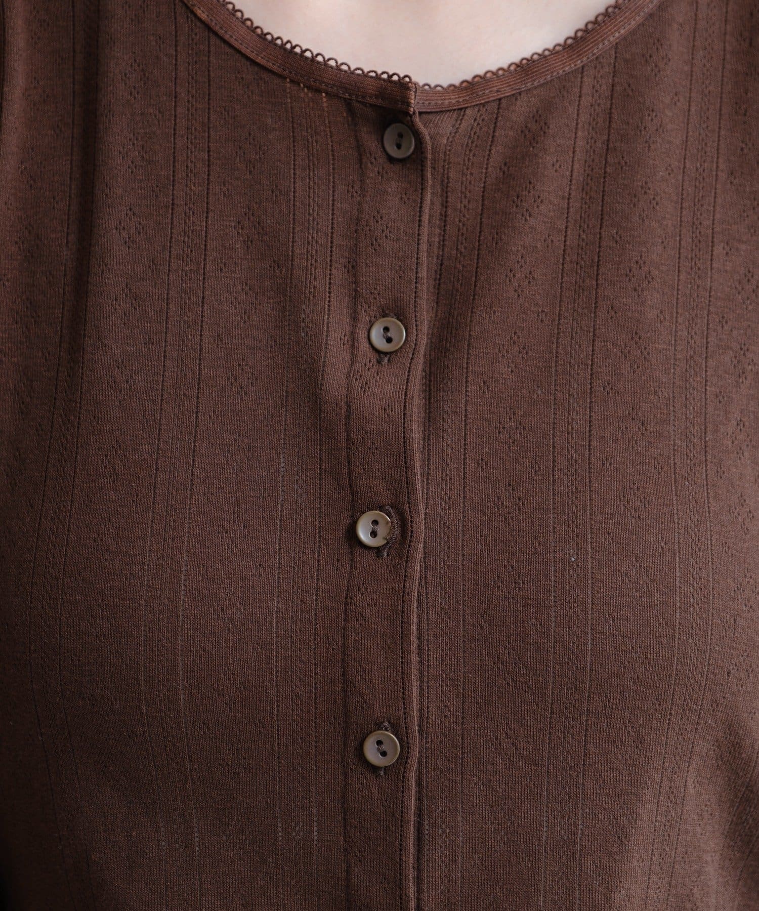 ボタンを開けて前開きのカーディガンとしても、ボタンを閉じて一枚着トップス風にもお使いいただけます。