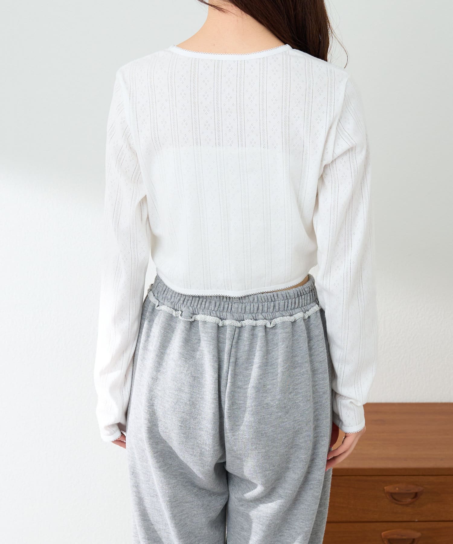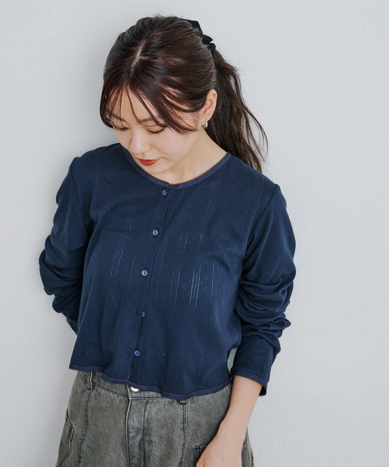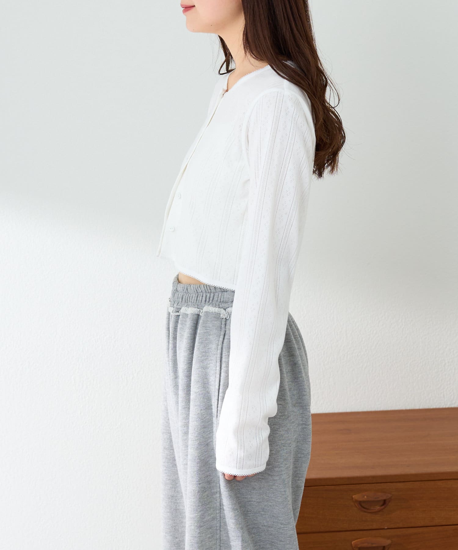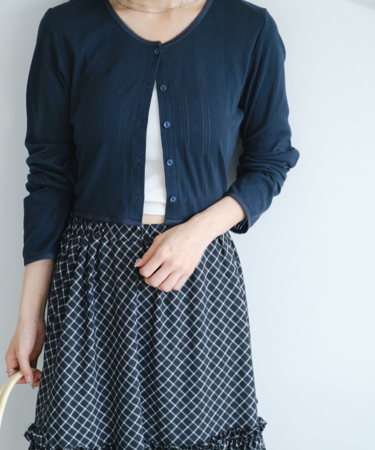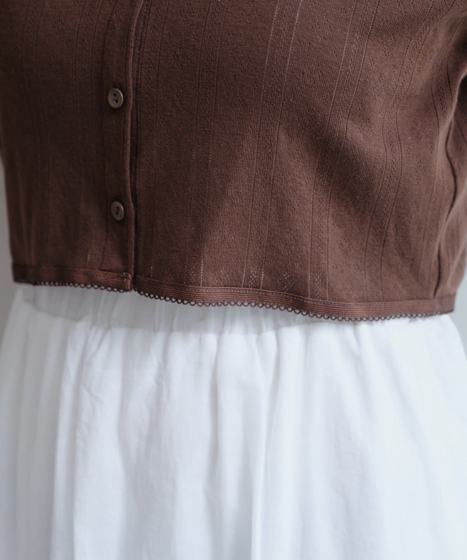 【新色追加/2サイズ展開/5色展開】コットンレースチビカーディガン