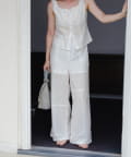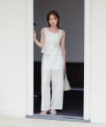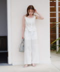 同素材のビスチェとセットアップでの着こなしがおススメ。