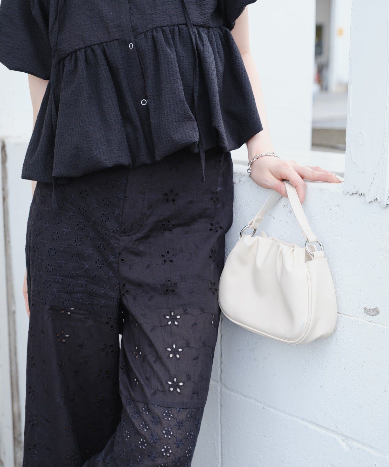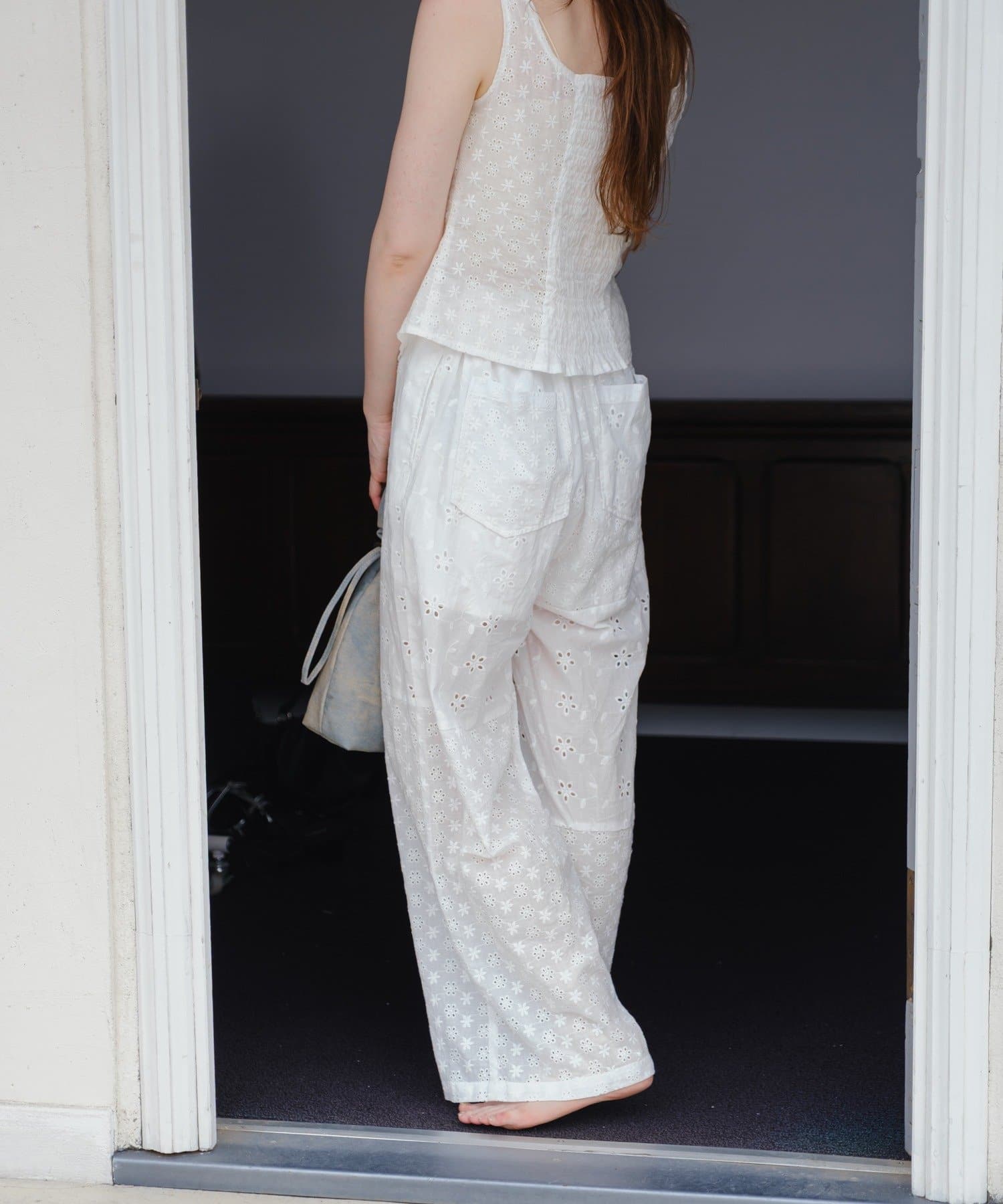 程よく広がるワイドシルエットで、動くたびにふんわりと風をまとう軽やかさが魅力です。