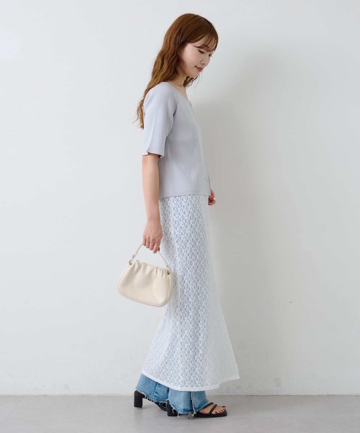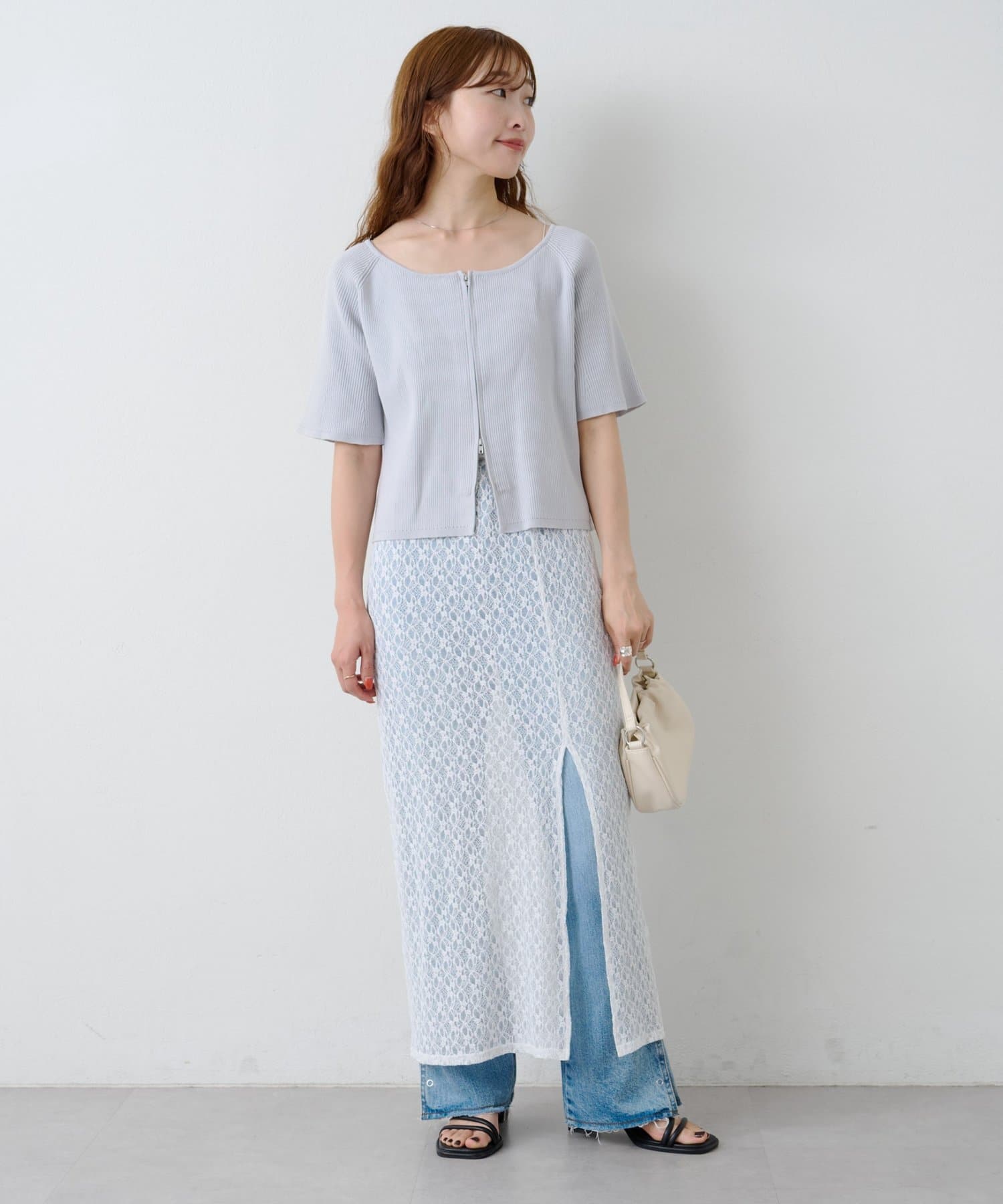 裏地付きで安心感がありながら、程よい透け感で抜けのあるスタイリングに。