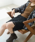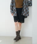 足元はブーツで甘さを引き締めて、バランスのとれたスタイルに。