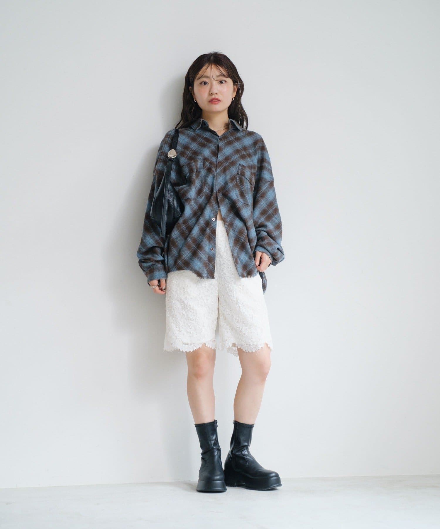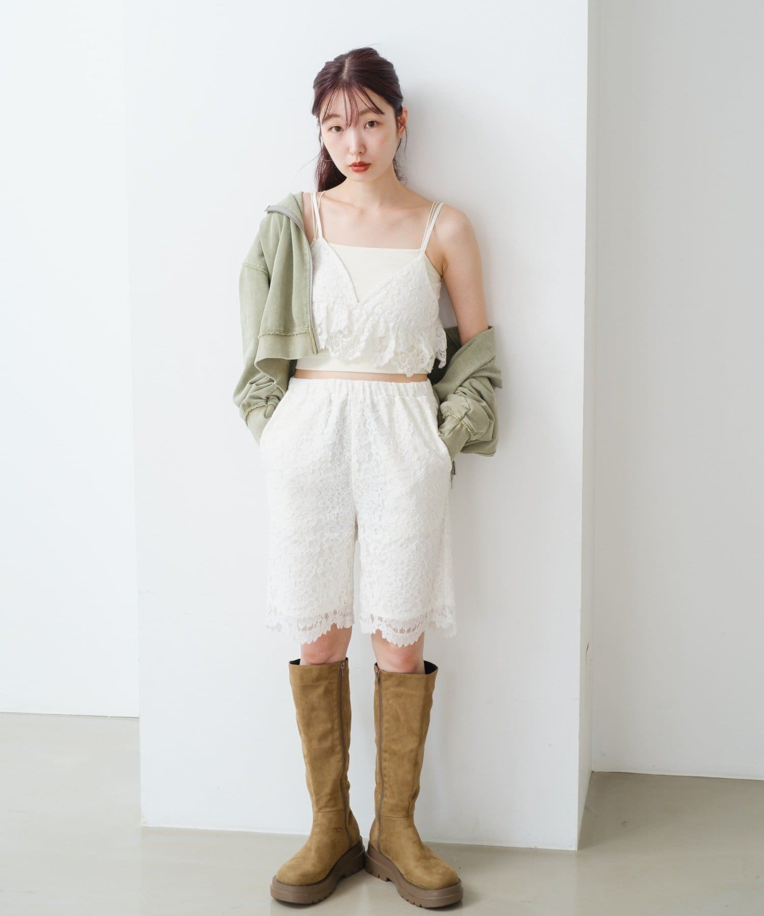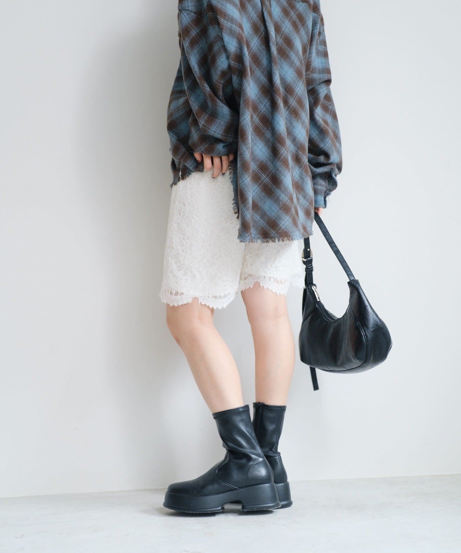 繊細レースで魅せる、大人フェミニンなバイカーパンツ