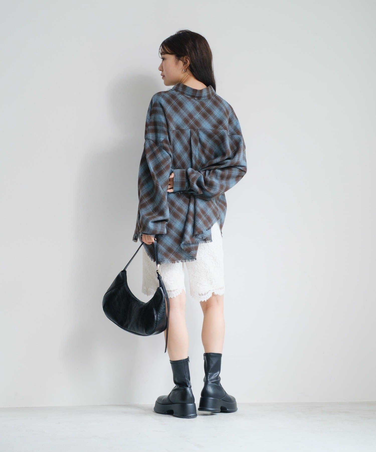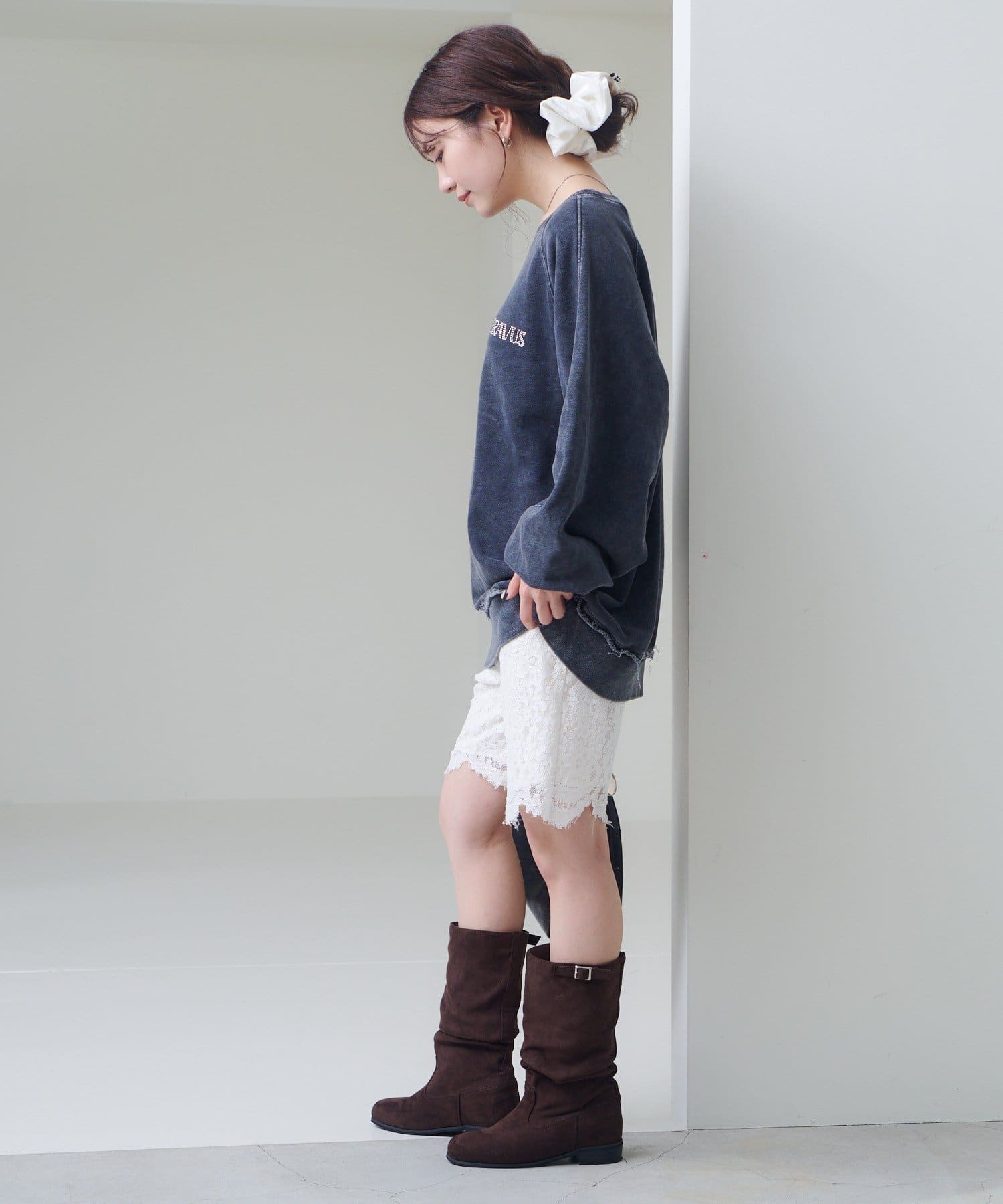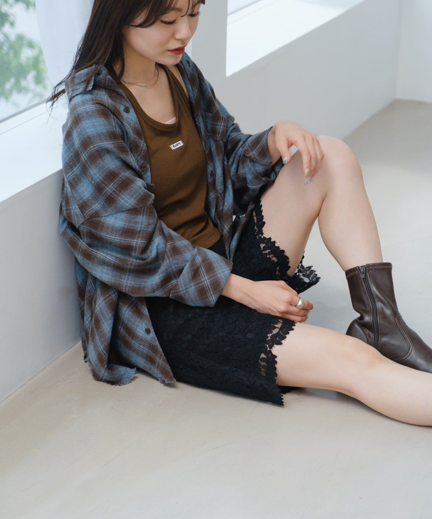 繊細レースで魅せる、大人フェミニンなバイカーパンツ