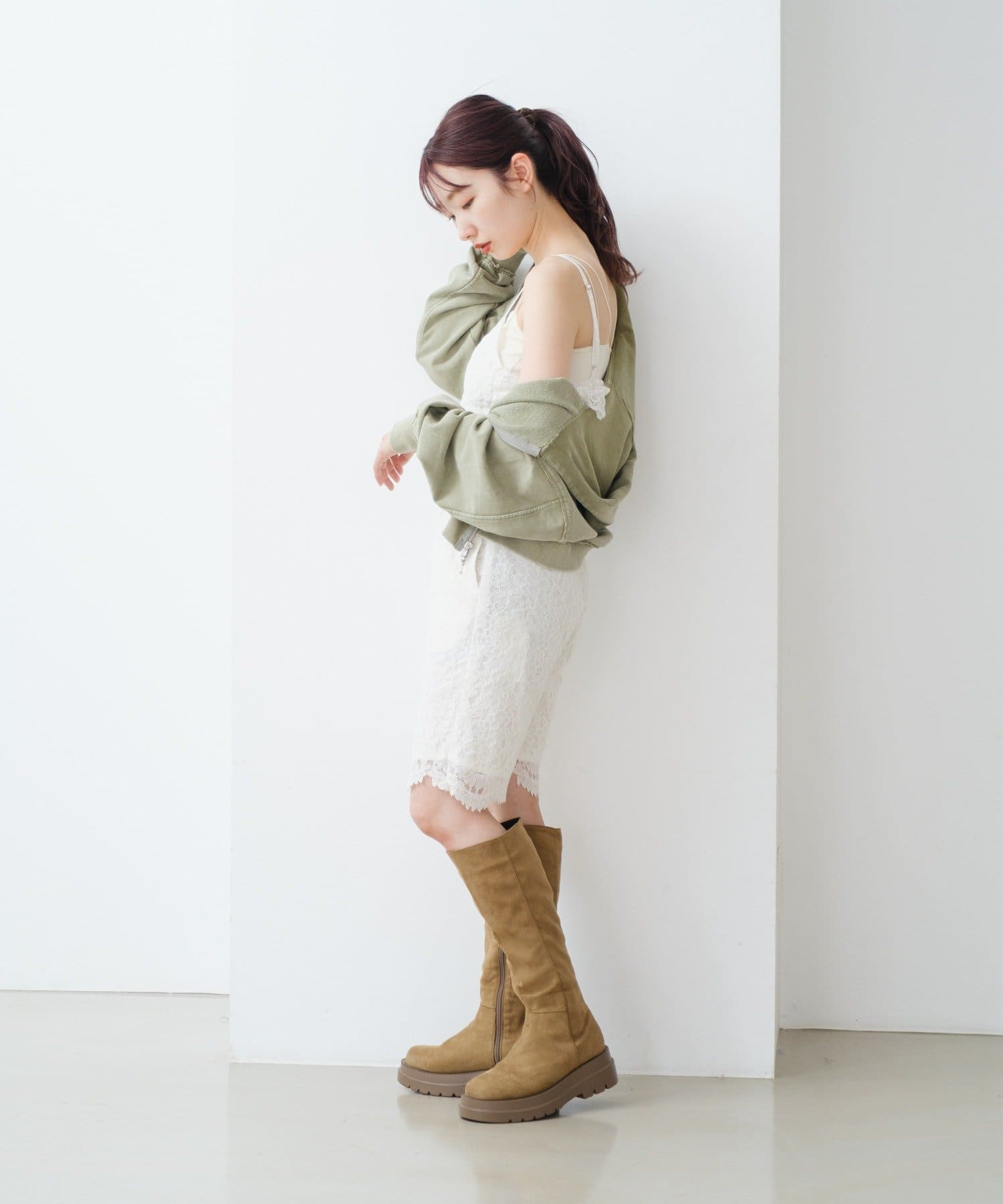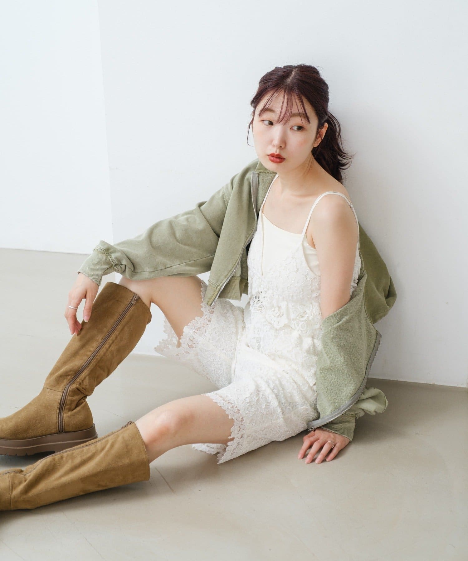 ブルゾンやジャケットと合わせて、甘辛MIXスタイルに。