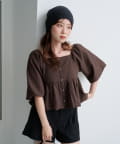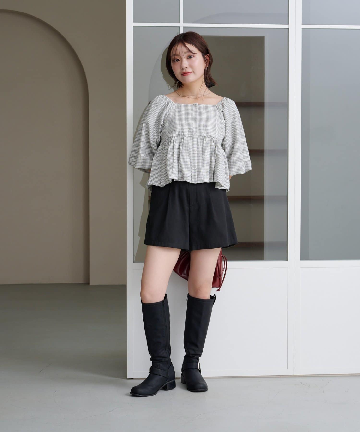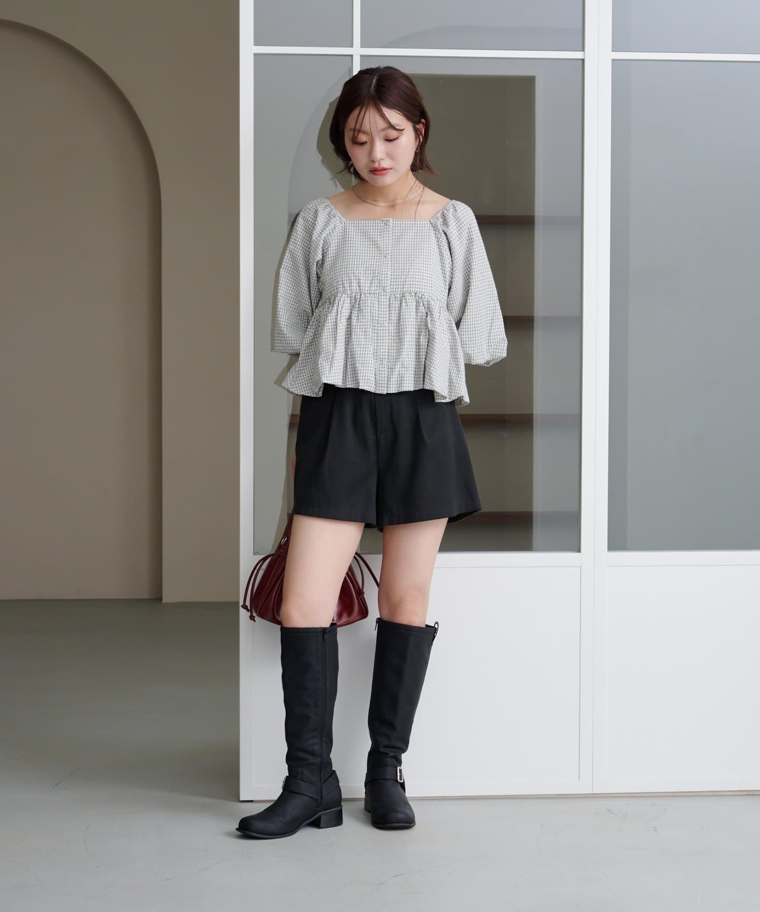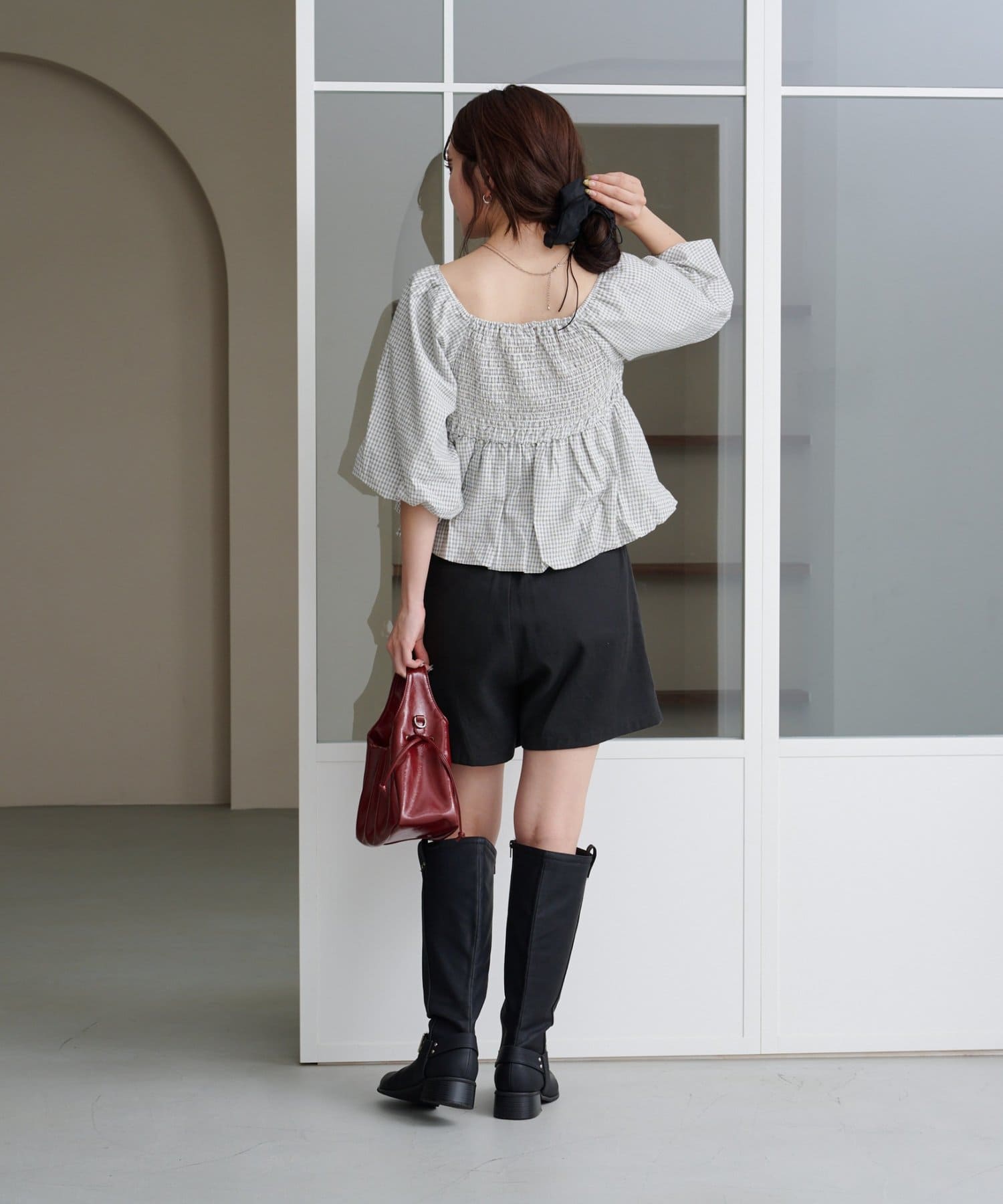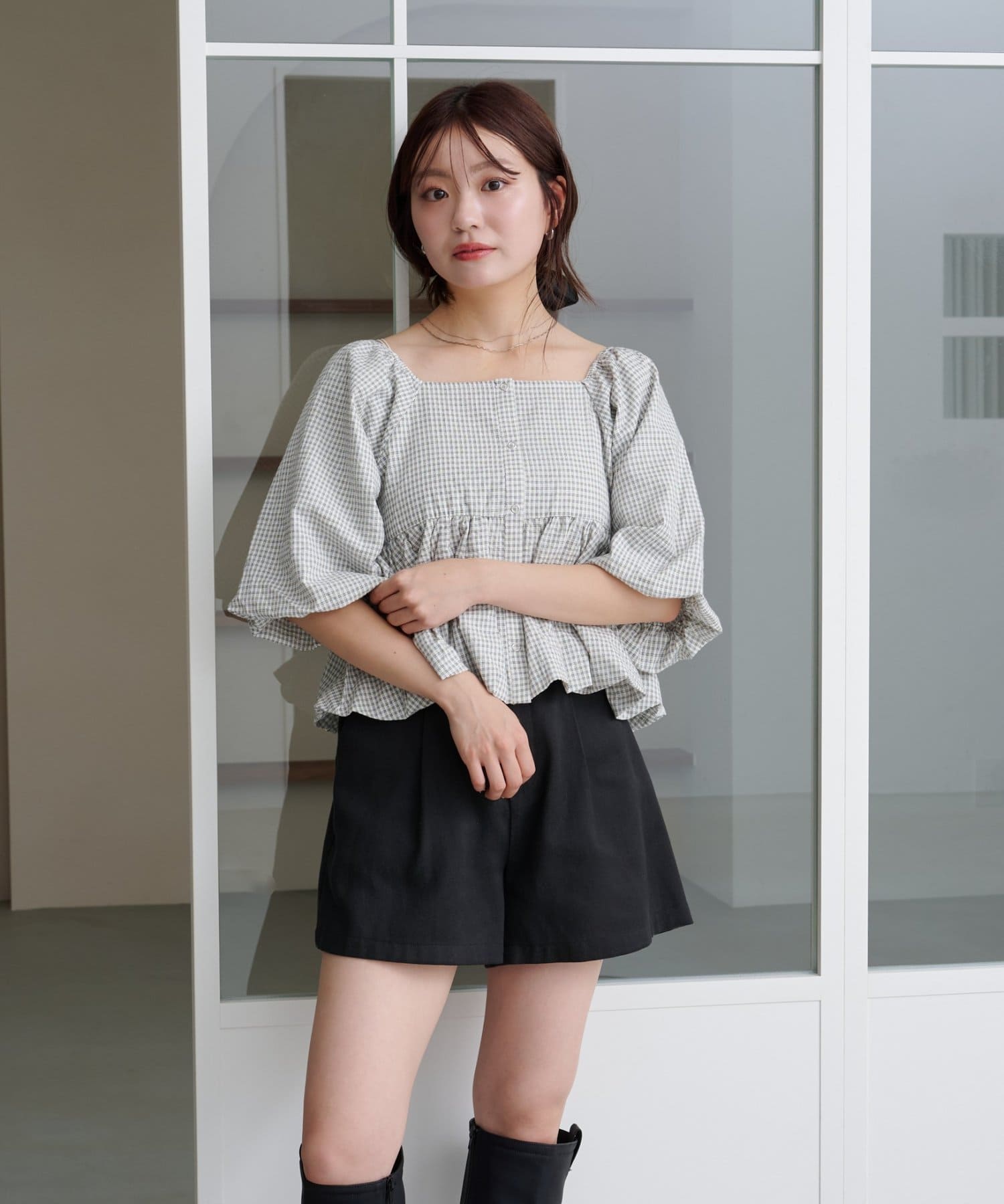 【2WAY/4色展開/無地&チェック/WEB限定カラー】バルーン七分袖ブラウス