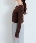 柔らかなベロアフロッキー素材を使用した、上品な微光沢が魅力のカーディガン