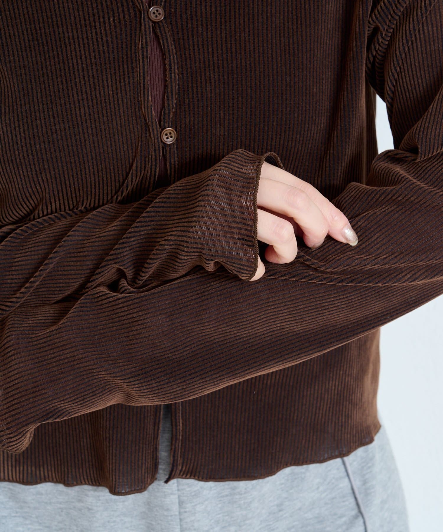 【新色追加/6色展開/2サイズ展開】ストライプベロアフロッキー2wayカーディガン