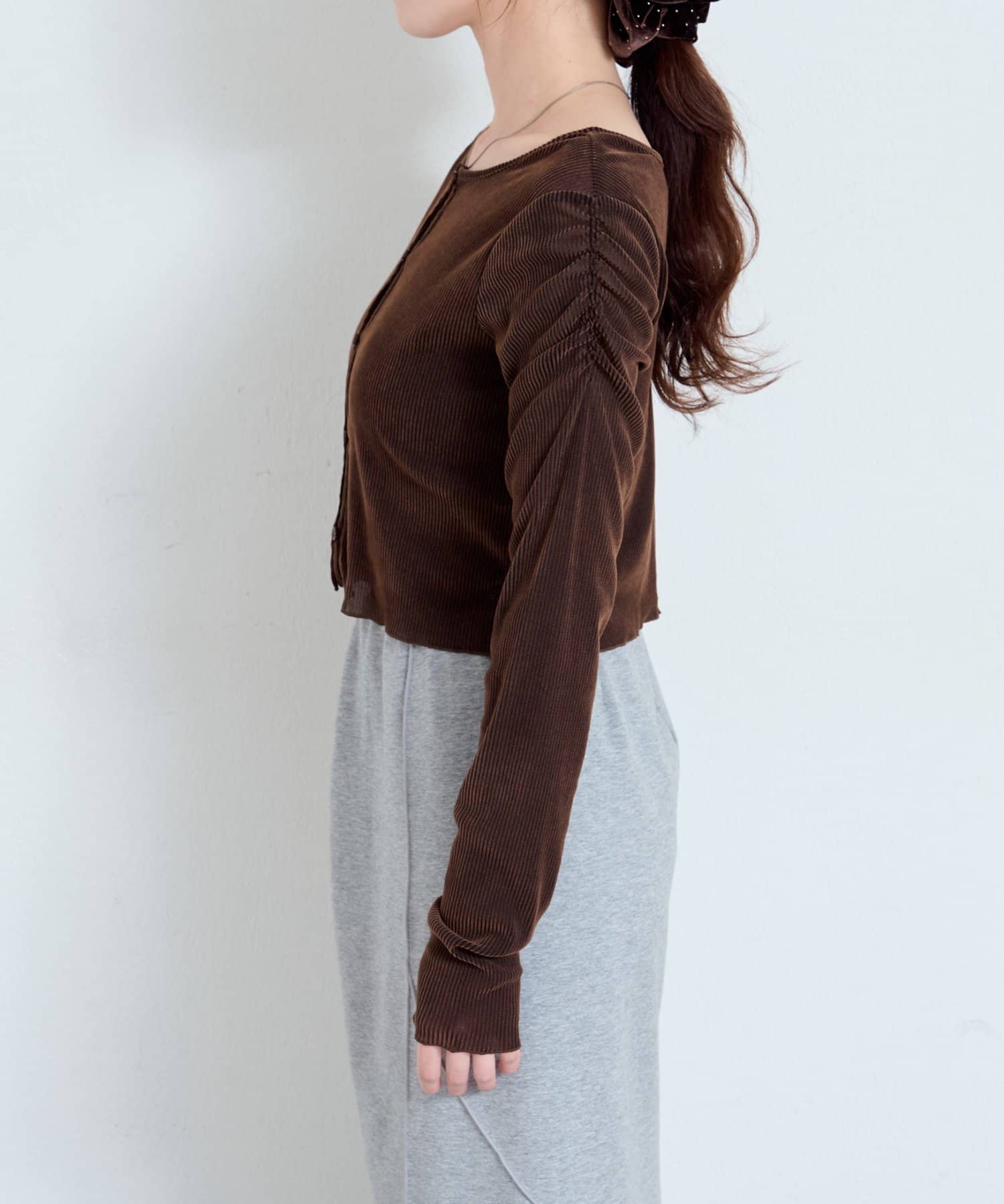 コンパクトな丈感で、ハイウエストのボトムやワンピースとのレイヤードにも好相性◎