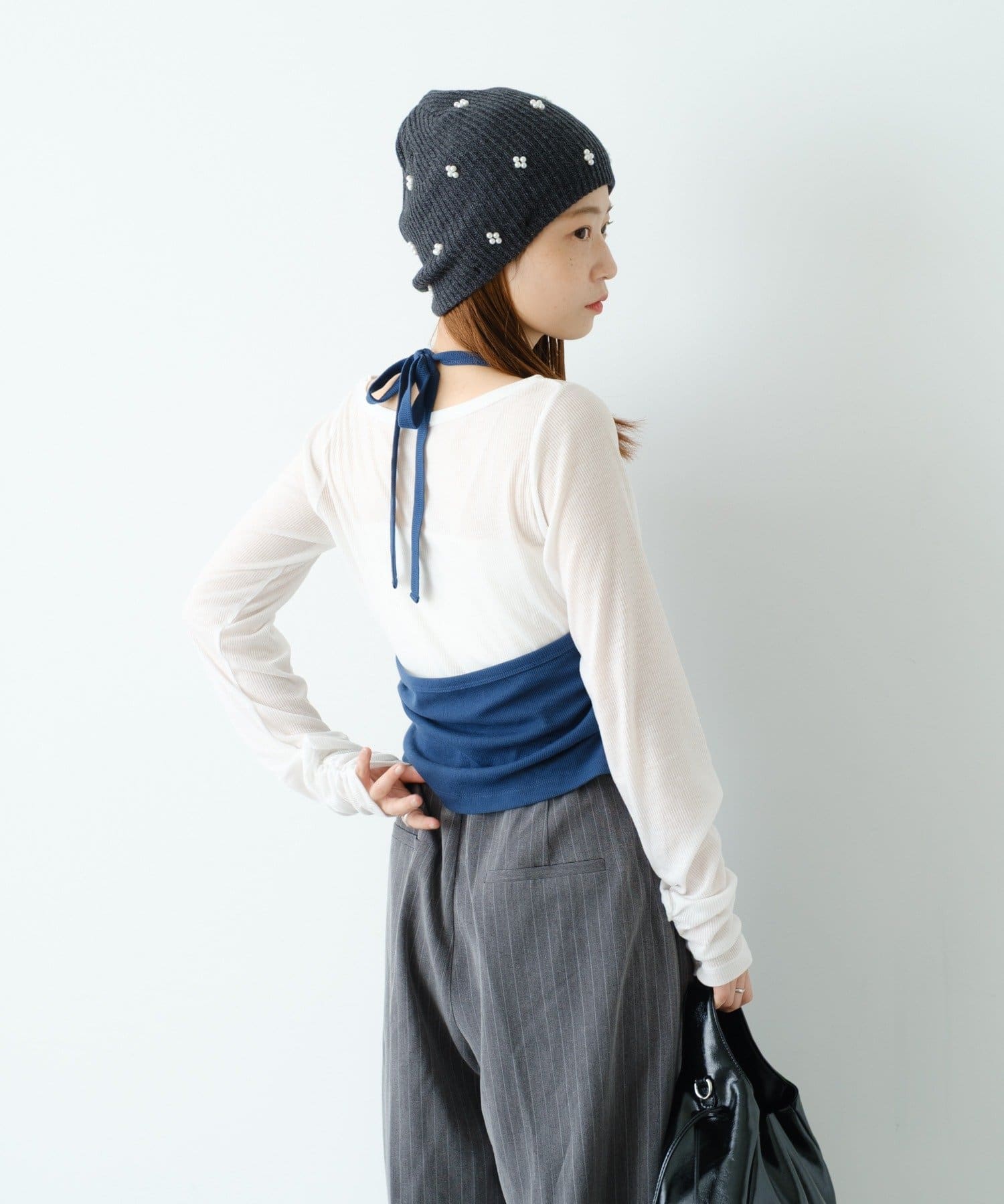 ヘルシーな肌見せが叶うホルターデザインのタンクトップと、ベーシックなロンTEEがセットになったレイヤードアイテム。