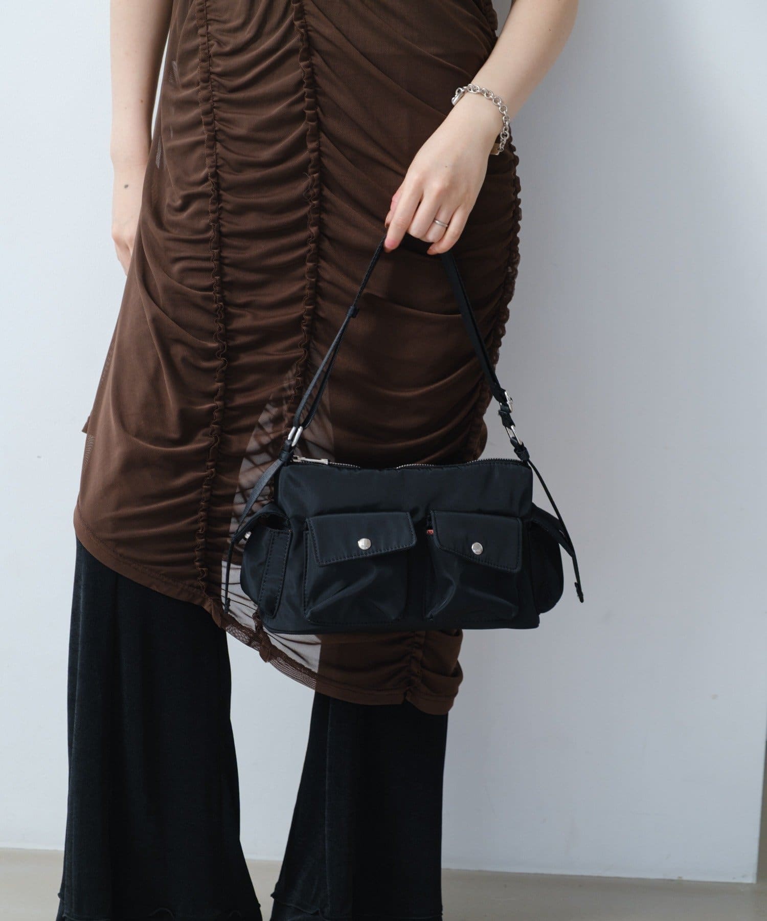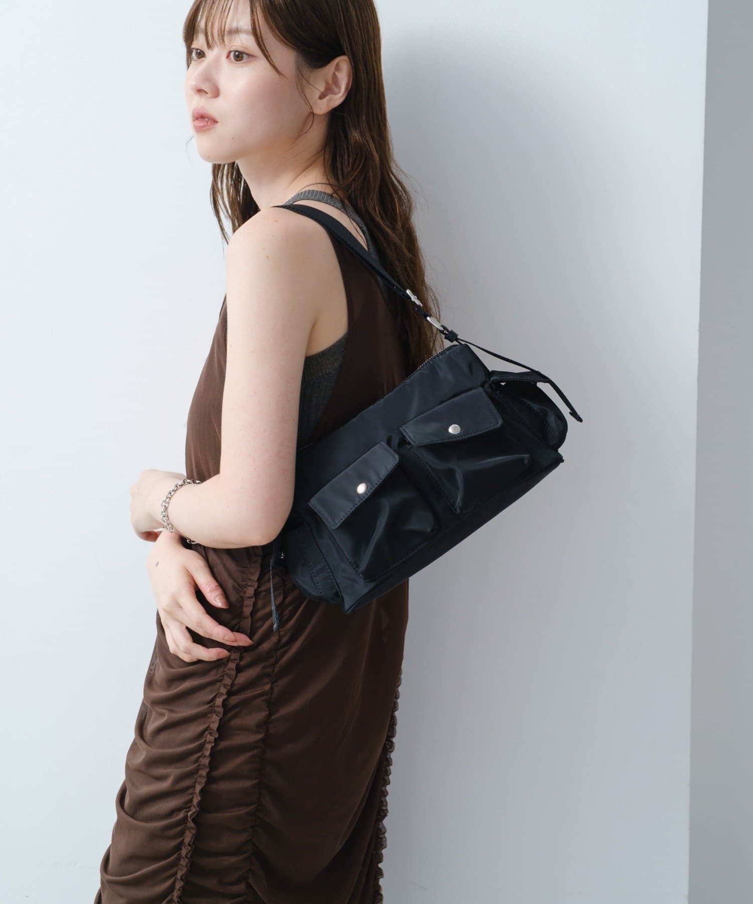 軽量でデイリーユースにぴったりな、ナイロン素材のショルダーバッグ。