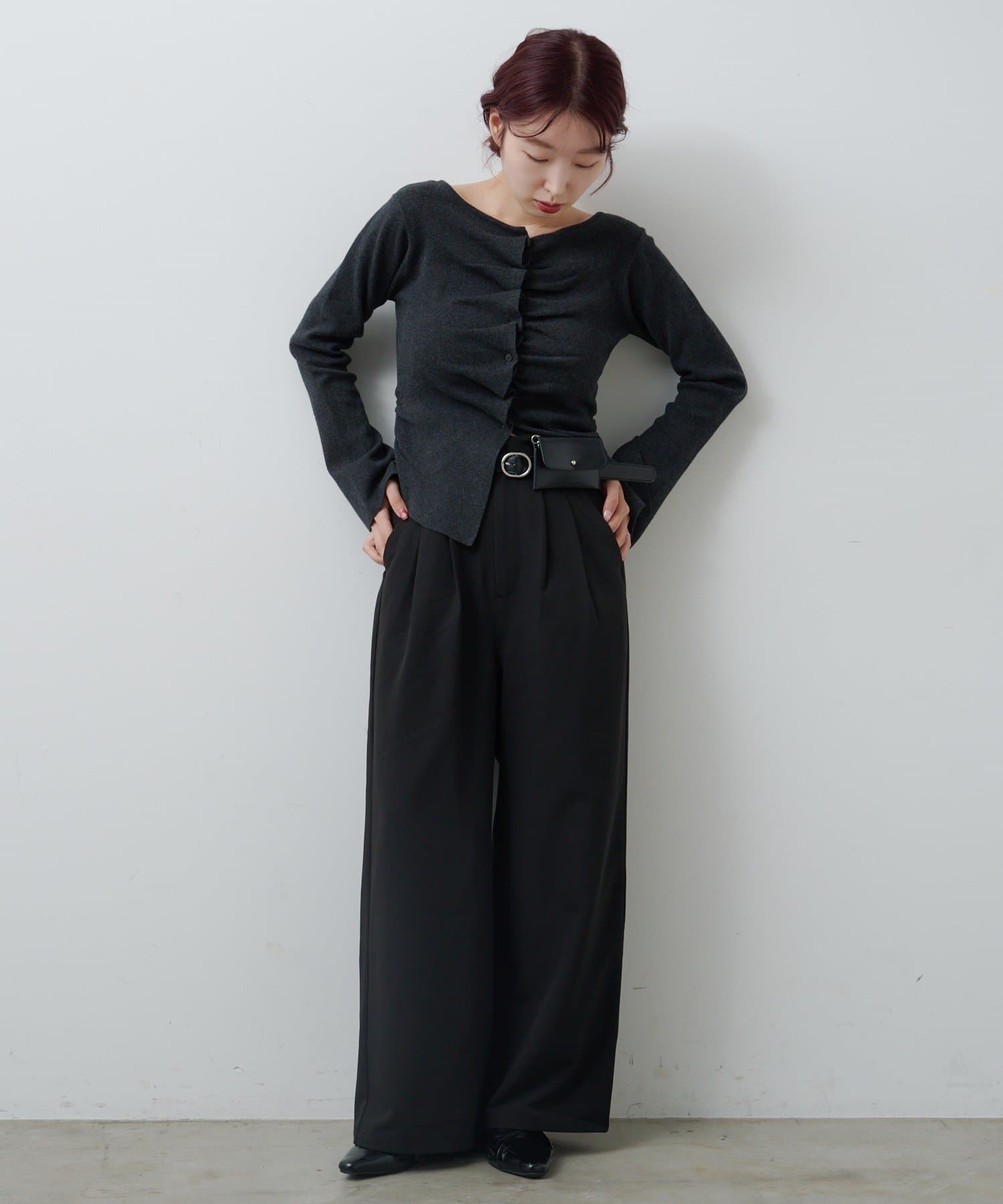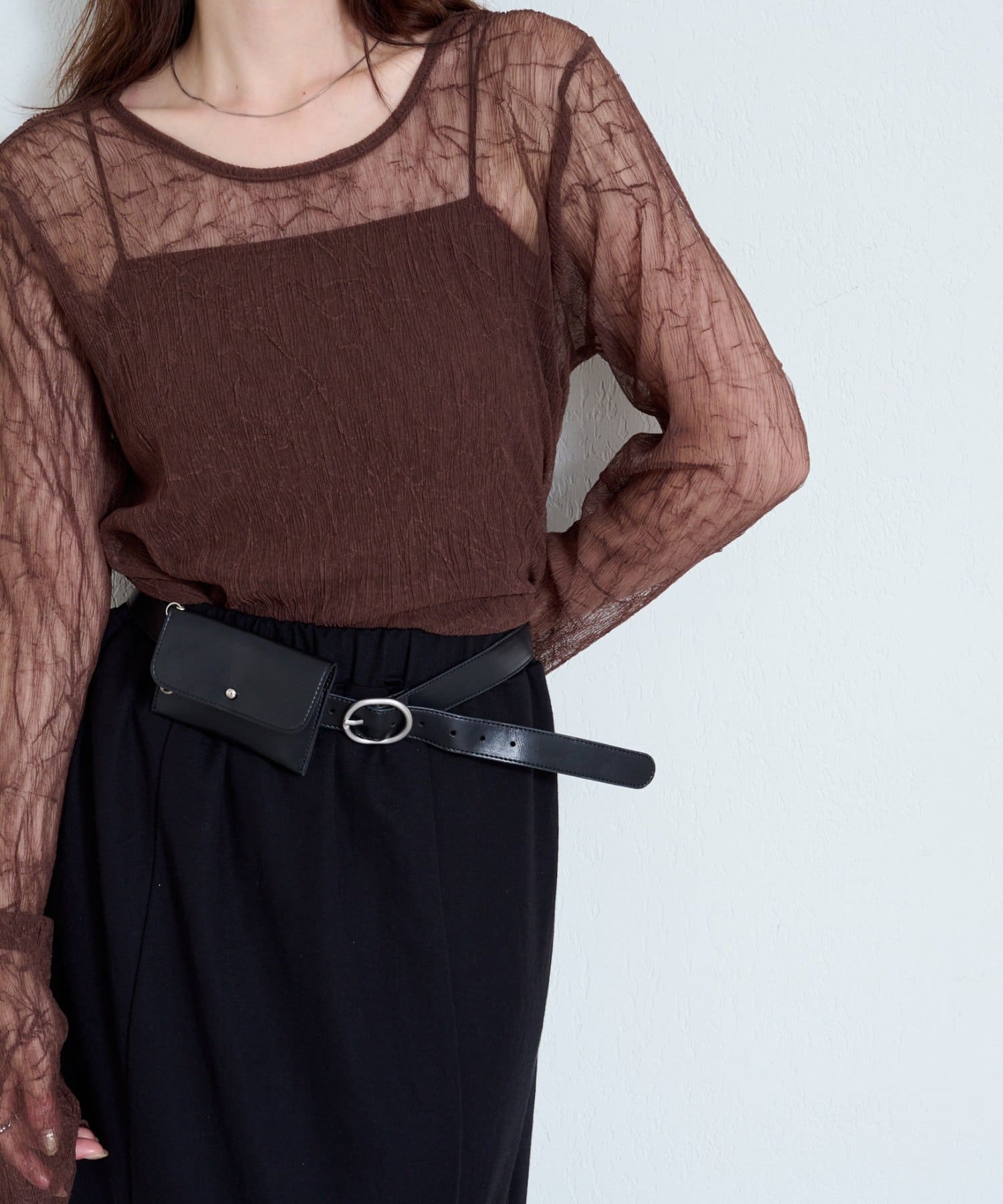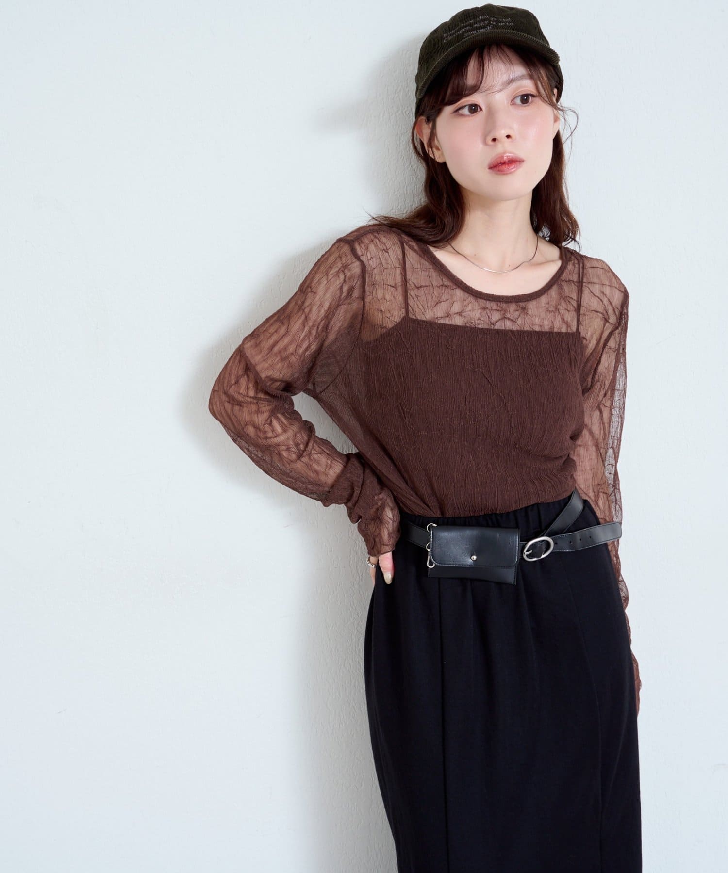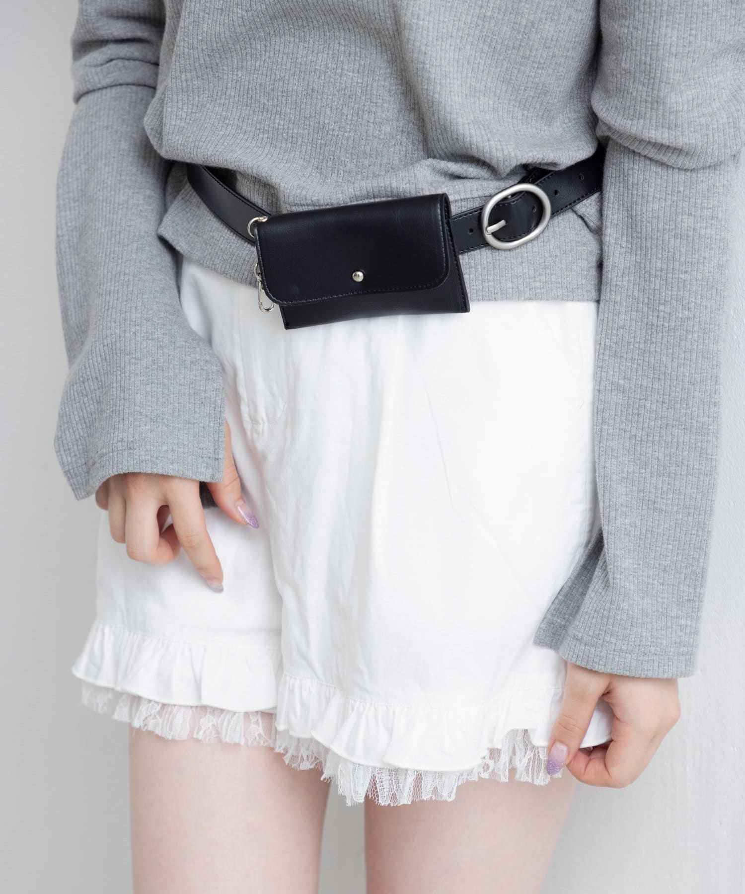 ベルトはウエストマークにもなるので、スタイルアップ効果も◎。バッグいらずで身軽にお出かけしたい日にもおすすめ。