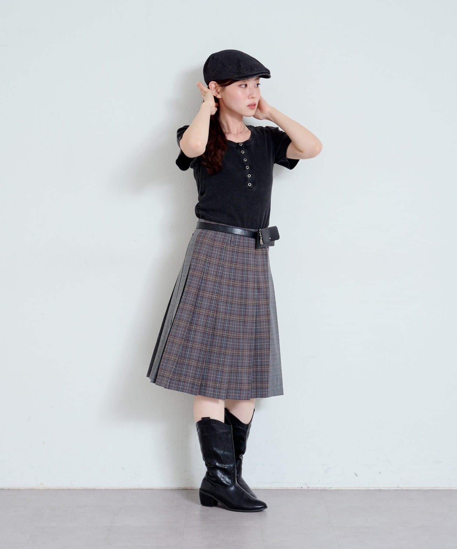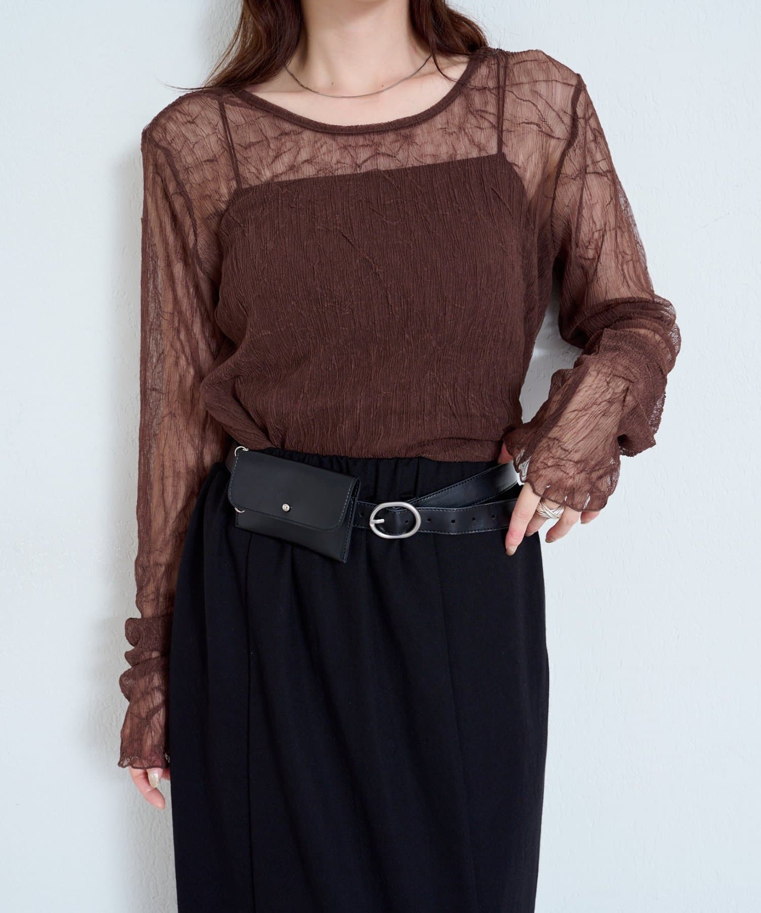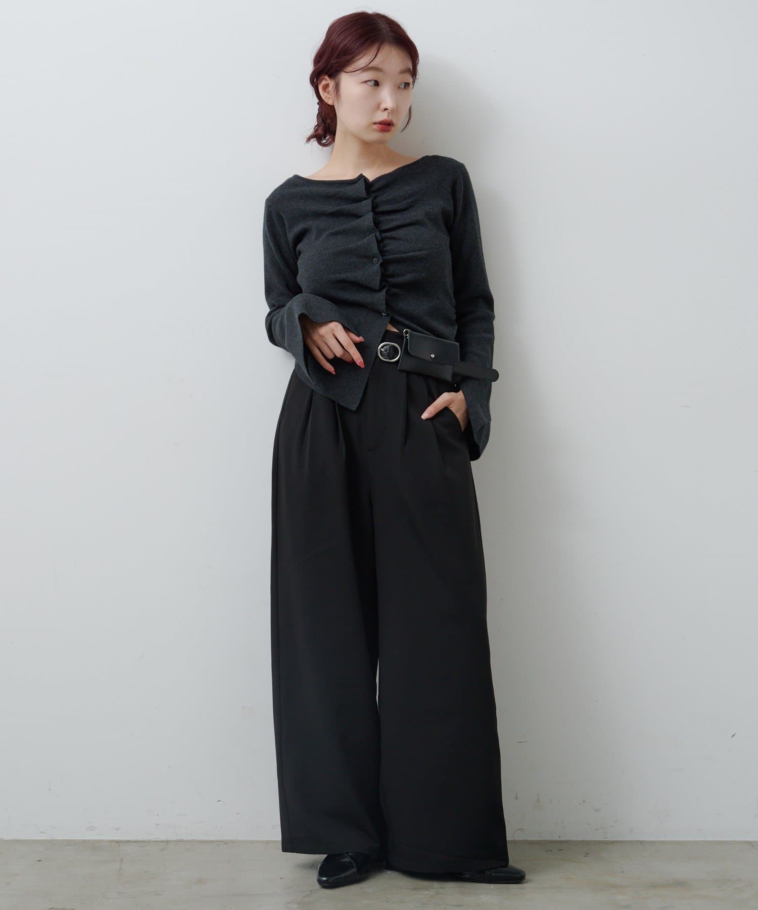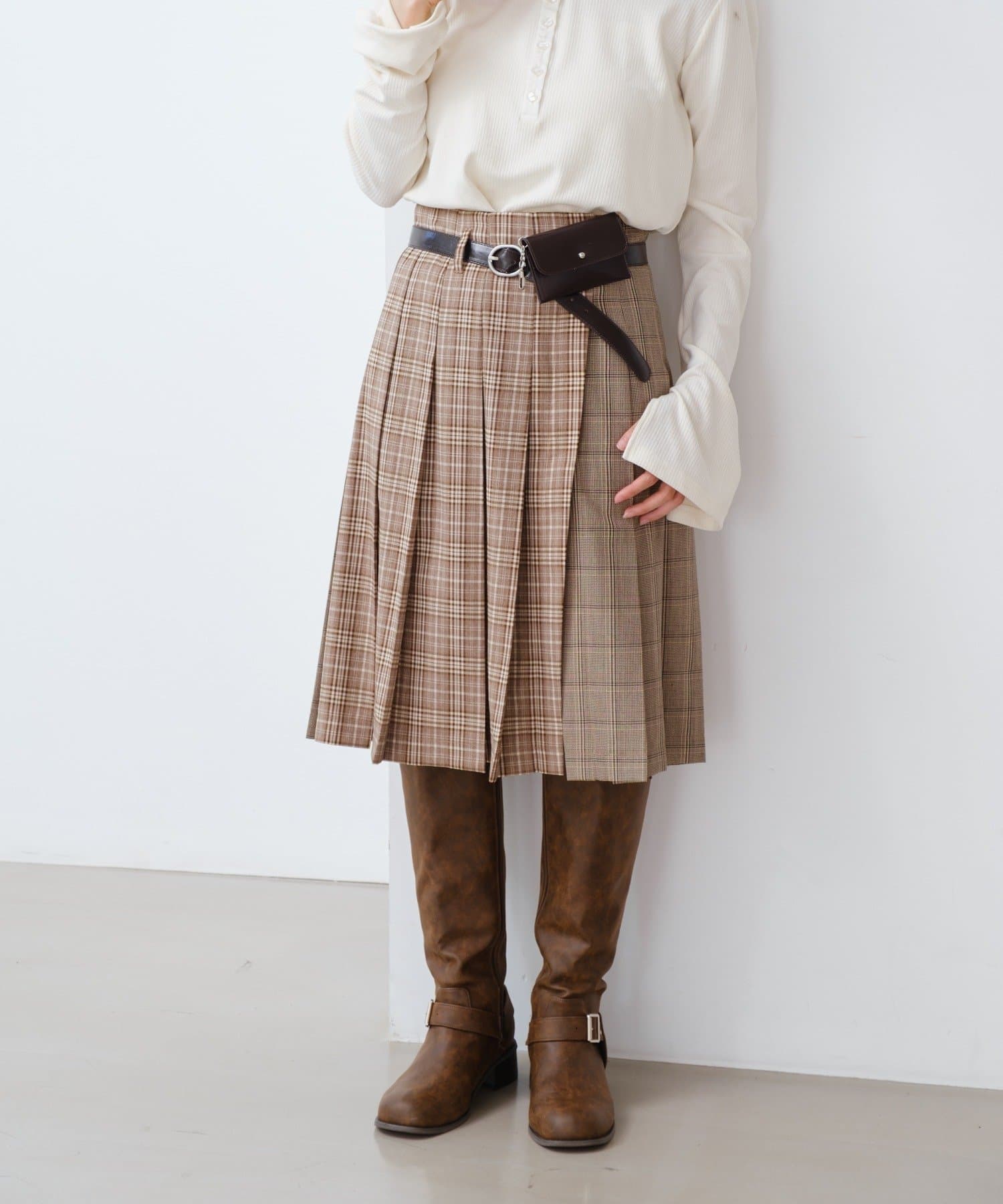 ベルトはウエストマークにもなるので、スタイルアップ効果も◎。バッグいらずで身軽にお出かけしたい日にもおすすめ。
