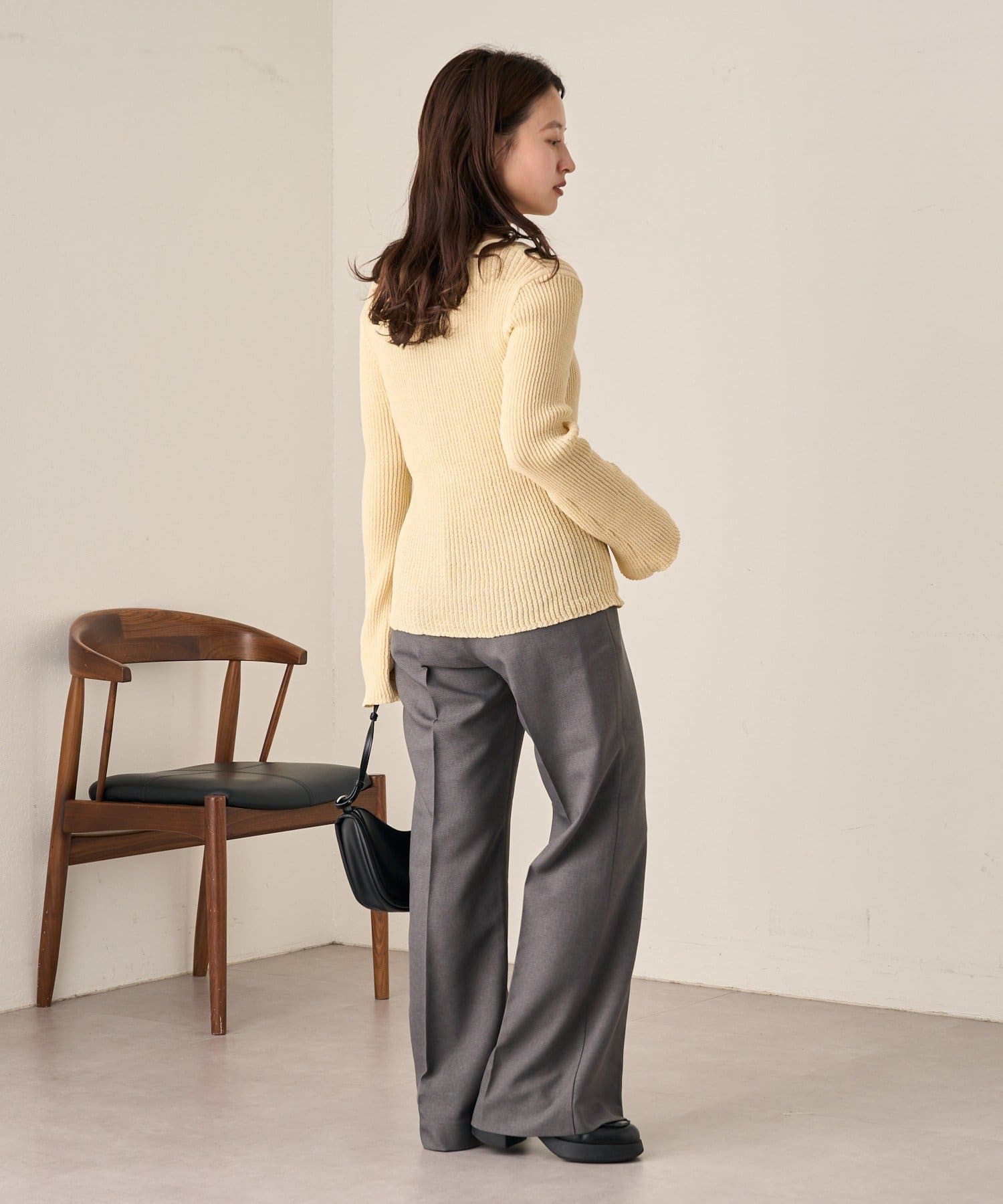 すっきりとしたシルエットのトップスなのでワイドボトムとの相性〇