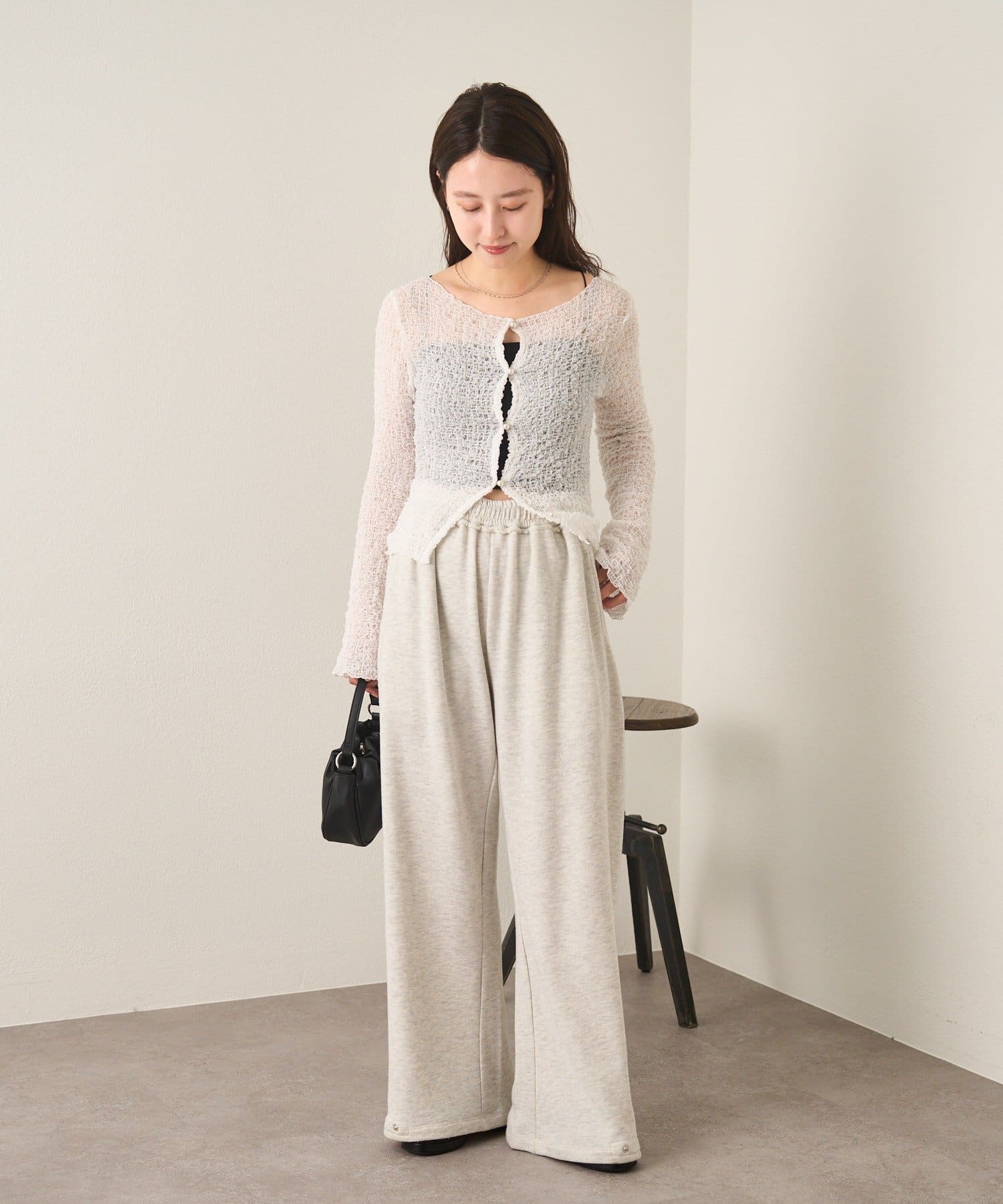 ワイドパンツやスカートと合わせて抜け感のあるスタイルに。