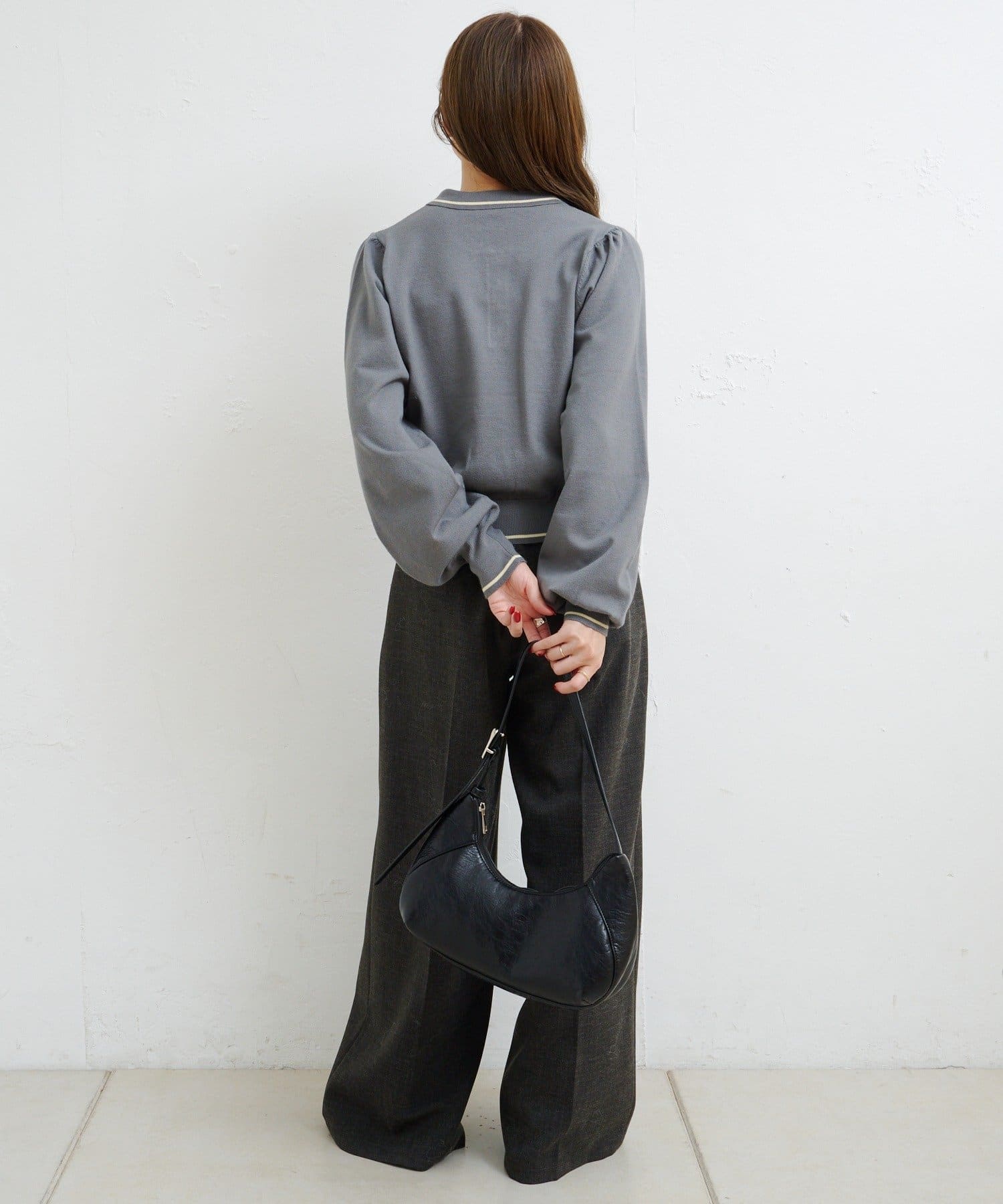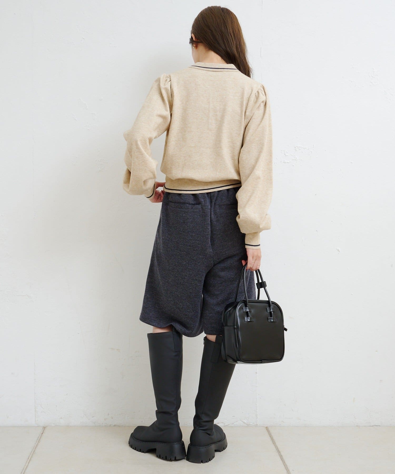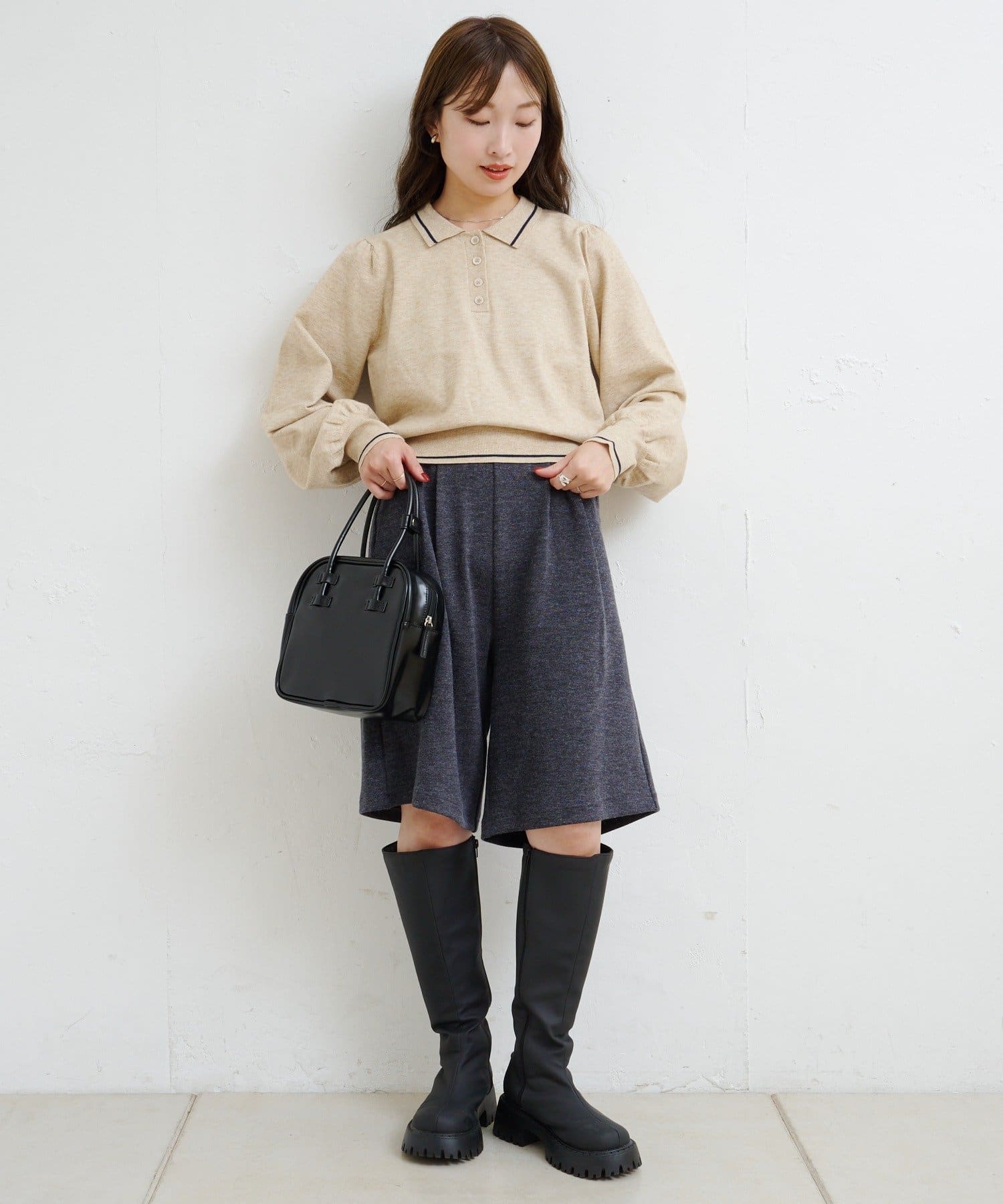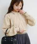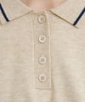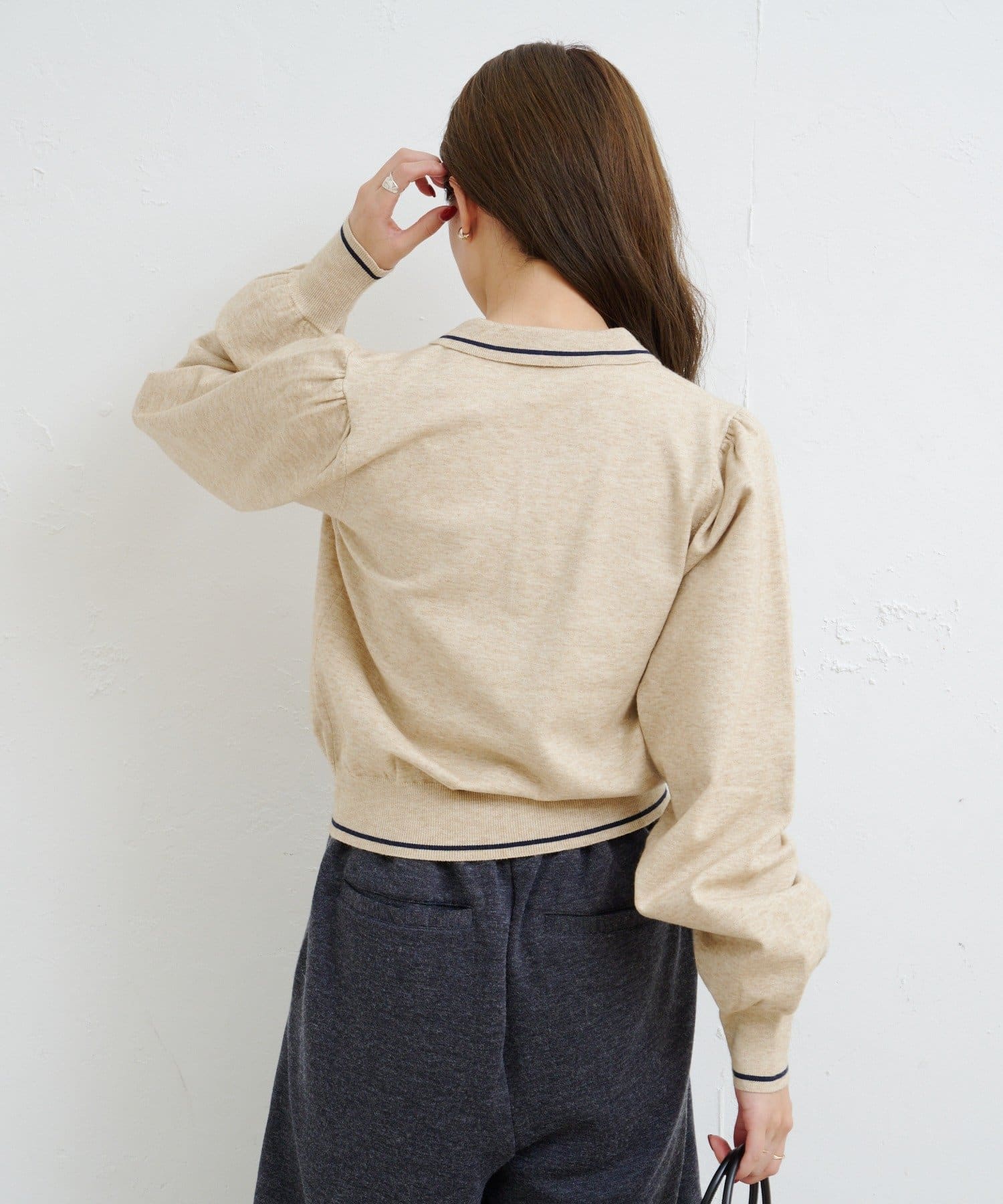 クラシカルなポロ襟デザインに、配色ラインがアクセントになったニットトップス。